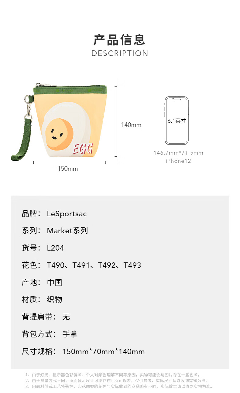 LeSportsac New Mini Clutch Bag Small Fresh Lightweight Coin Lipstick Storage Bag Gift for Girls Cute Egg