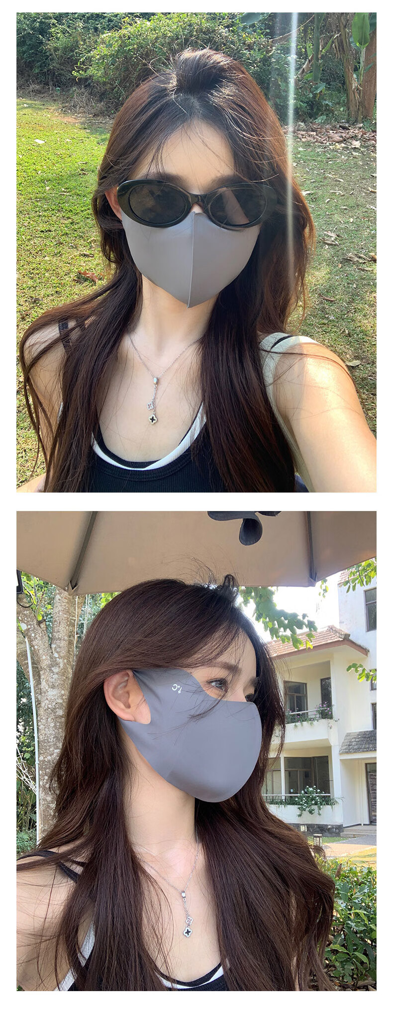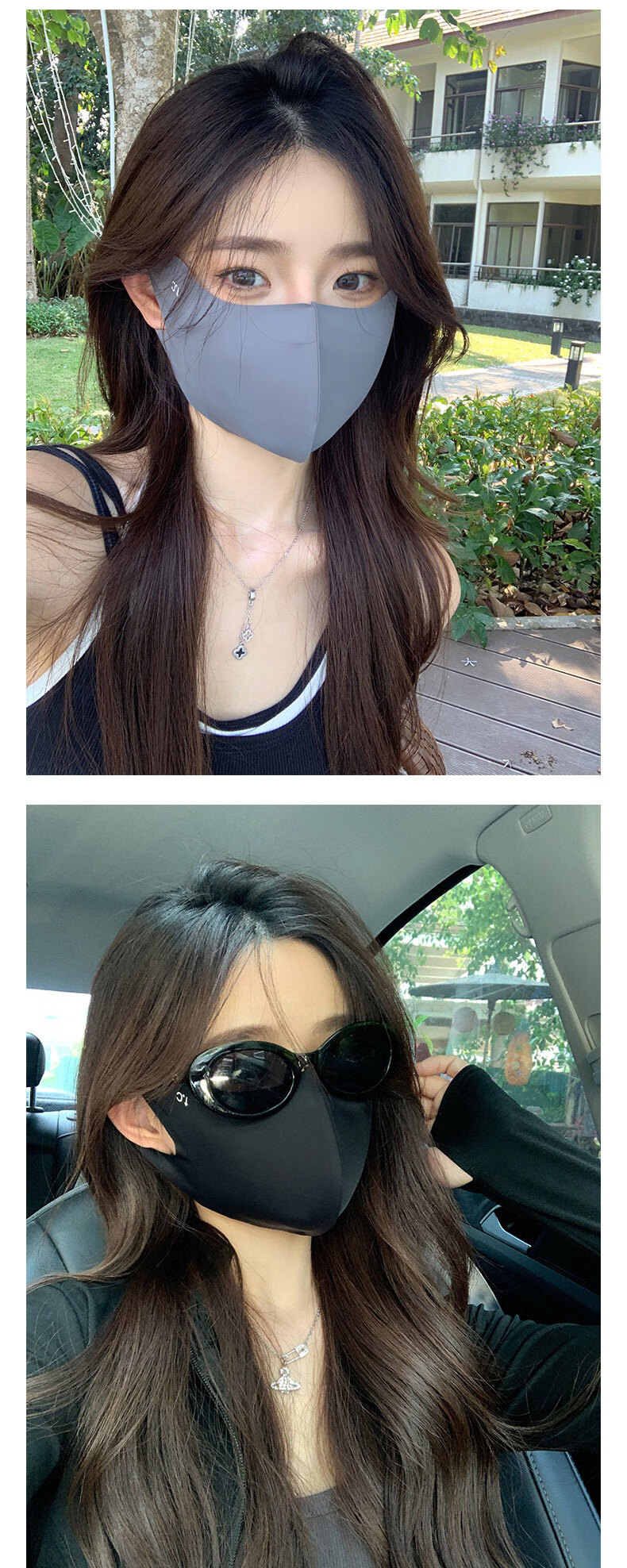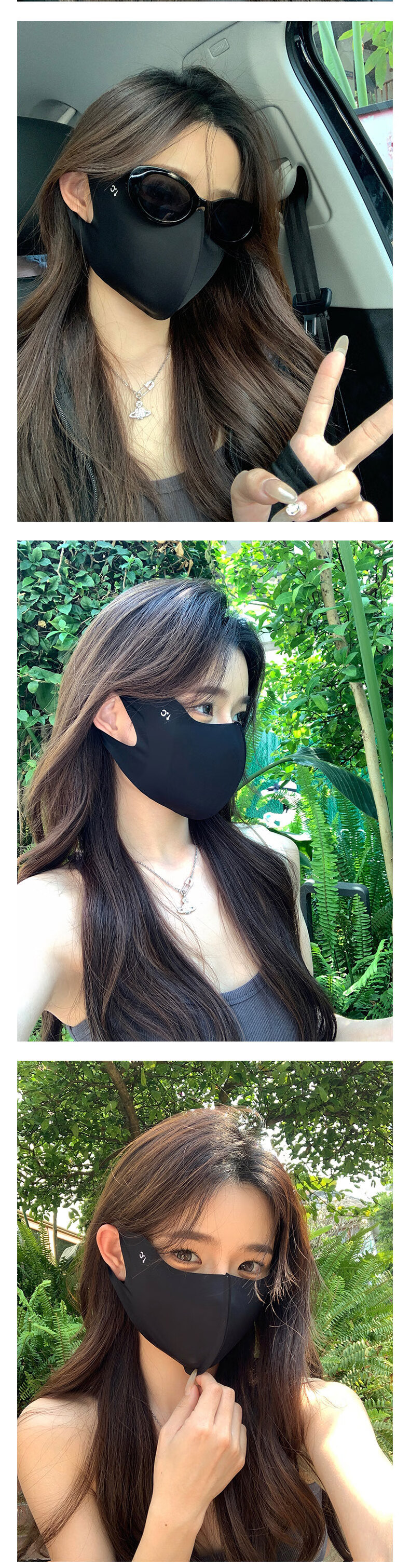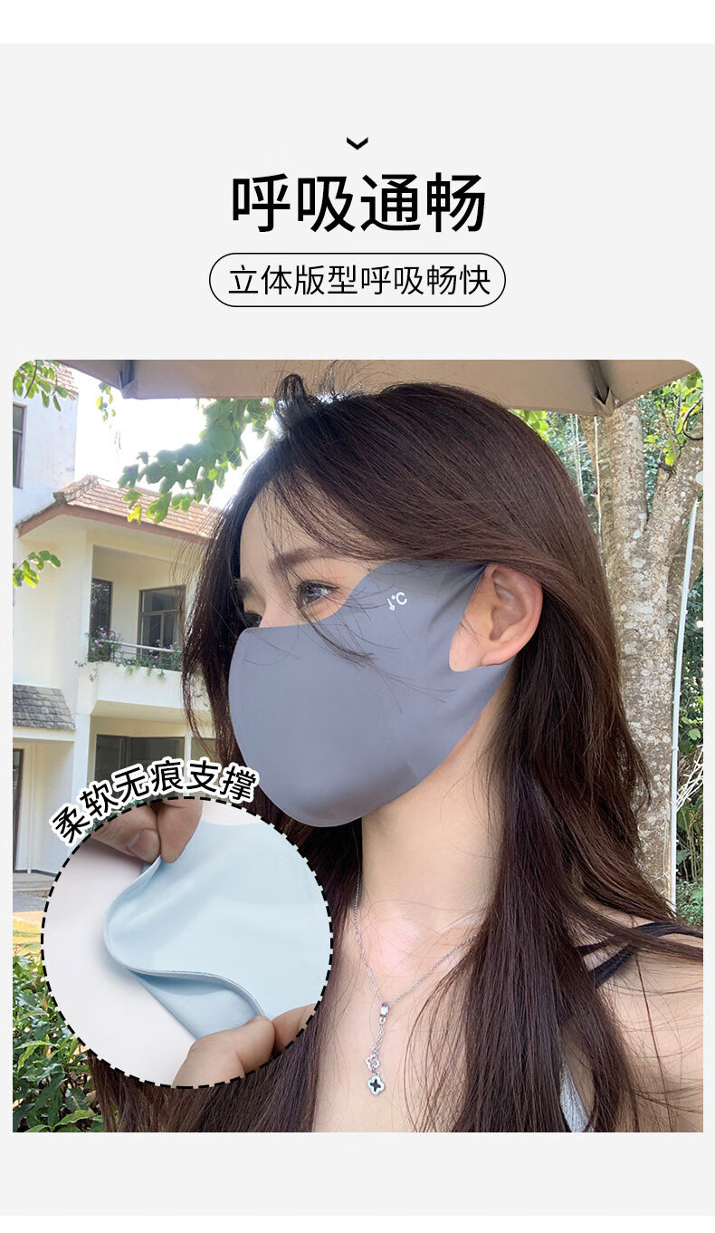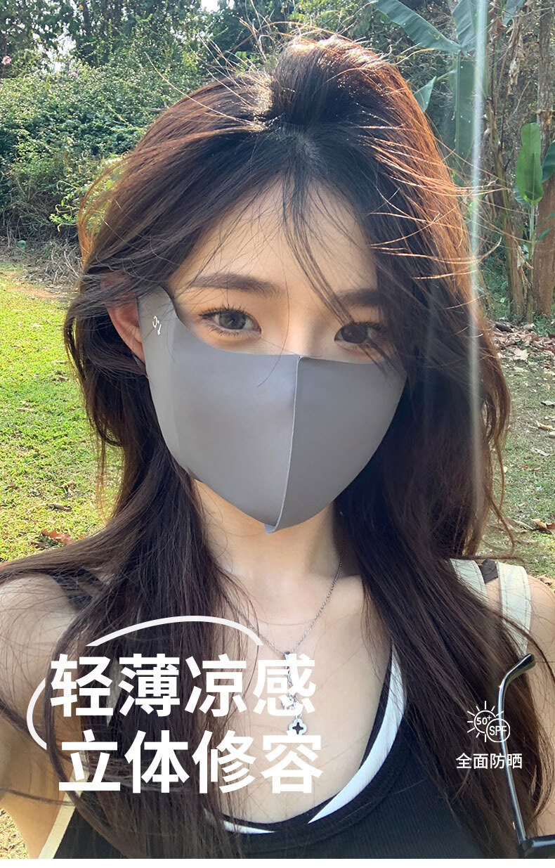 Memaru eye protection ice silk high-looking sunscreen mask for women 3D three-dimensional sunshade full face anti-UV summer sunscreen mask 2 pieces of cloud black + 1 piece of mocha gray