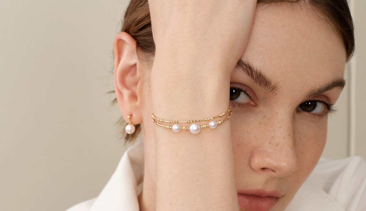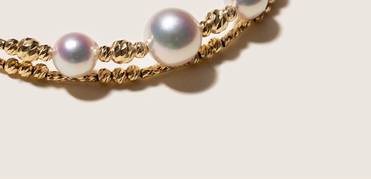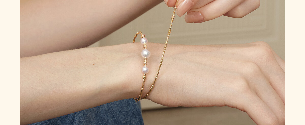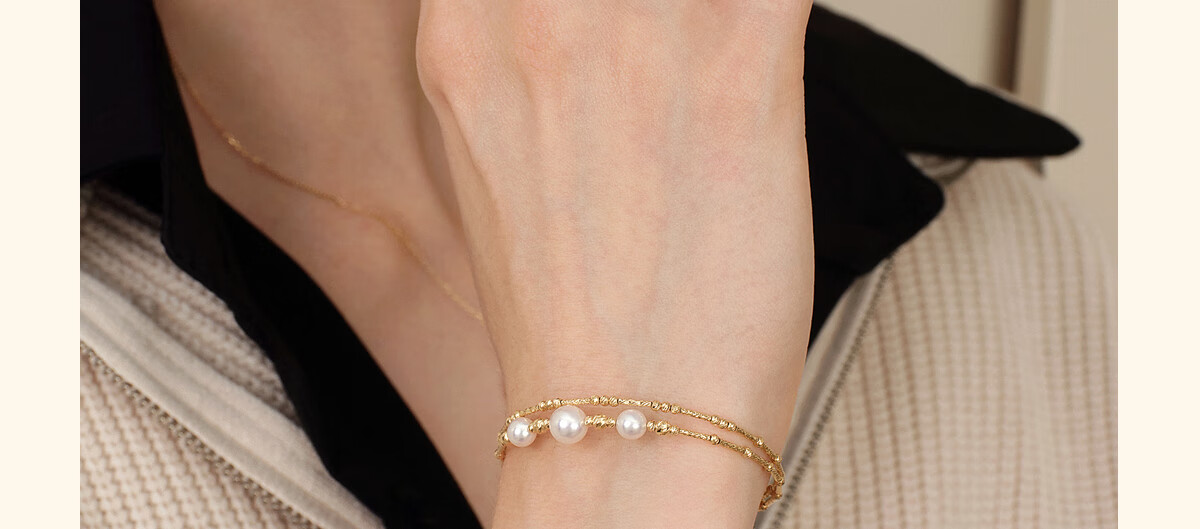 Helas Hera Akoya seawater pearl bracelet sparkling 18K gold bracelet double-layer elastic bracelet female birthday gift regular version recommended for hand circumference 14cm or less 32cm