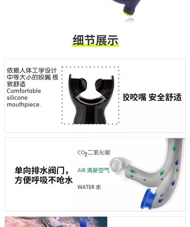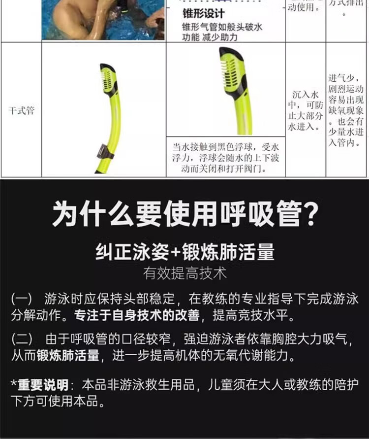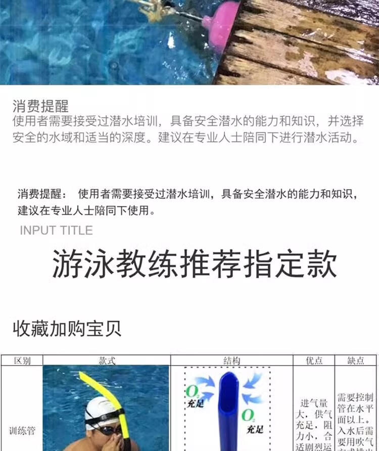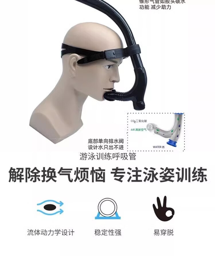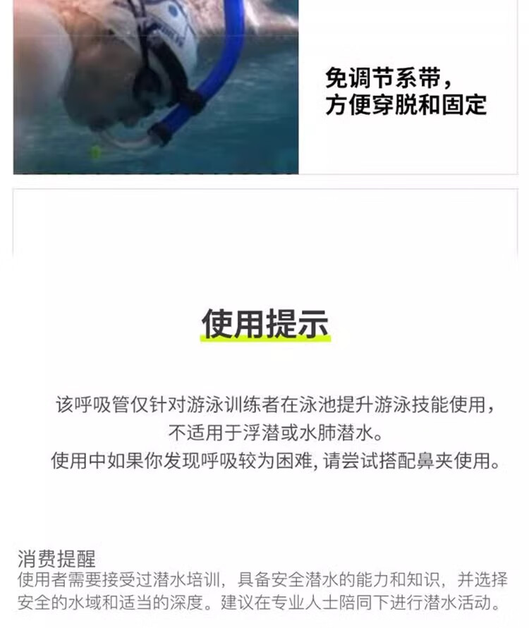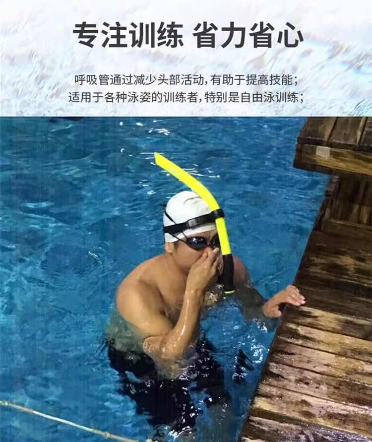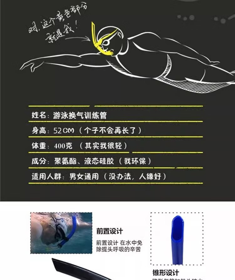 Lingyunhe swimming snorkel, snorkeling snorkel, freestyle accessories, swimming training practice breathing equipment, snorkeling snorkel, transparent sapphire blue, about 48cm, comfortable fit and no leakage