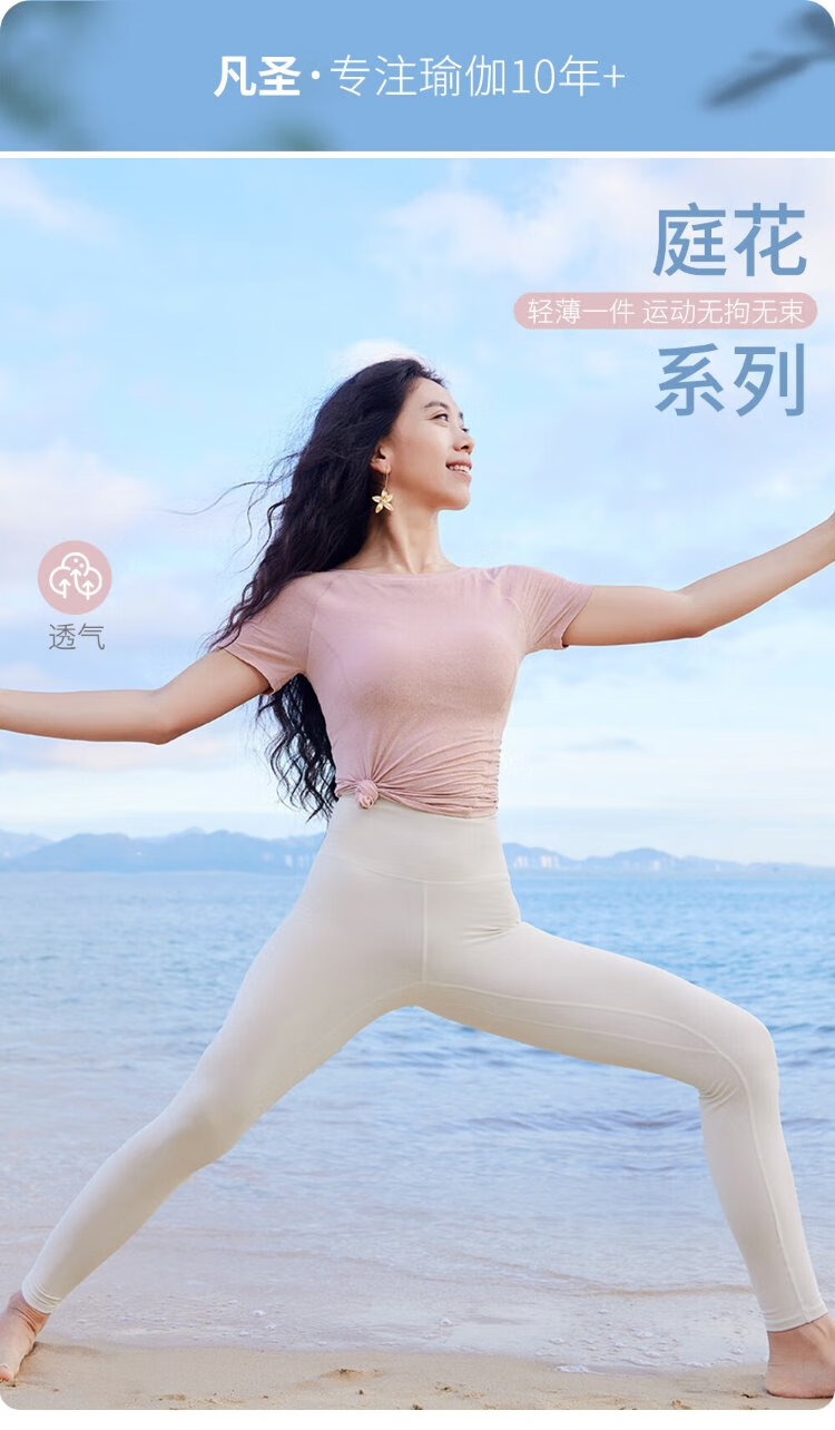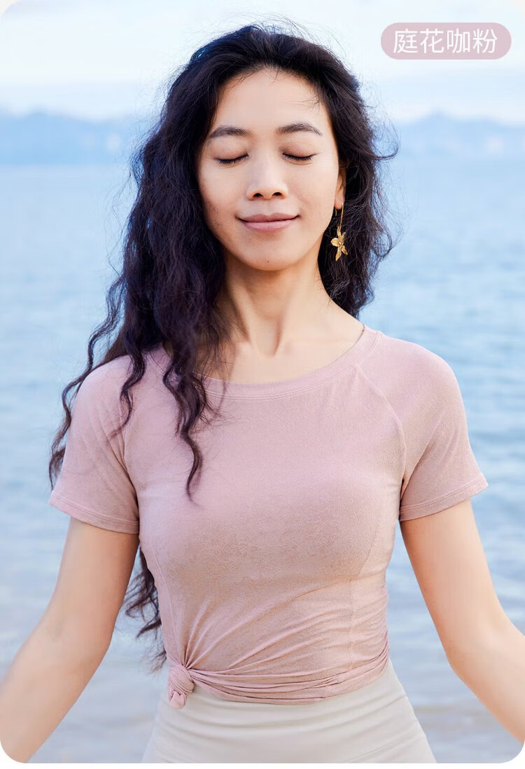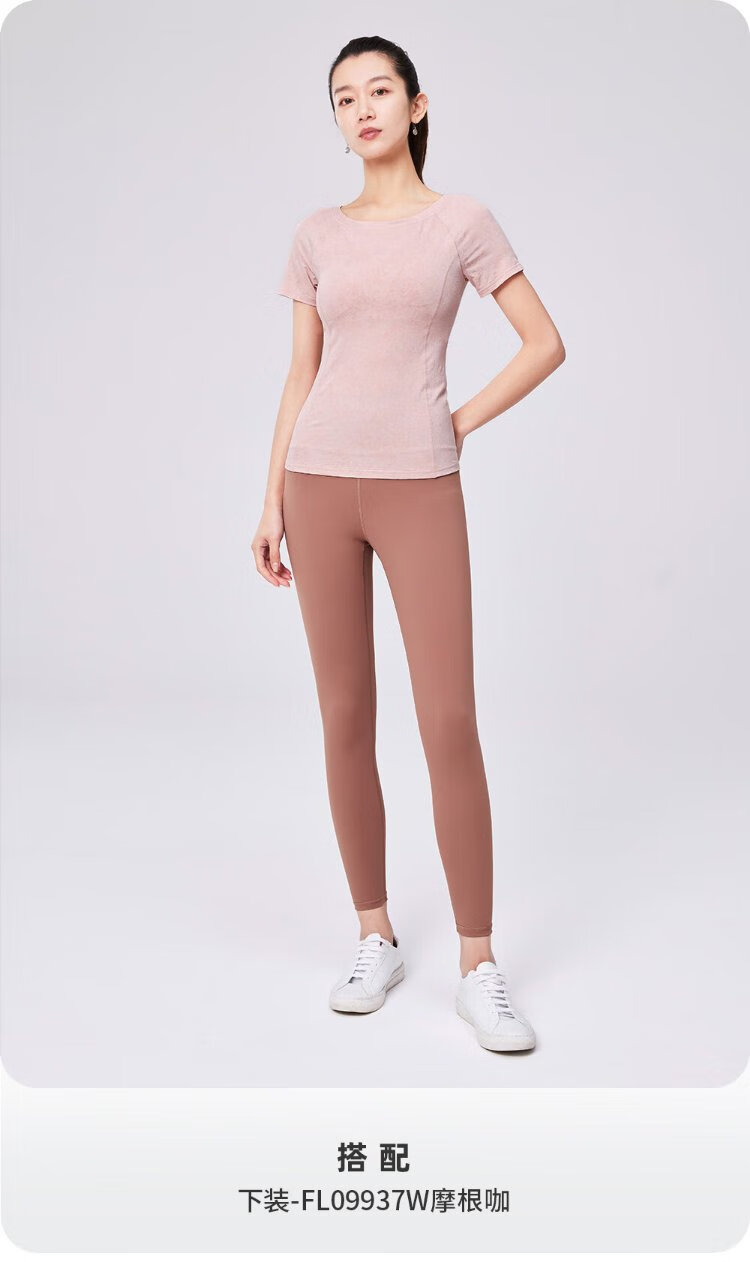 Fansheng Yoga slimming quick-drying sports tops Pilates fitness running breathable short-sleeved T-shirt summer yoga clothes F12305 removable chest pad Tinghua Coffee Powder L