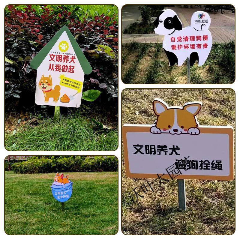 Общественный парк цивилизованного собаководства. Изготовленные на заказ наземные рекламные щиты, предупреждающие о выгуле собак на поводке. Газонные жетоны с цветами и травой-54, 30х40см.