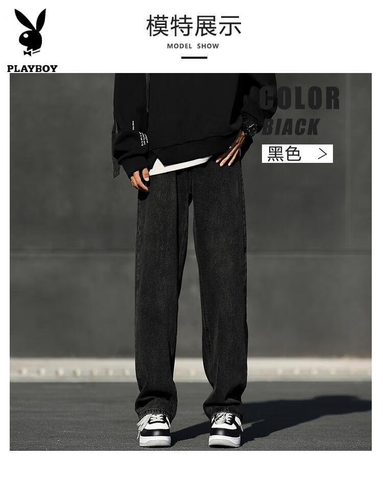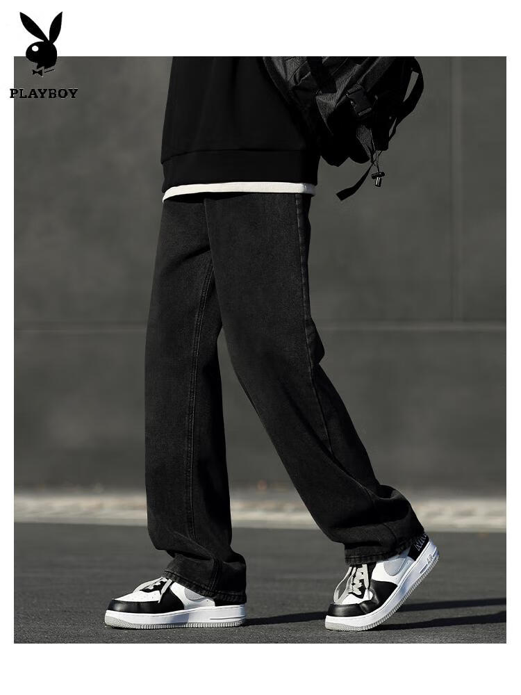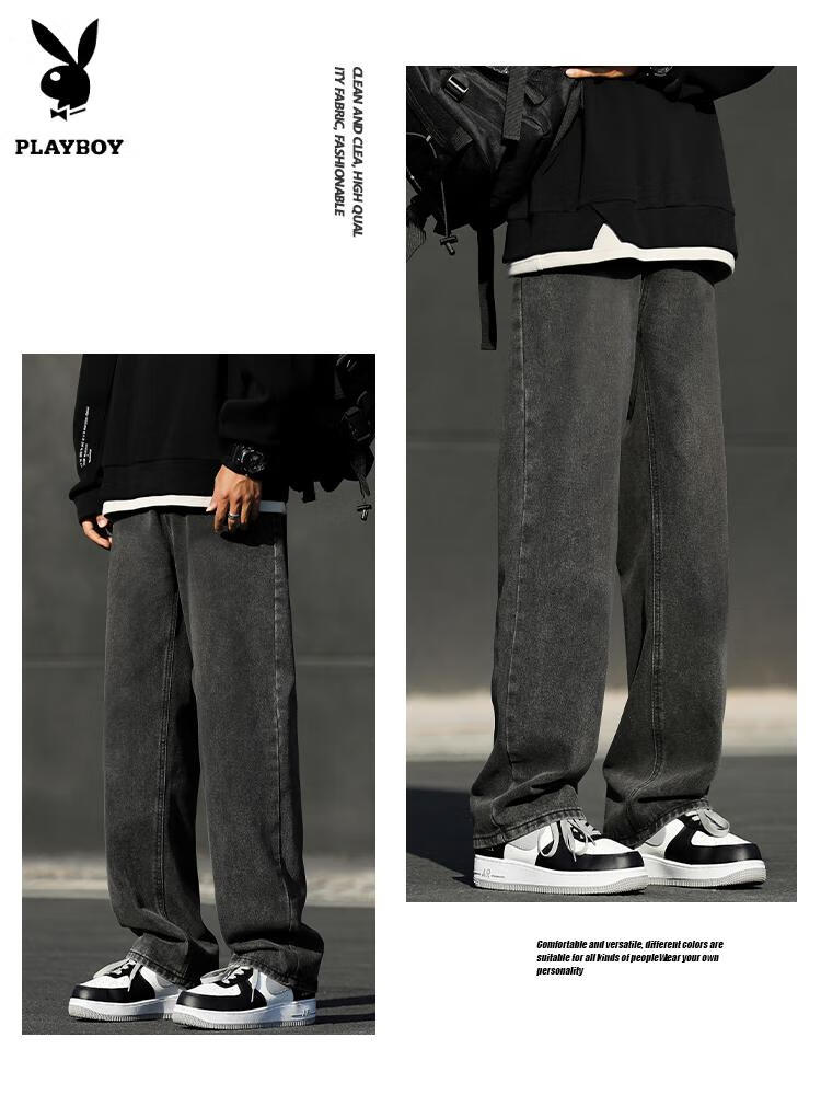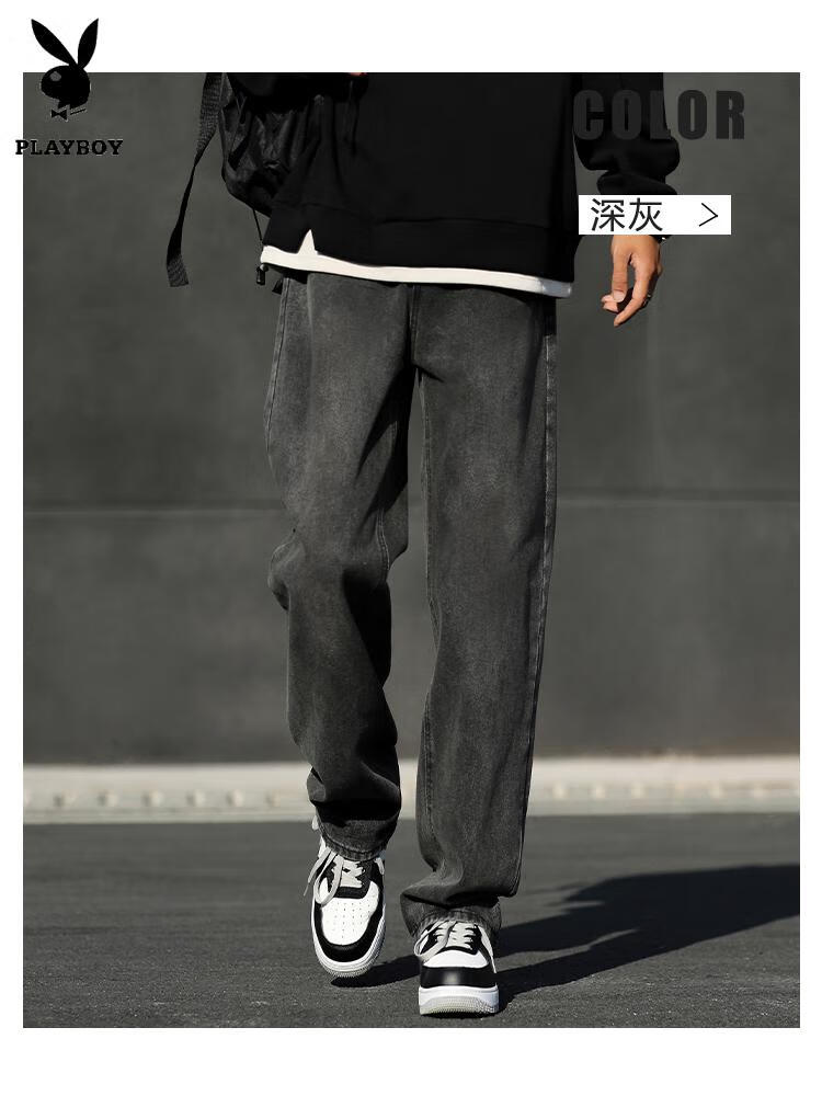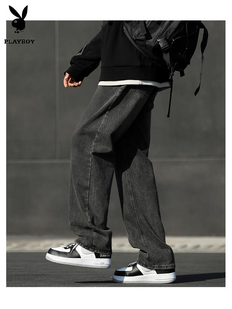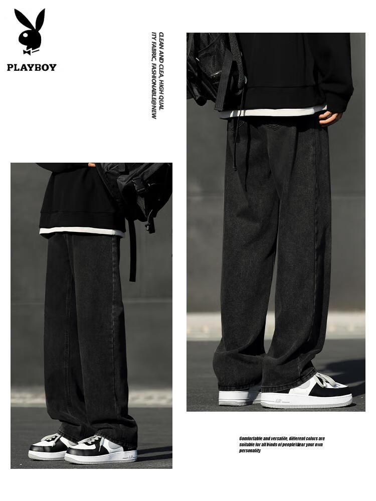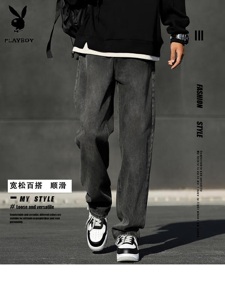 Playboy (PLAYBOY) Smoke Gray Jeans Men's Autumn 2025 Autumn and Winter New American Loose Straight Casual Long Pants Retro Trendy Brand ME Black