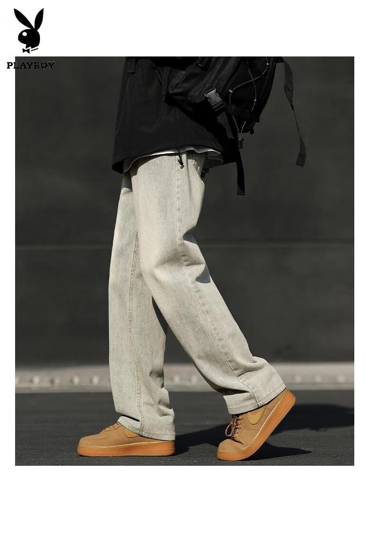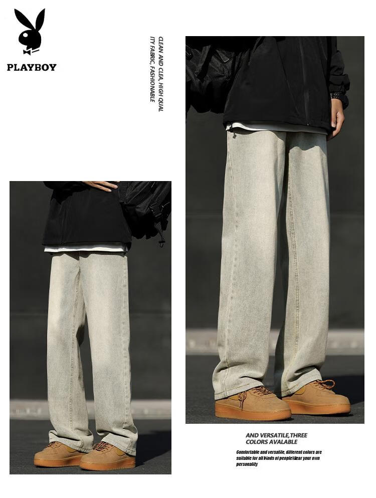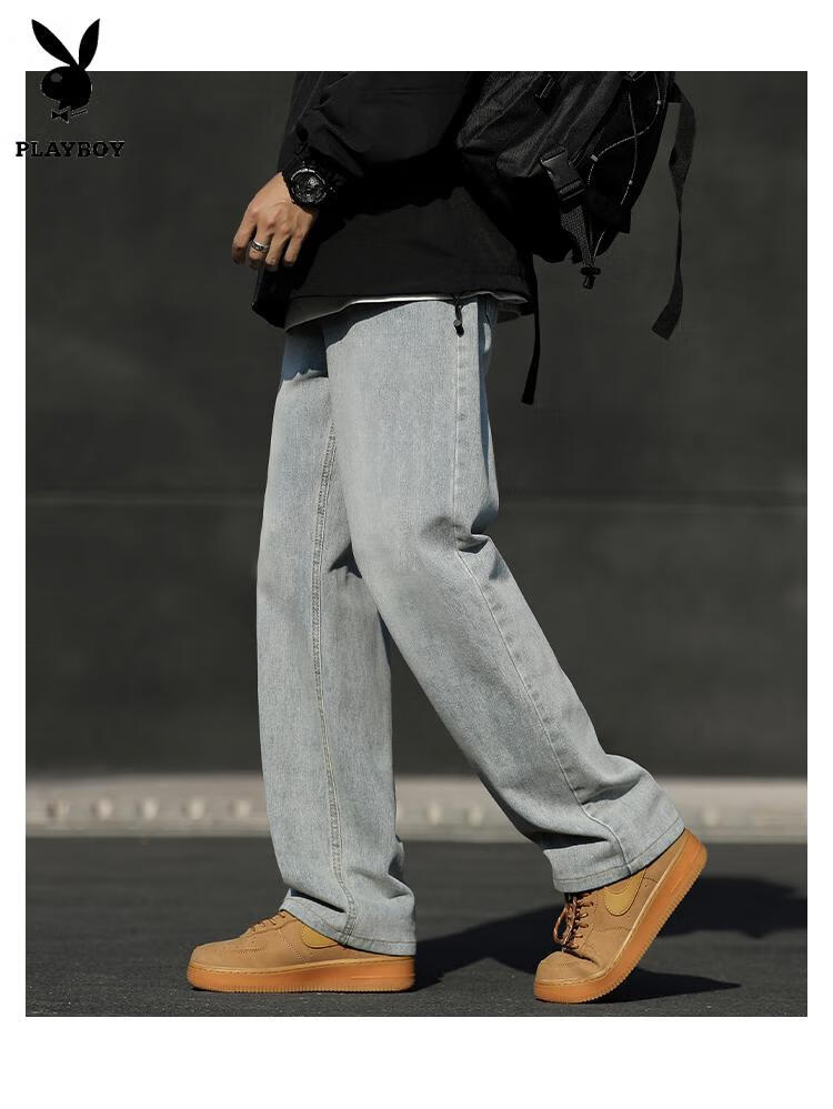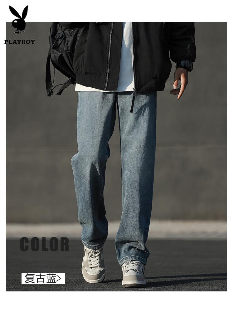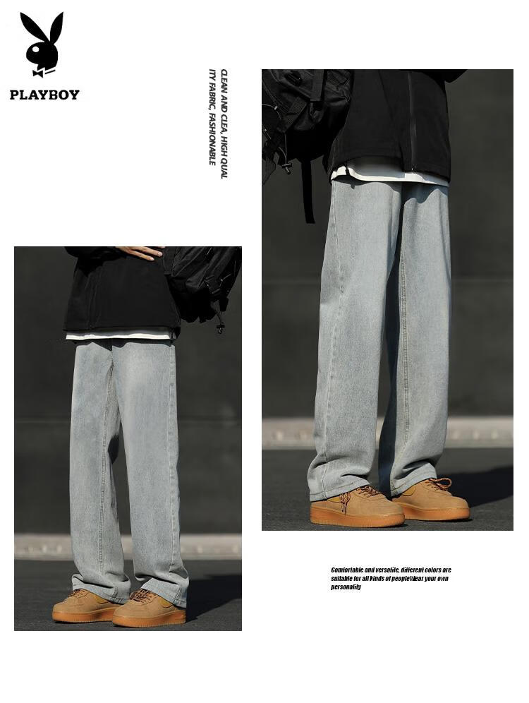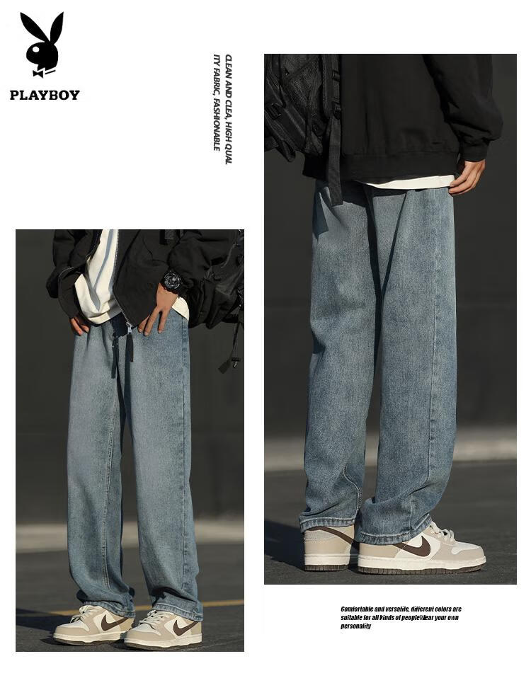 Playboy (PLAYBOY) Smoke Gray Jeans Men's Autumn 2025 Autumn and Winter New American Loose Straight Casual Long Pants Retro Trendy Brand ME Black