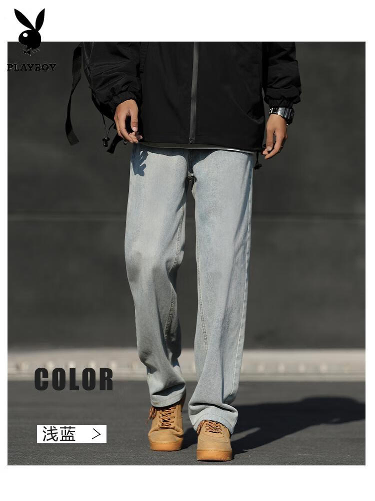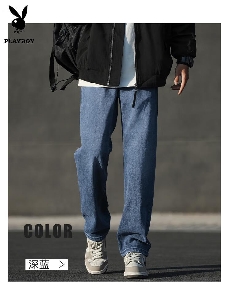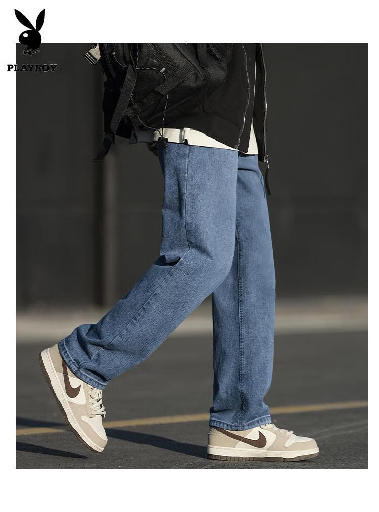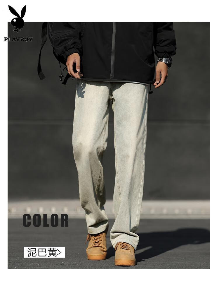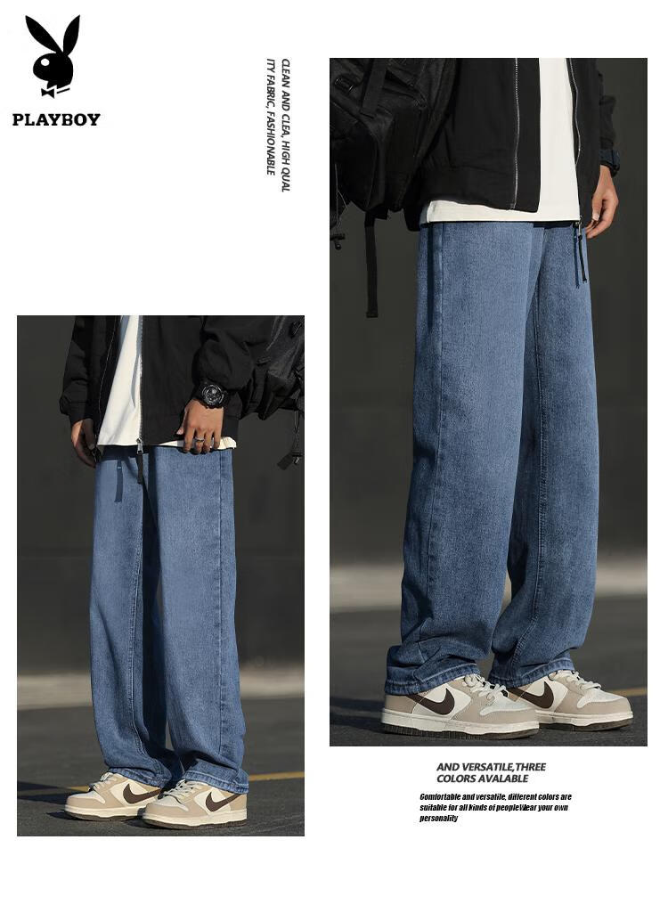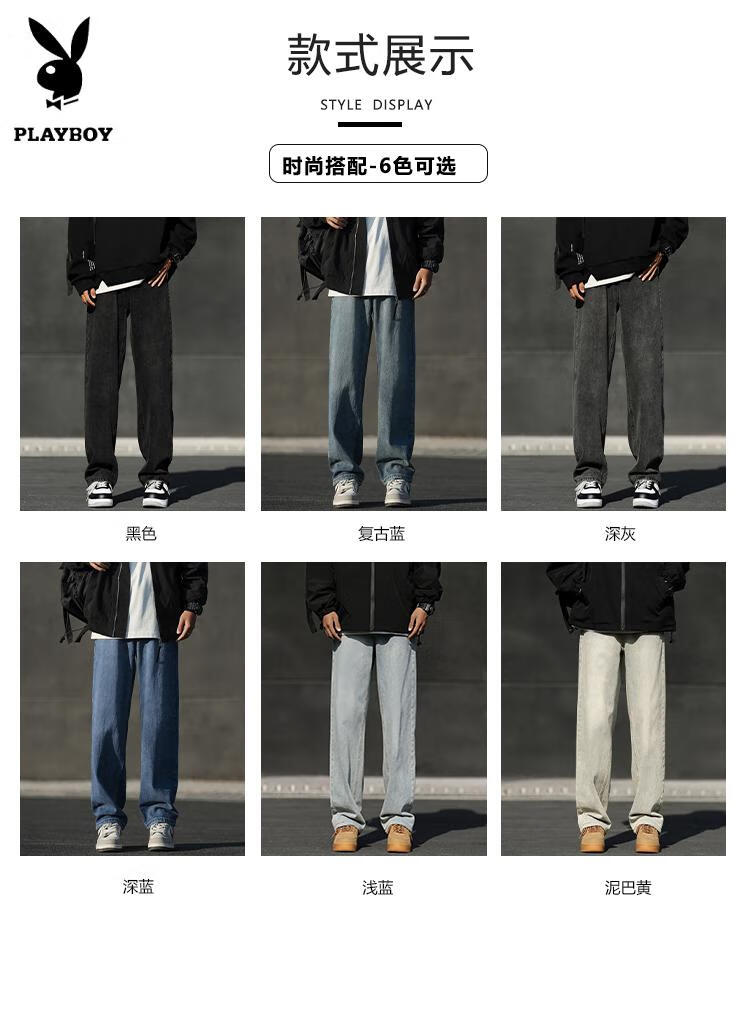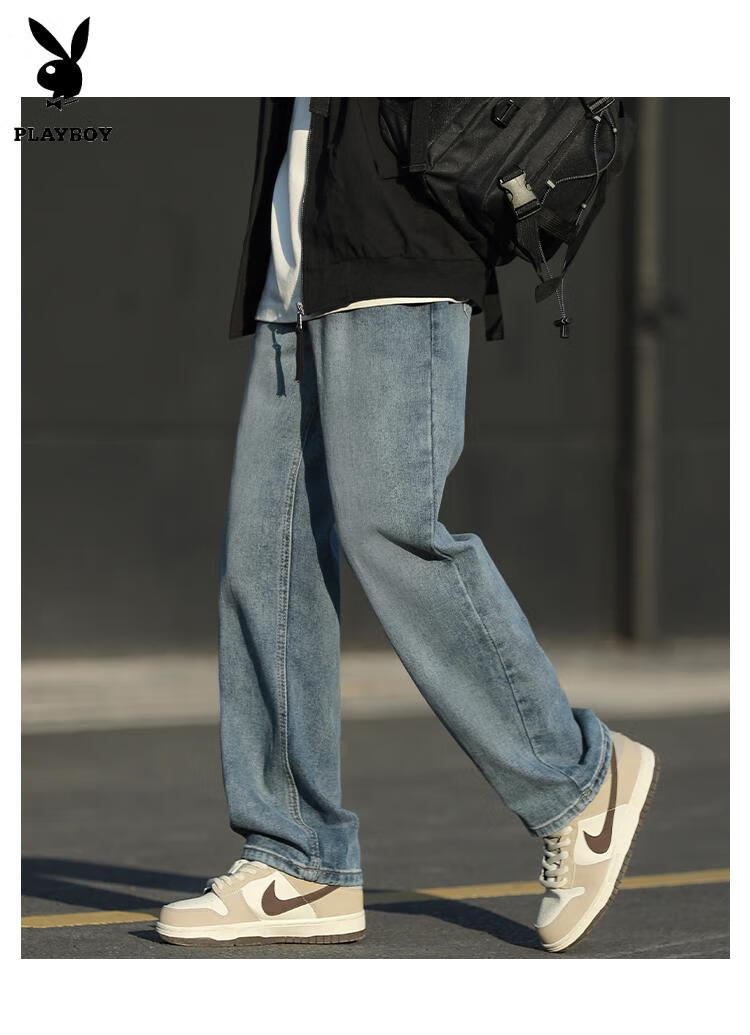 Playboy (PLAYBOY) Smoke Gray Jeans Men's Autumn 2025 Autumn and Winter New American Loose Straight Casual Long Pants Retro Trendy Brand ME Black