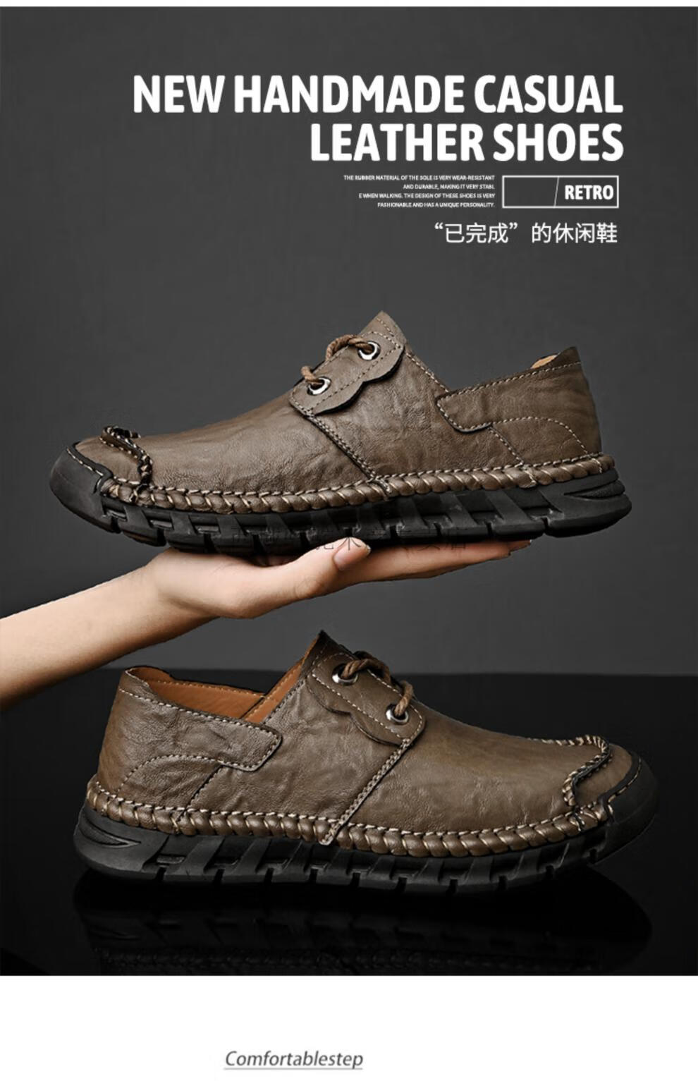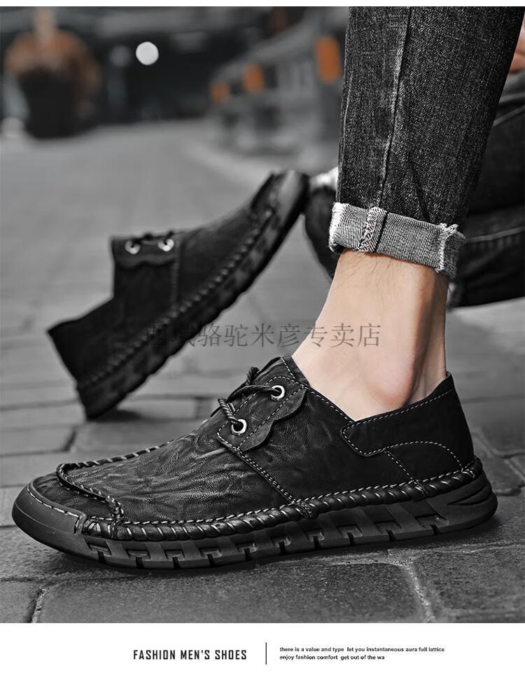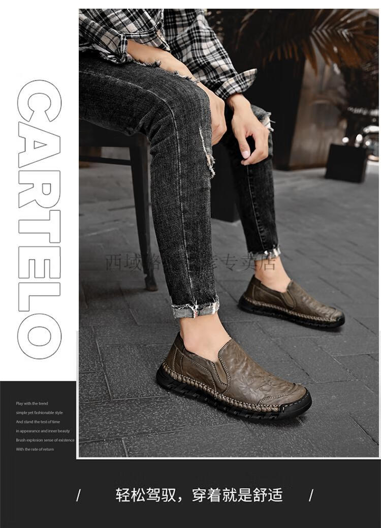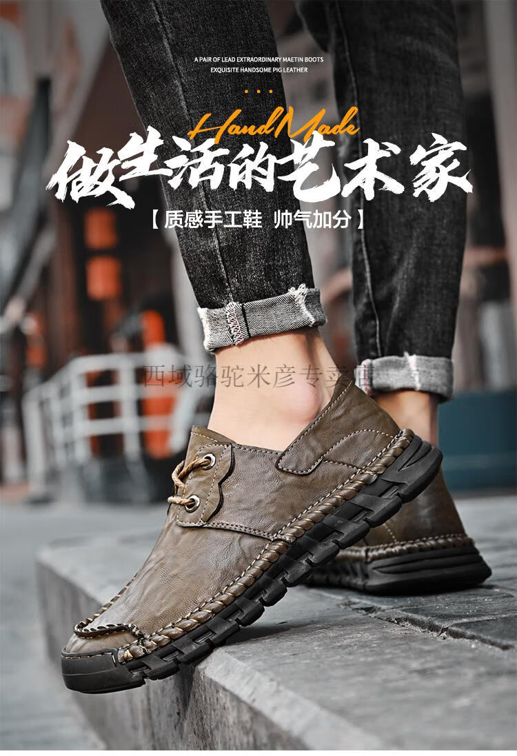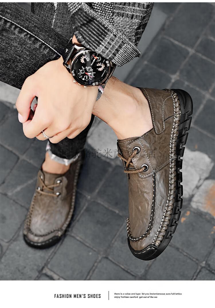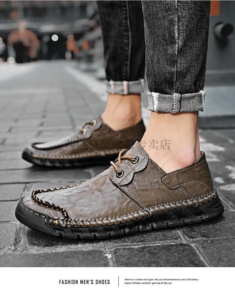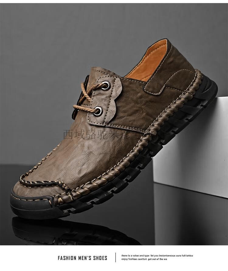 Western Camel (VANCAMEL) large leather shoes for men, soft sole, soft surface, genuine leather men's shoes, thick sole, wide head dad shoes, business casual shoes for men, khaki/lace-up 38 240