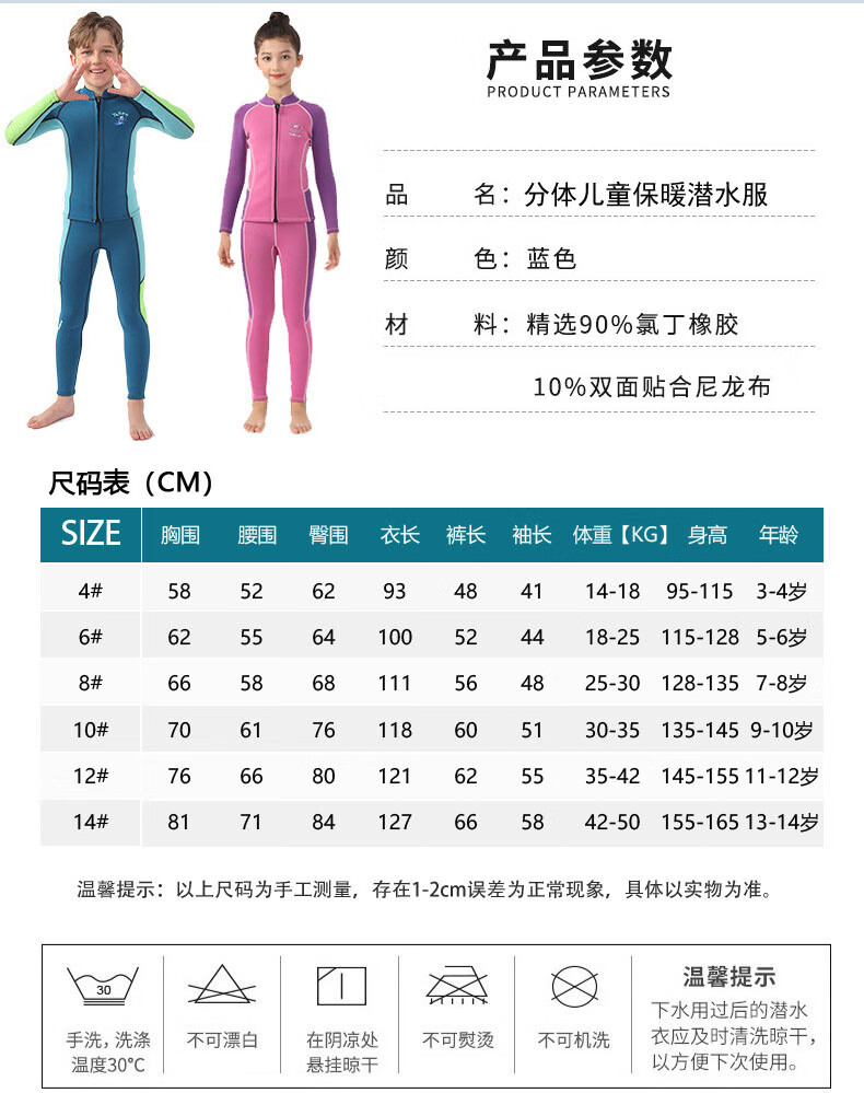 Sun Aegis children's diving wetsuit split thickened warm surfing wetsuit for boys and girls long-sleeved suit paddleboard swimming suit boys dark blue 6#