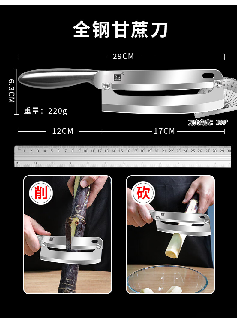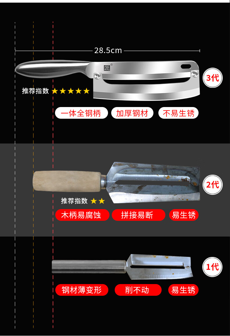 Jiangjiang brand stainless steel sugar cane peeling knife pineapple knife peeling fruit knife special commercial professional peeler pineapple knife Jiangjiang brand all steel sugar cane knife 2.7 mm thick