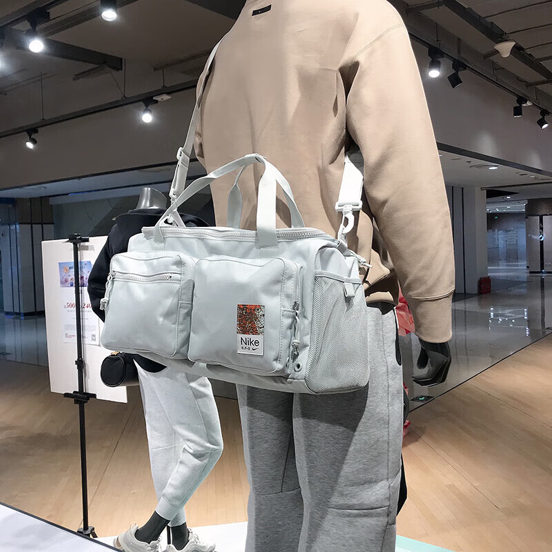 Nike Air Cushion Shoulder Bag Sports Fitness Leisure Travel Bucket Bag Portable Crossbody Bag FJ4817-034 New Year Gift FJ4817-034 Light Silver Air Cushion Shoulder Pad Main Image