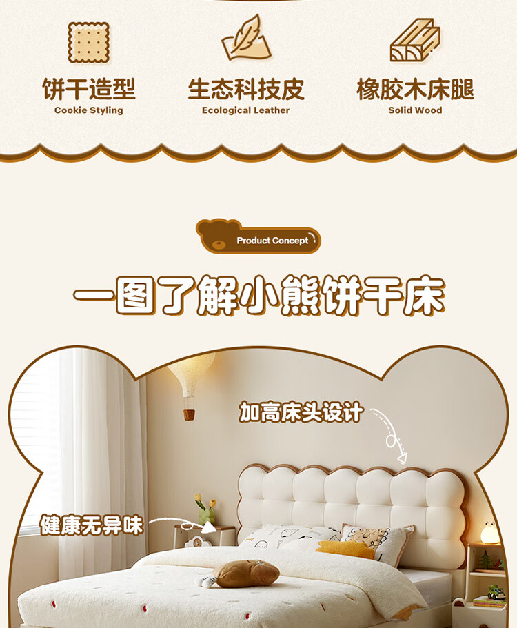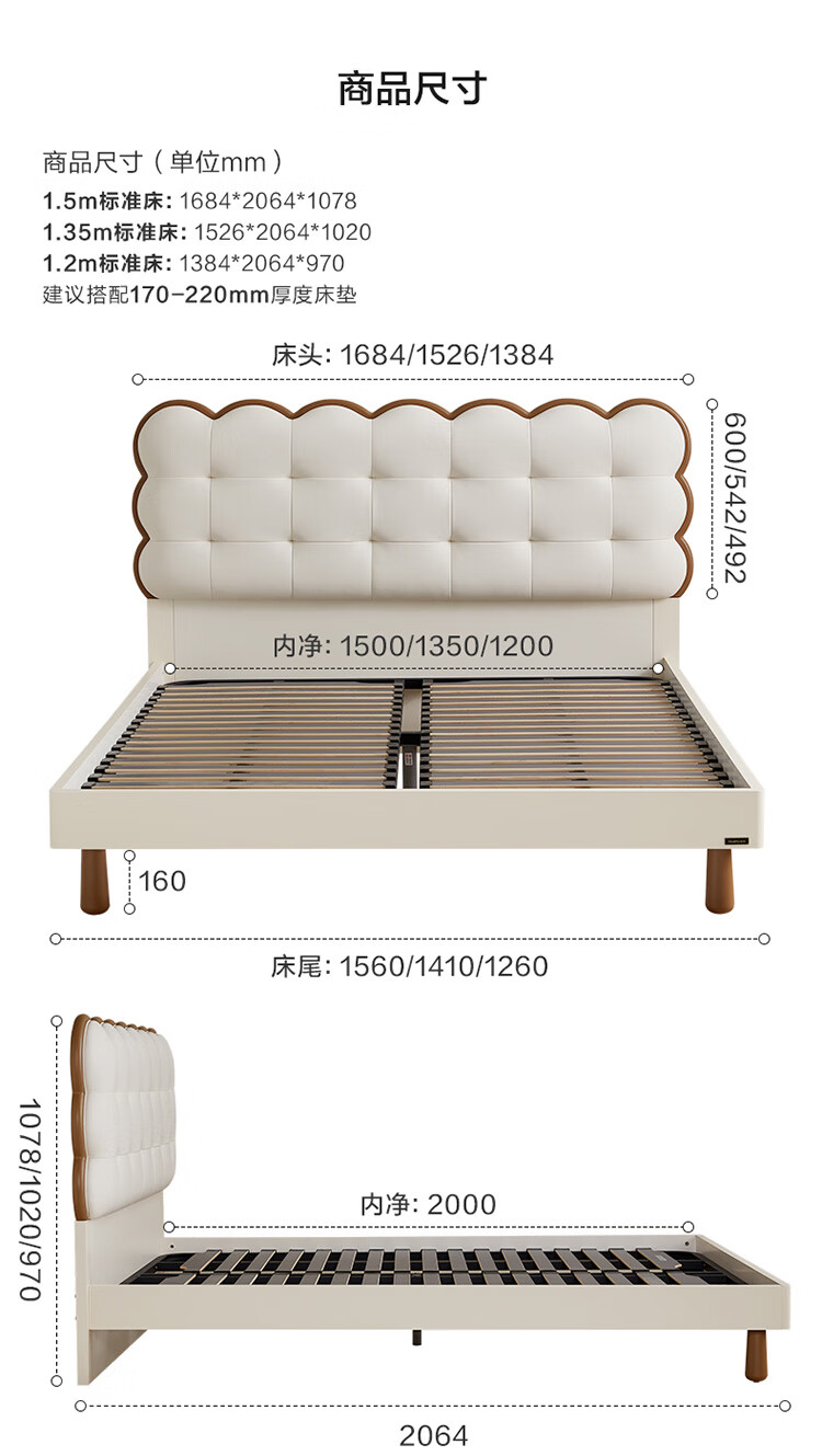 Quanyou (QUANU) Home Furnishing Leather Art Soft Bed Bed for Boys and Girls 1.5m
