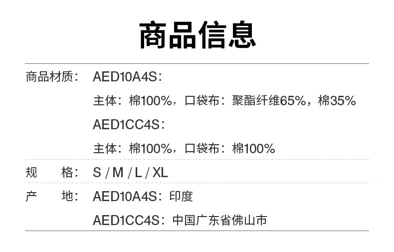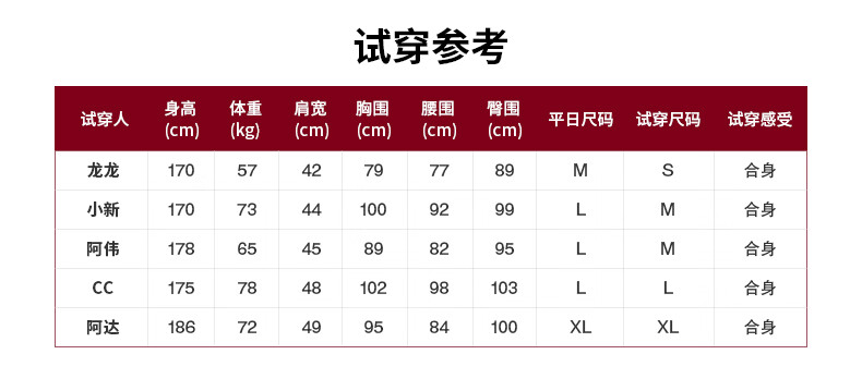 China (cm) 165 / 88-90 170 / 96-98 175 / 108-110 180 / 118-122 185 / 126-130