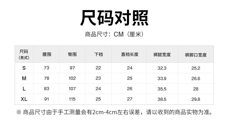 Outseam (cm) 99 cm 101.5 cm 104 cm 106.5 cm 109 cm