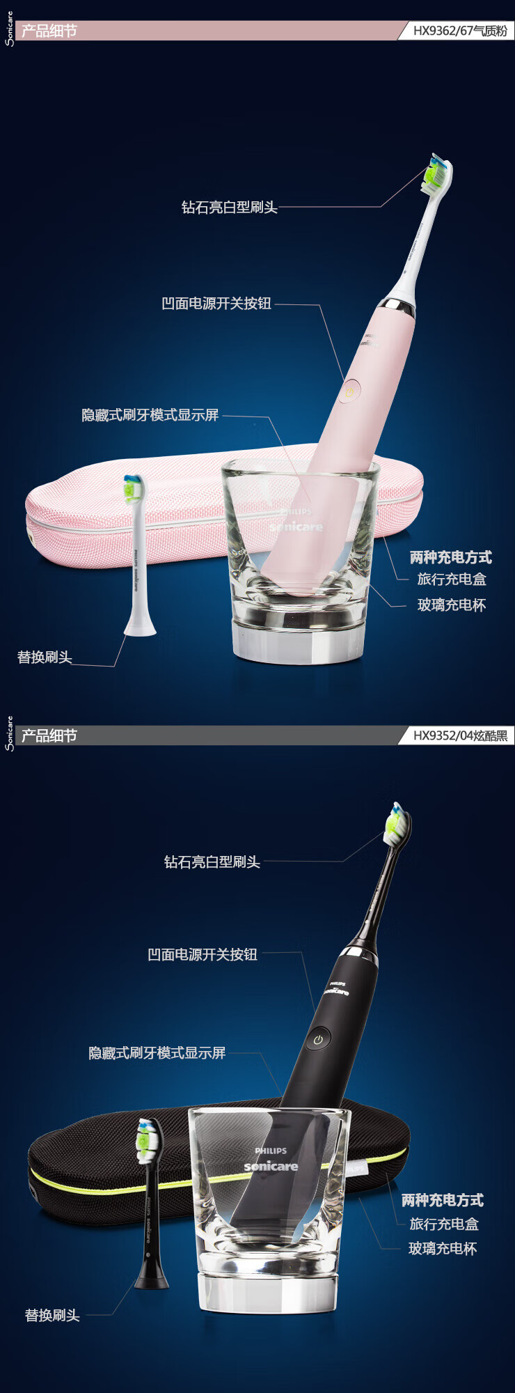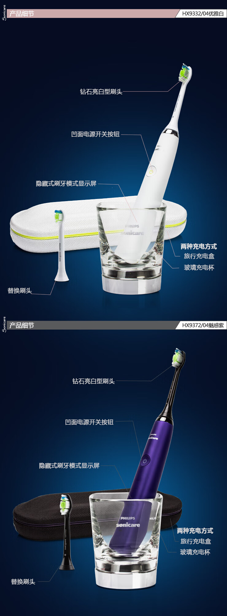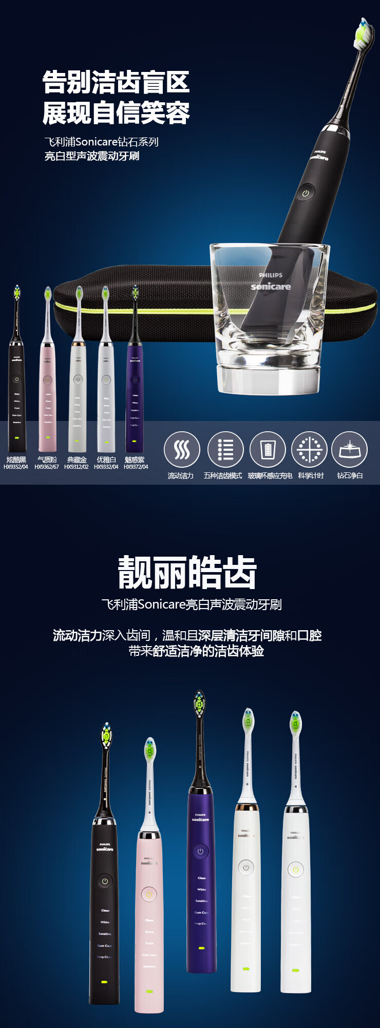 Philips Electric Toothbrush Diamond 5 Series HX9352/HX9362/HX9332/HX9372/HX9312 Diamond Bright White Brush Teeth Cleaning Care HX9332 White Diamond Original Box Double Recharge