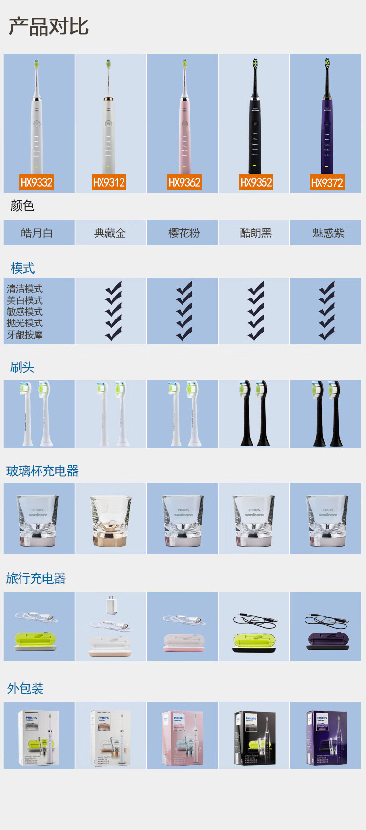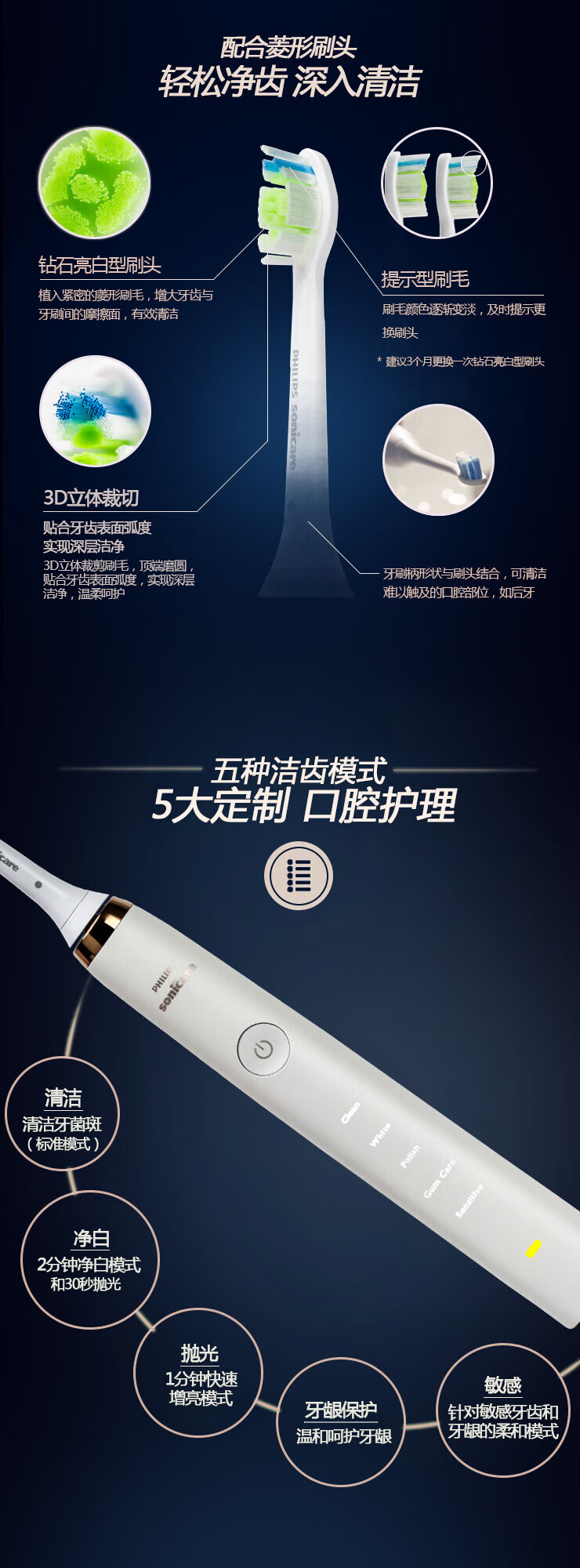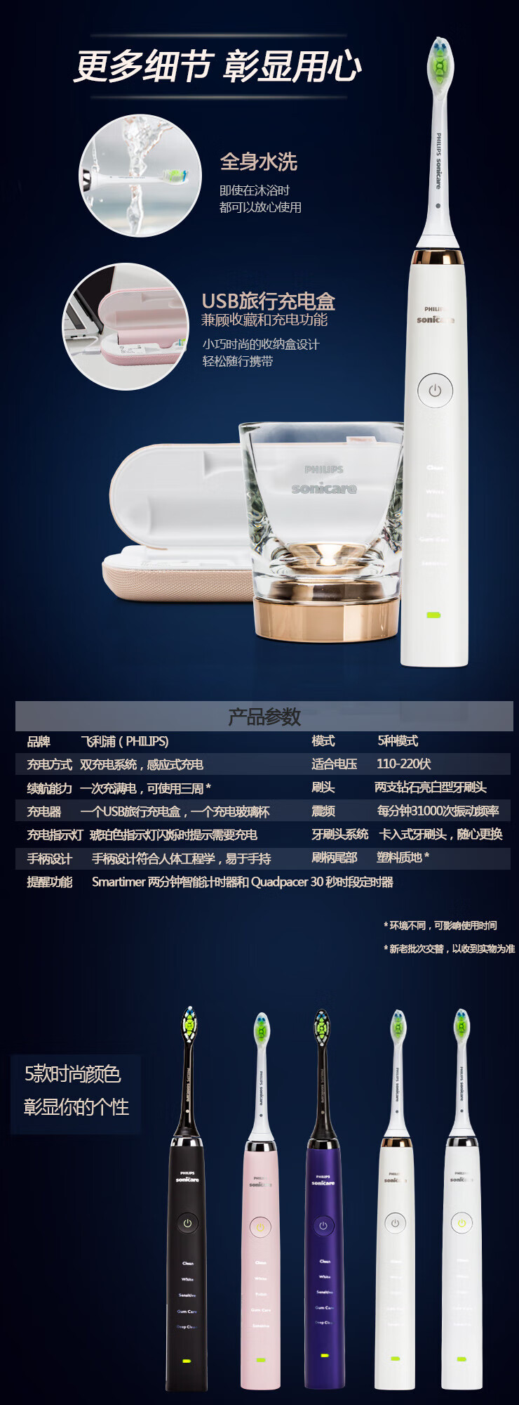 Philips Electric Toothbrush Diamond 5 Series HX9352/HX9362/HX9332/HX9372/HX9312 Diamond Bright White Brush Teeth Cleaning Care HX9332 White Diamond Original Box Double Recharge