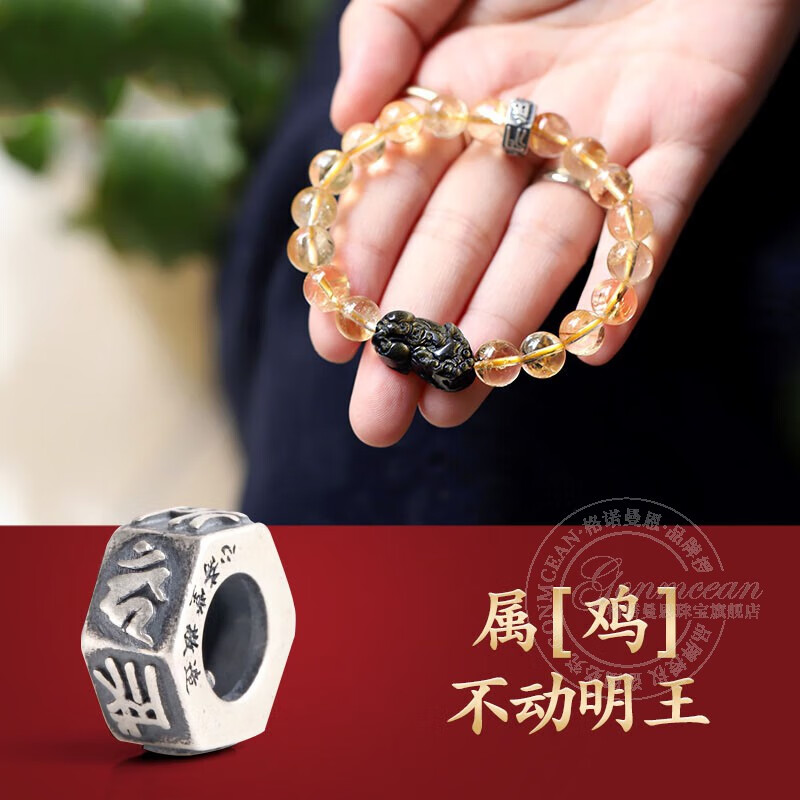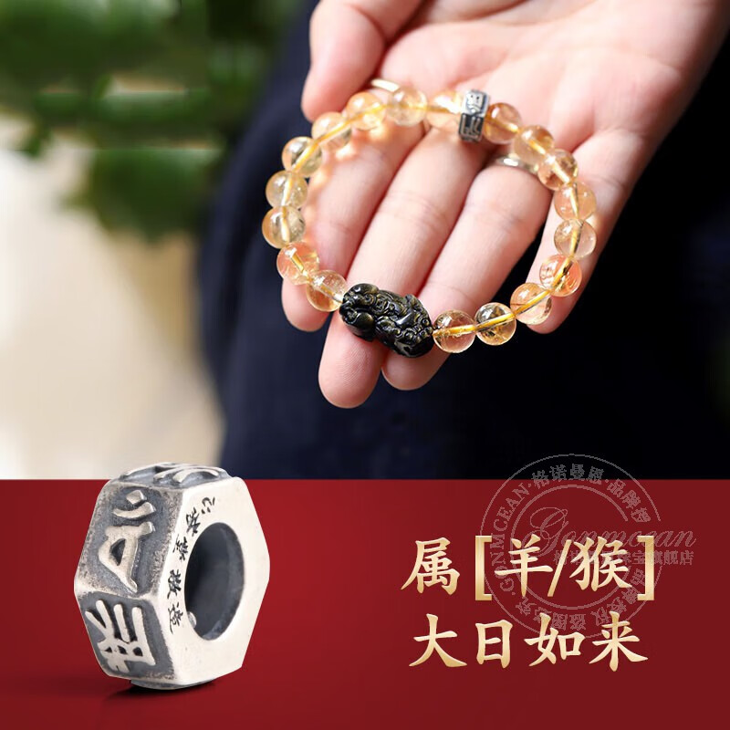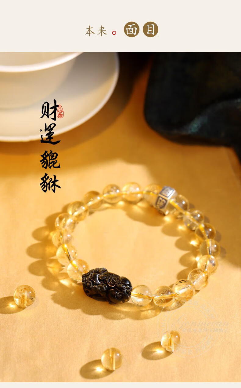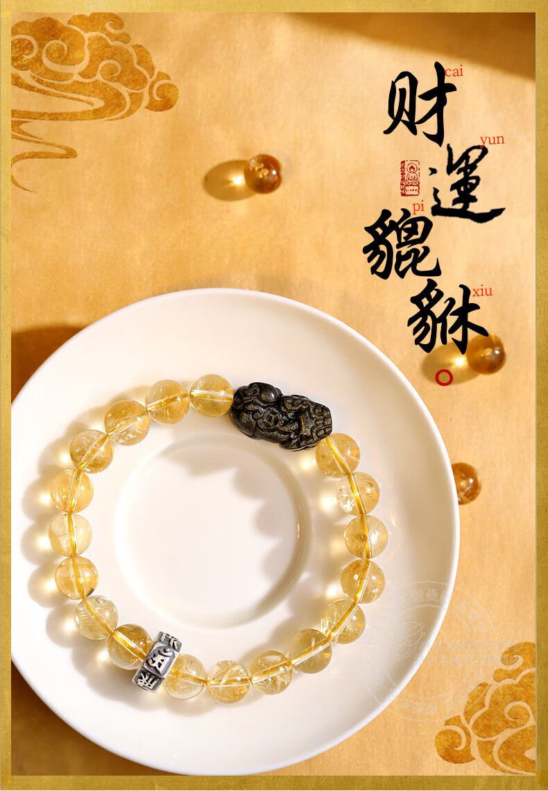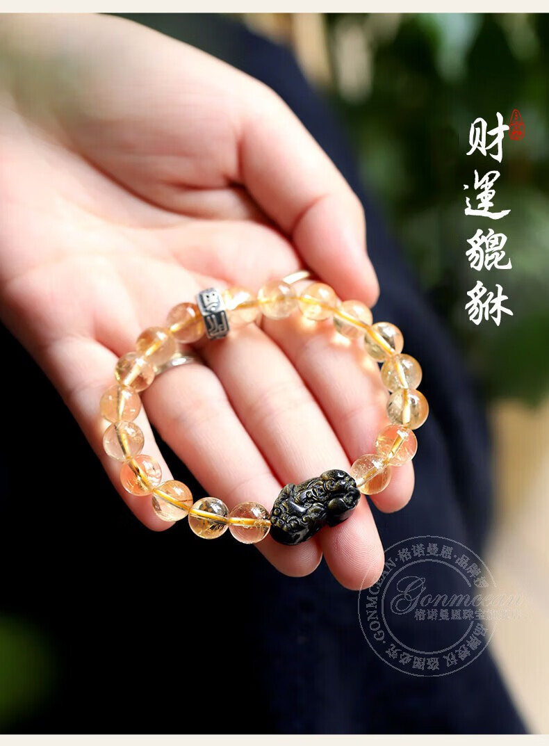 Gernomanne Golden Pixiu Brazilian Citrine Bracelet Lucky Crystal Bracelet Exquisite Gift for Men and Women Beads 8mm