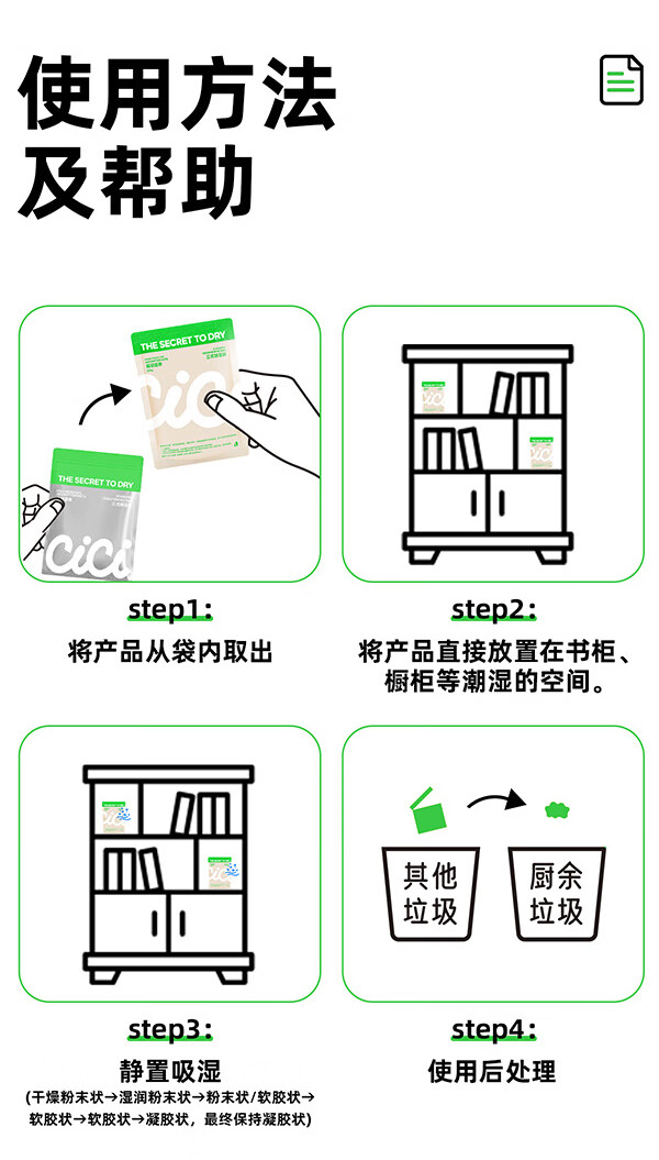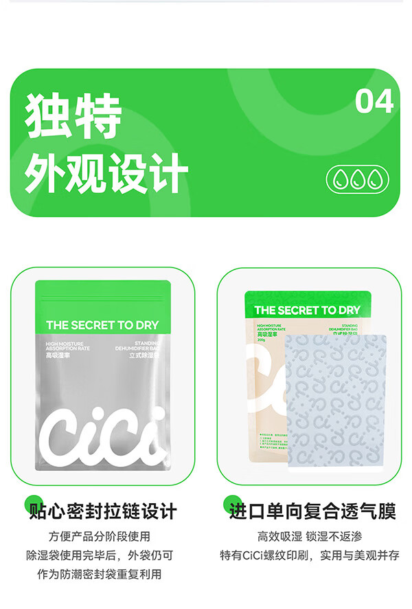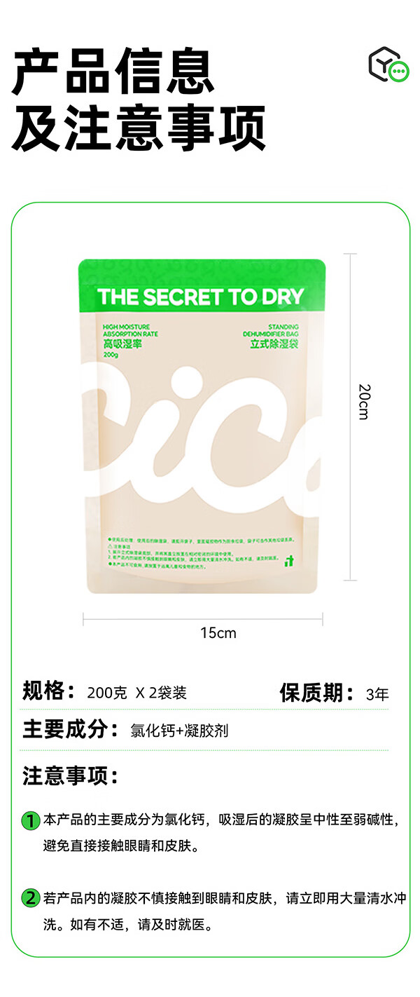 CICI dehumidification bag desiccant indoor moisture-proof and mildew-proof student dormitory wardrobe bookshelf vertical dehumidification bag 6 bags (200g*6)