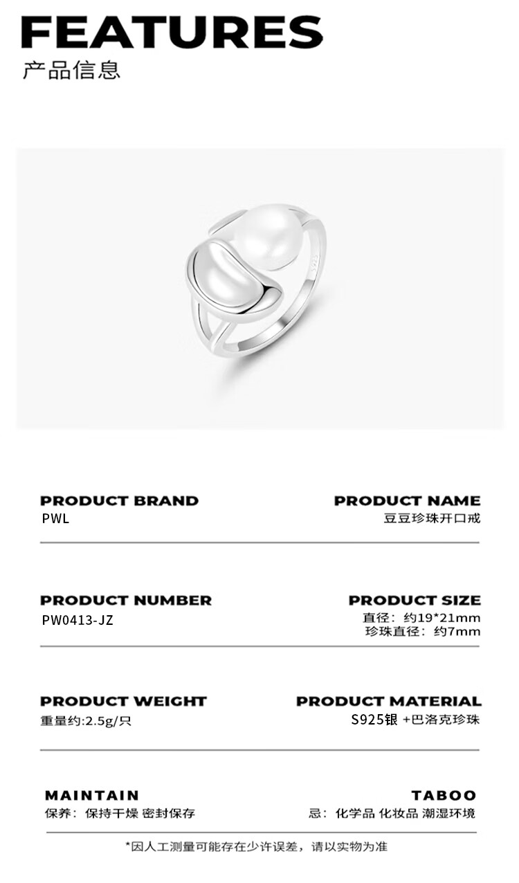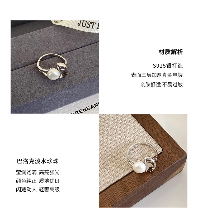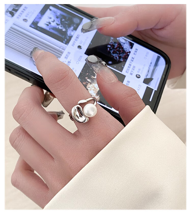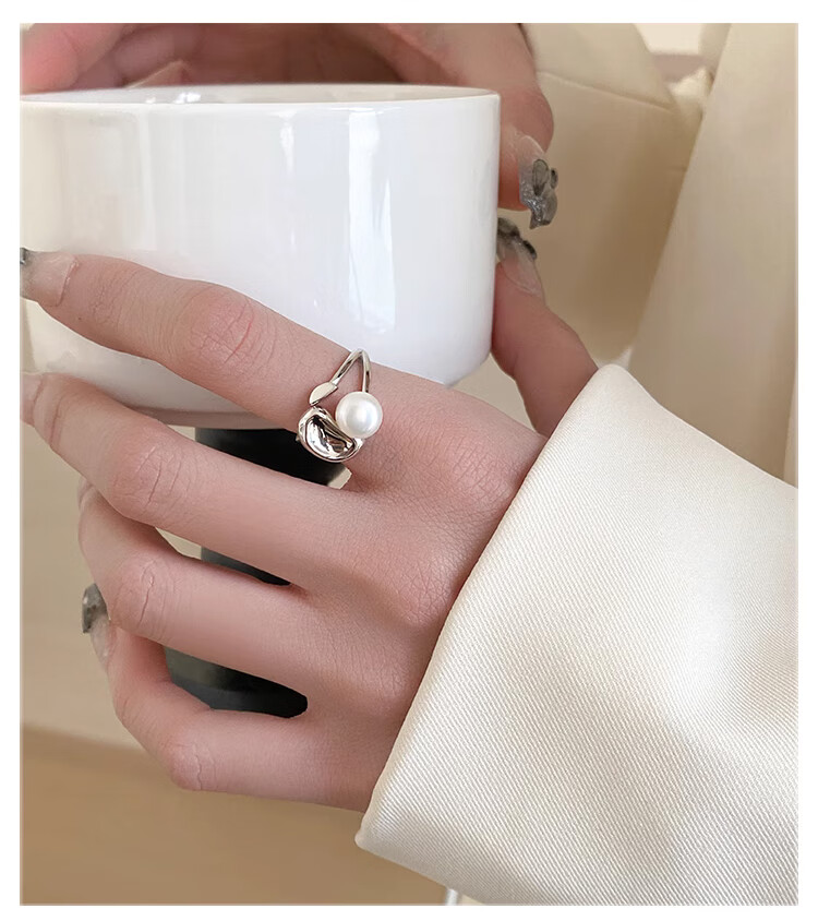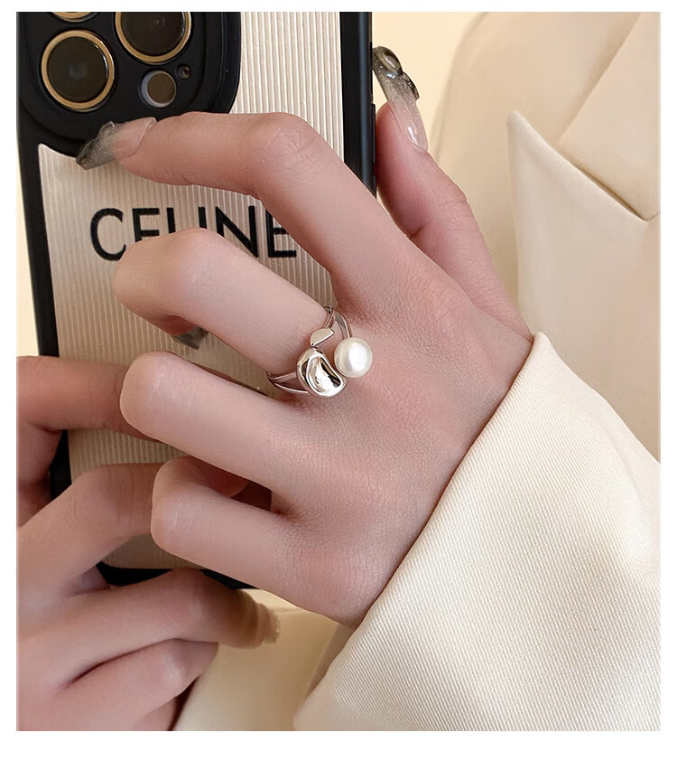 PWLS925 Silver Baroque Freshwater Pearl Ring Women's Niche Design High-end Open Index Finger Ring Tail Ring Accessories Baroque Pearl Open Ring 925 Silver