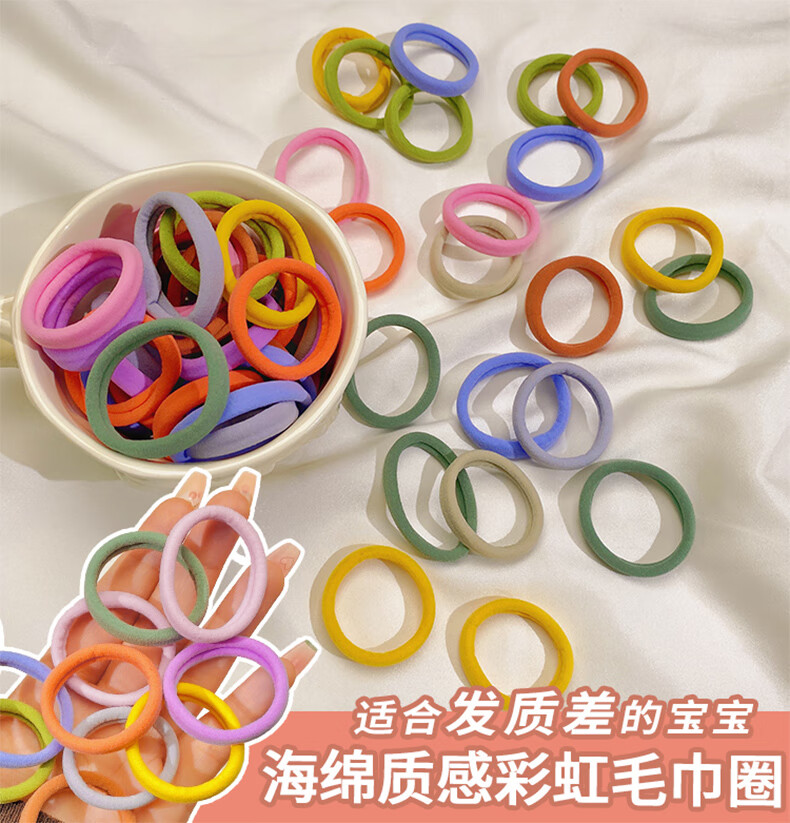Zuoou children's headband does not hurt hair, high-quality girls' hair band hair rope 2025 new rubber band hair rope baby hair accessories for women, rainbow color canned about 20 pieces