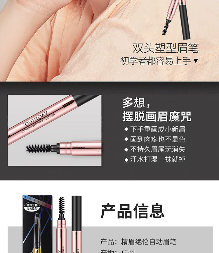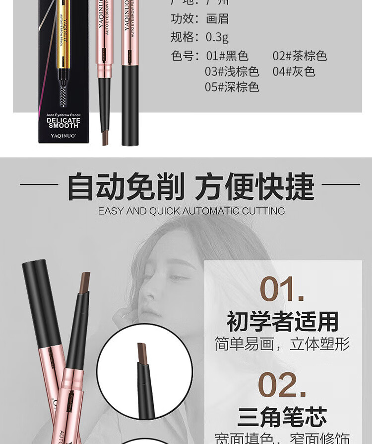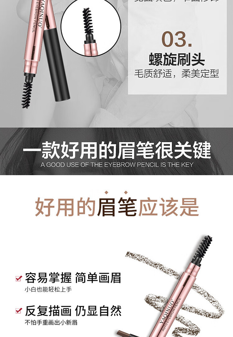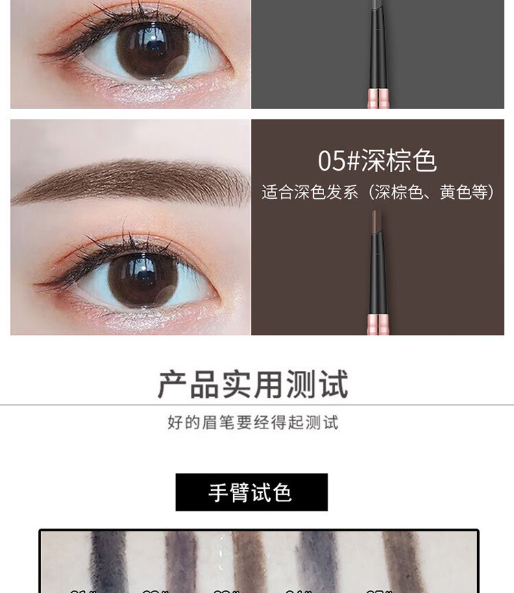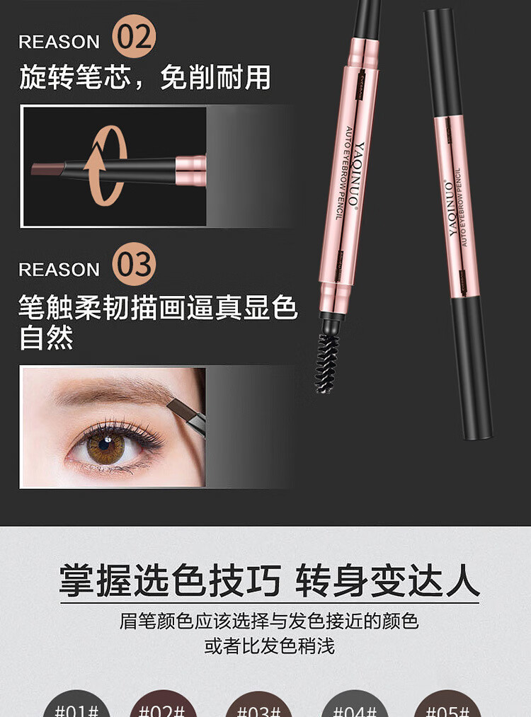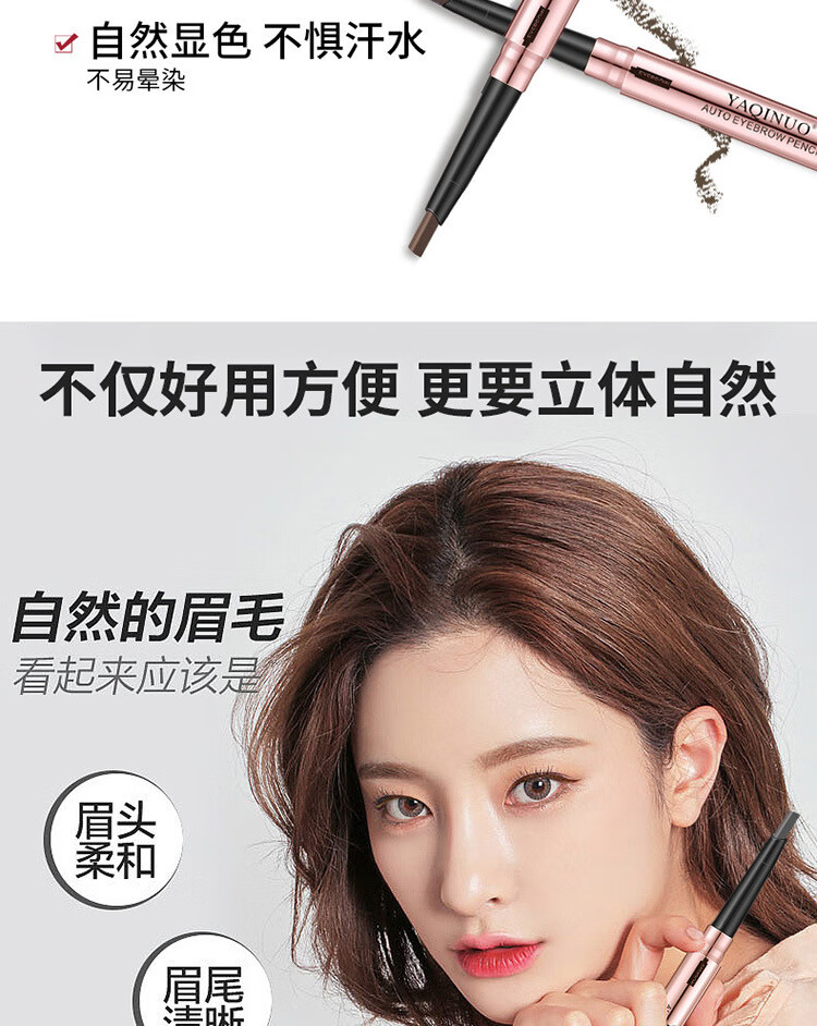 Yaqinuo fashionable double-headed automatic eyebrow pencil, waterproof and sweat-proof, not easy to fade, long-lasting natural makeup pencil, wild eyebrow pencil 02# tea brown
