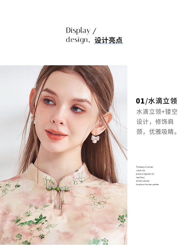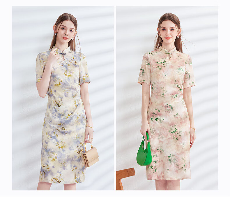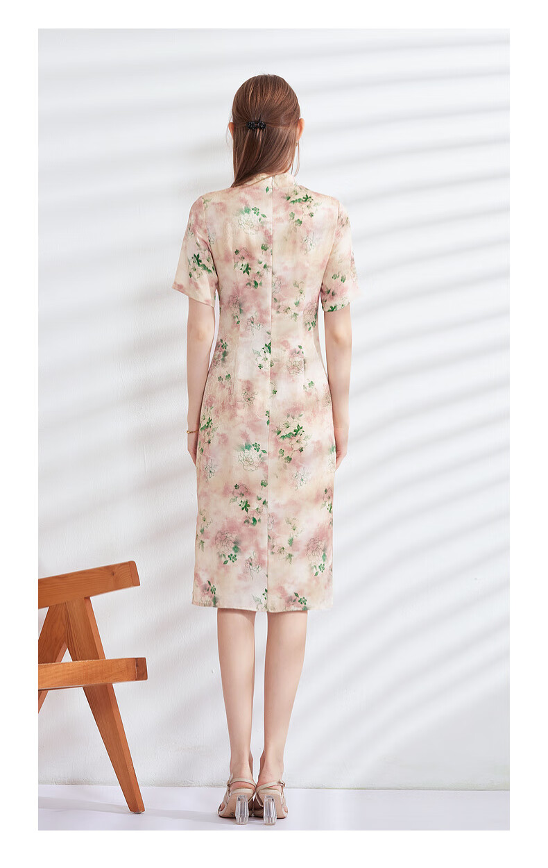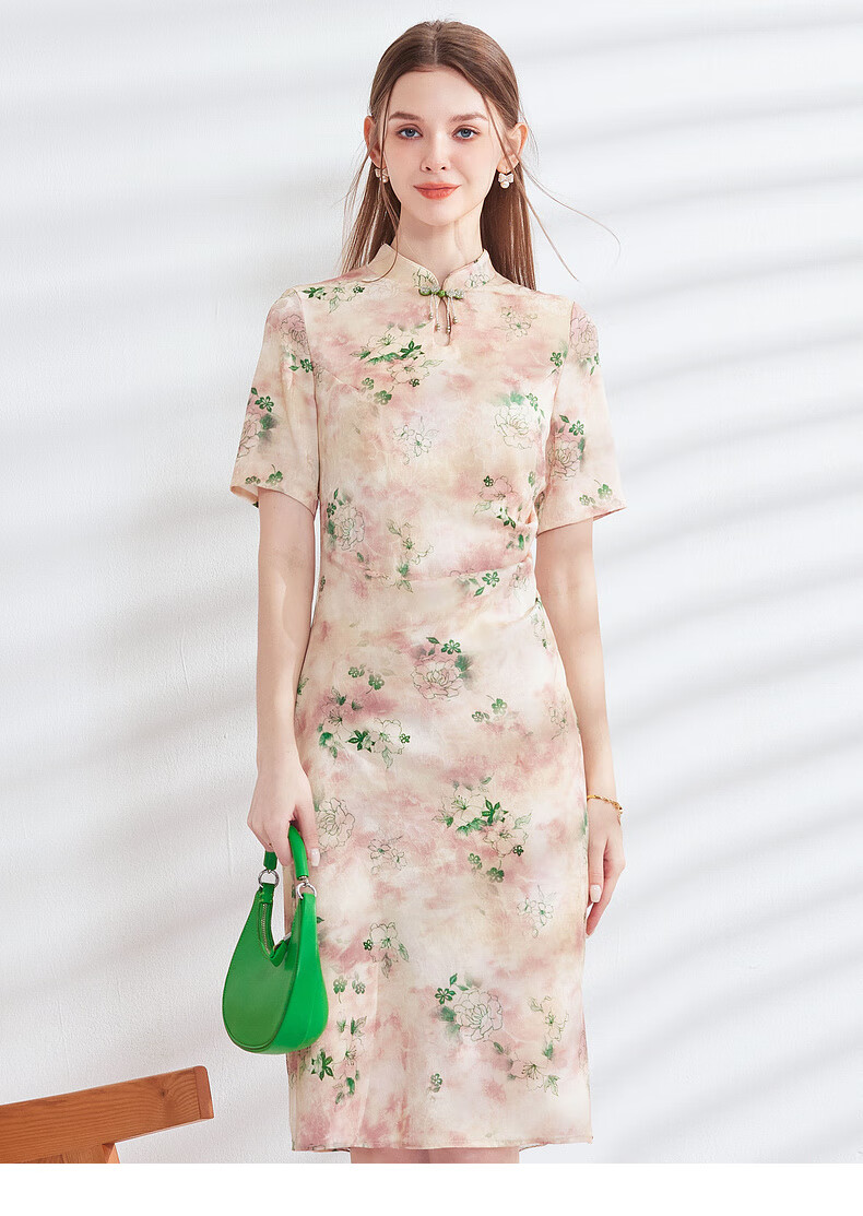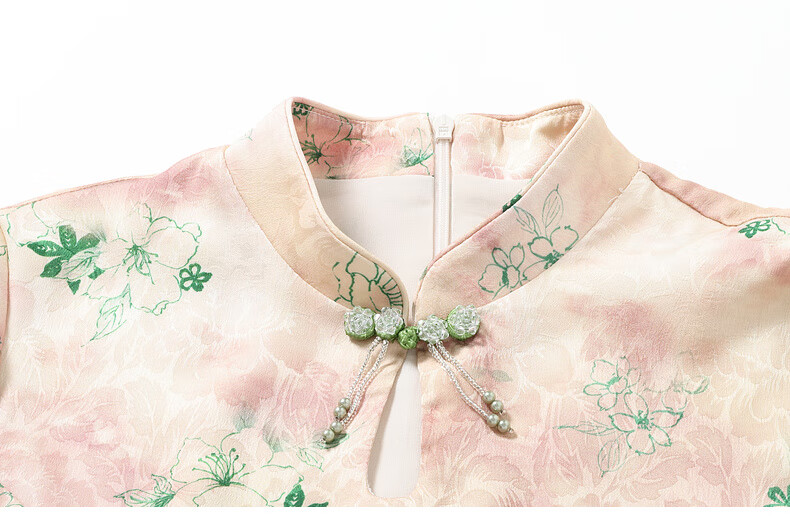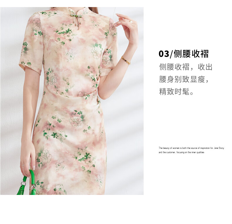 Classic Story (JANE STORY) 2024 new summer high-end daily cheongsam for women, young style, national style, new Chinese style floral dress, apricot pink and green flower S