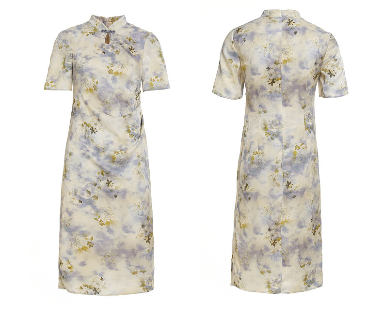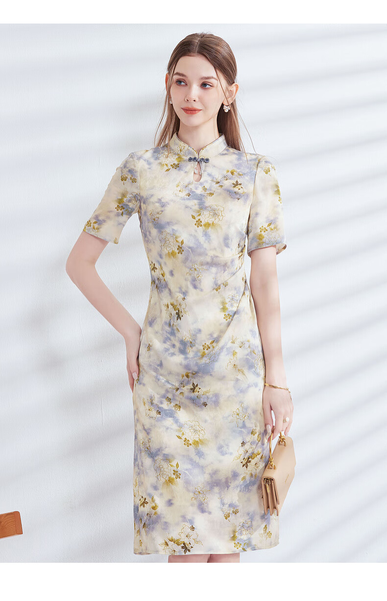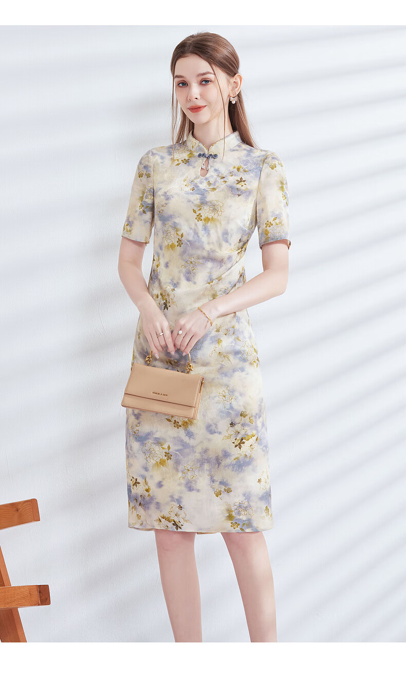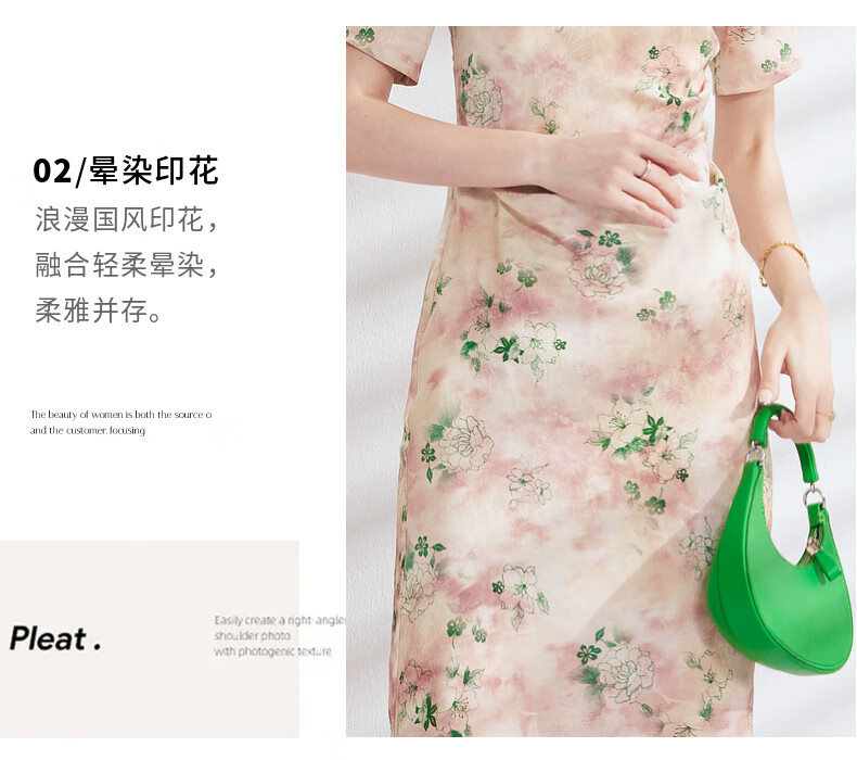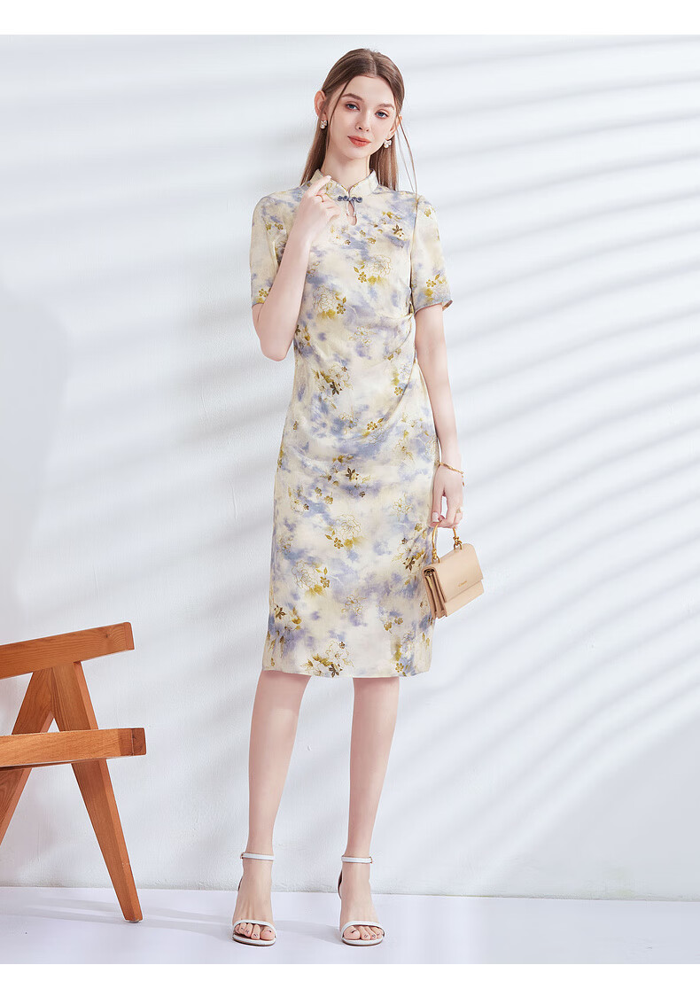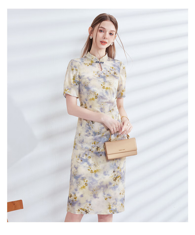 Classic Story (JANE STORY) 2024 new summer high-end daily cheongsam for women, young style, national style, new Chinese style floral dress, apricot pink and green flower S