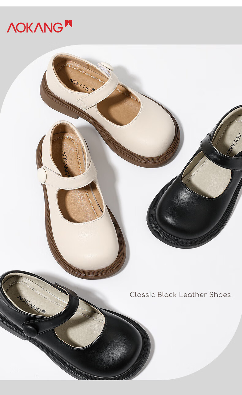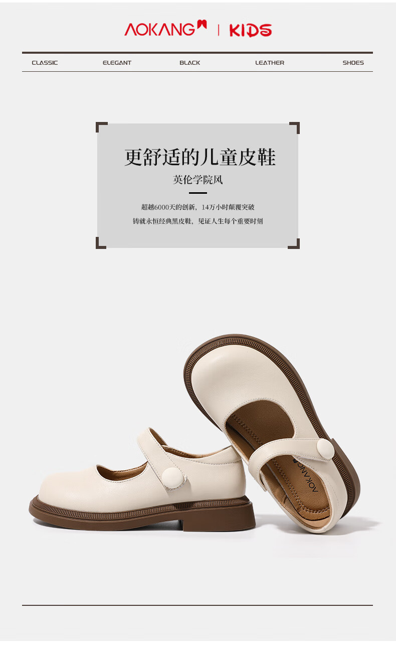Aokang Aokang children's shoes girls princess shoes 2025 spring new style girls Mary Jane small leather shoes female baby performance shoes single shoes beige 26