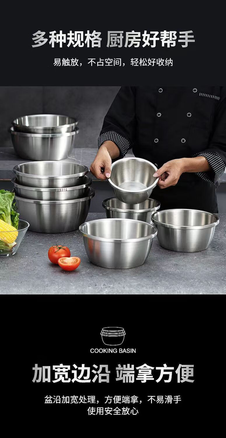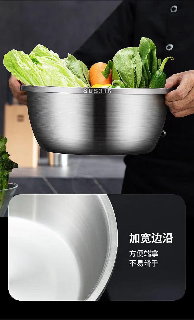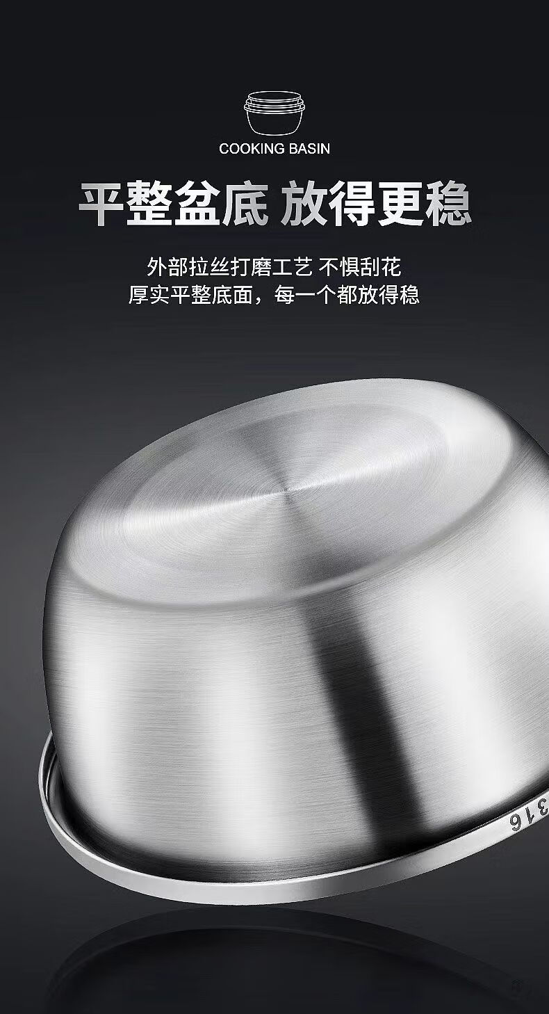 Sudel three-piece set 316L stainless steel basin set vegetable basin household oil basin kitchen egg and noodle soup basin 18-20-22cm three-piece set sent three