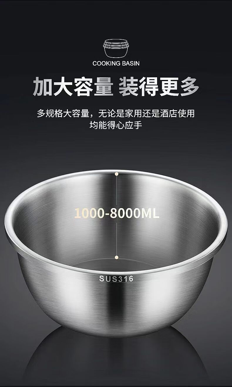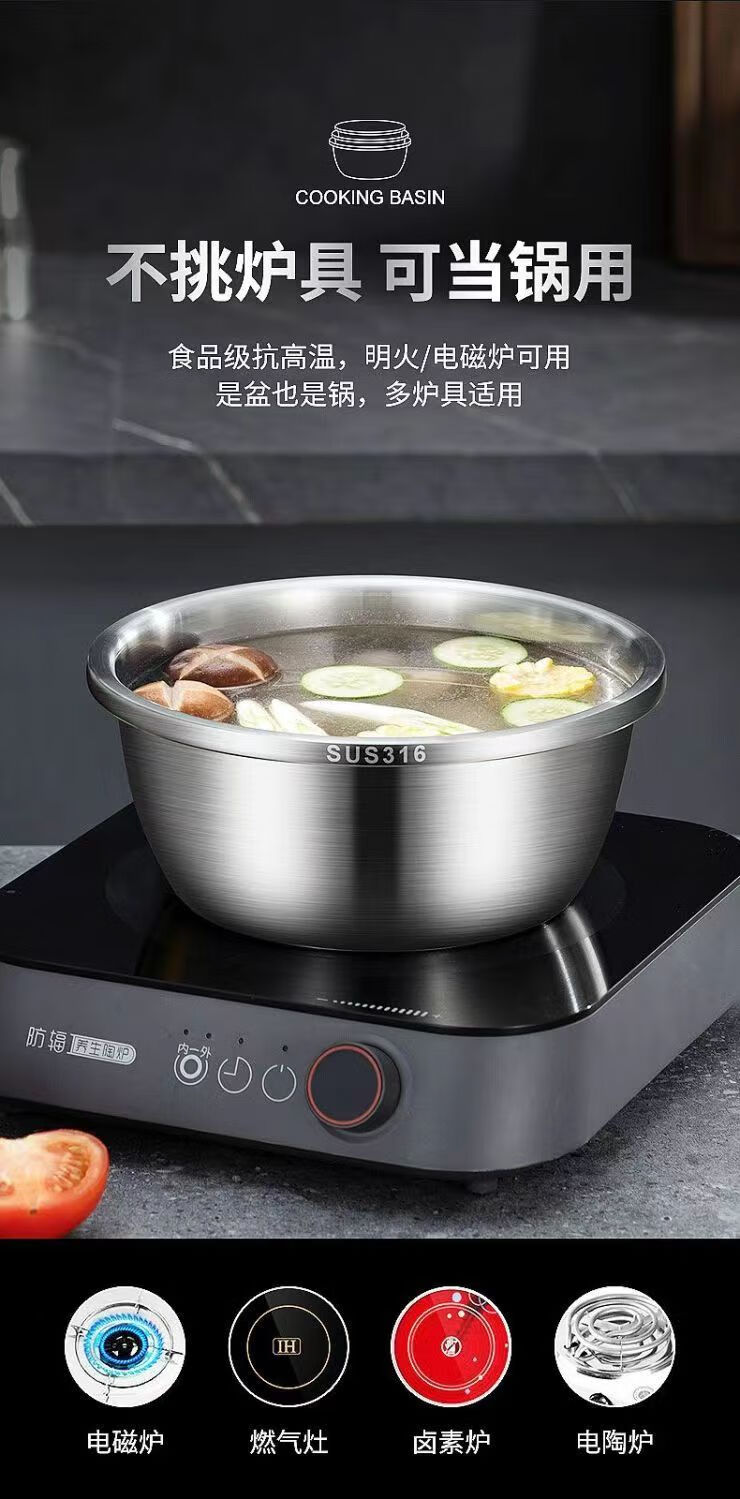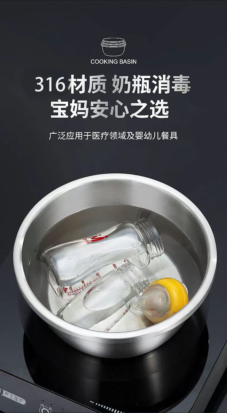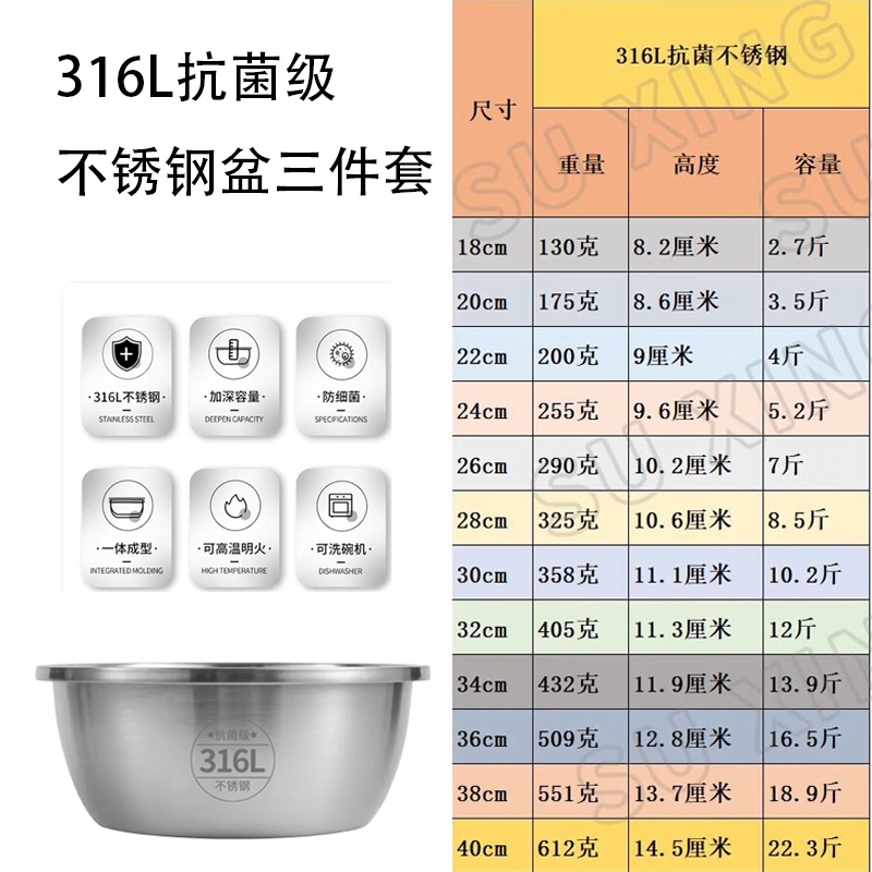 Sudel three-piece set 316L stainless steel basin set vegetable basin household oil basin kitchen egg and noodle soup basin 18-20-22cm three-piece set sent three