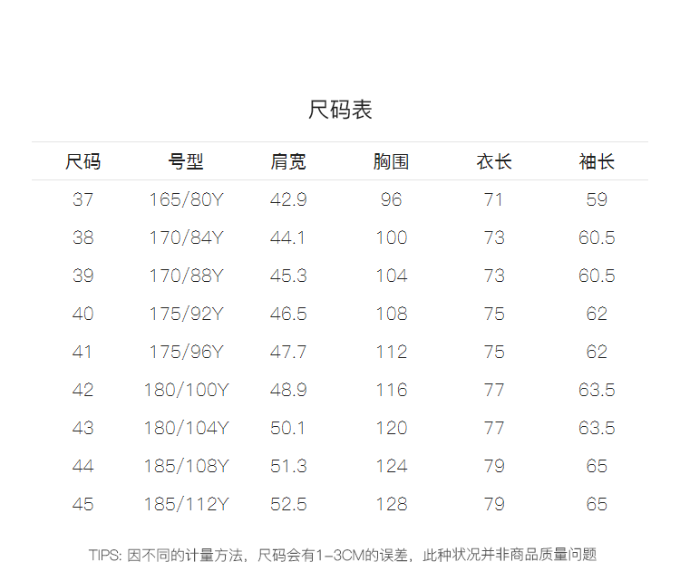 China (cm) 165 / 88-90 170 / 96-98 175 / 108-110 180 / 118-122 185 / 126-130