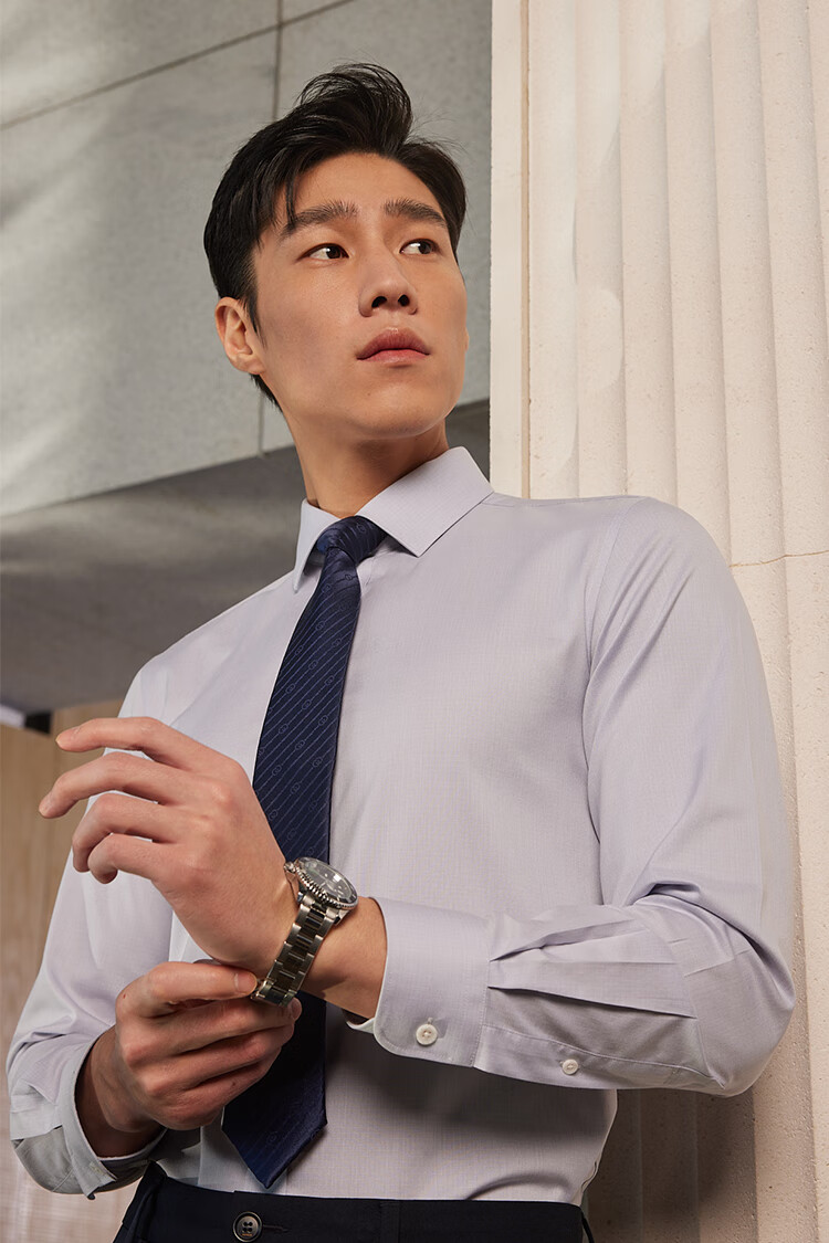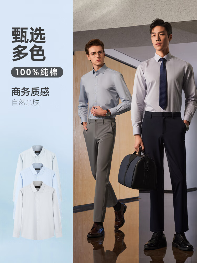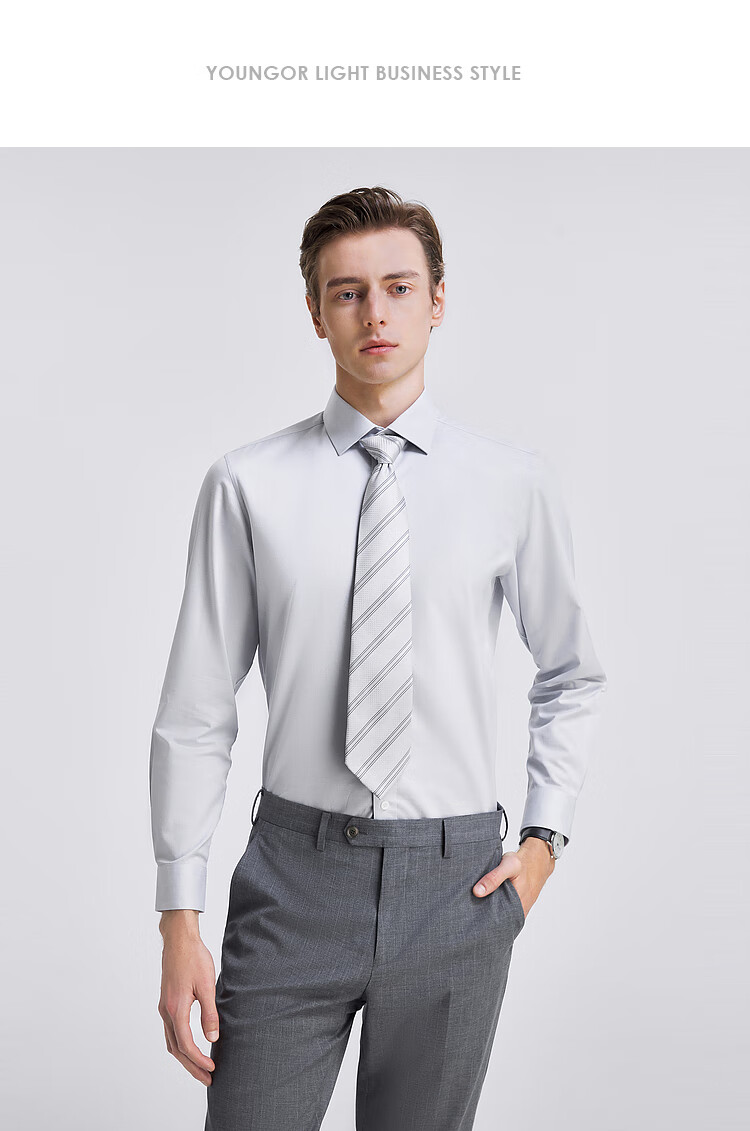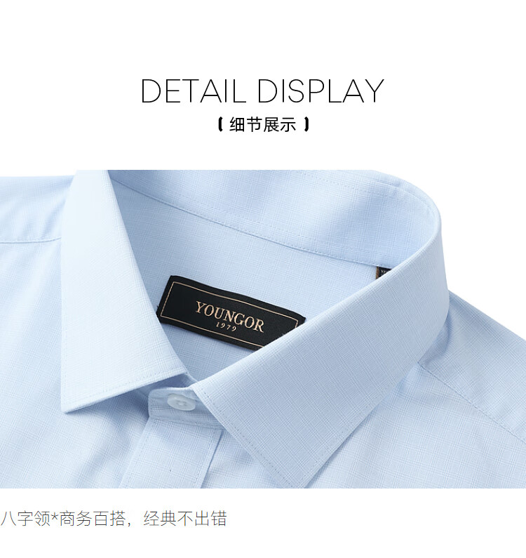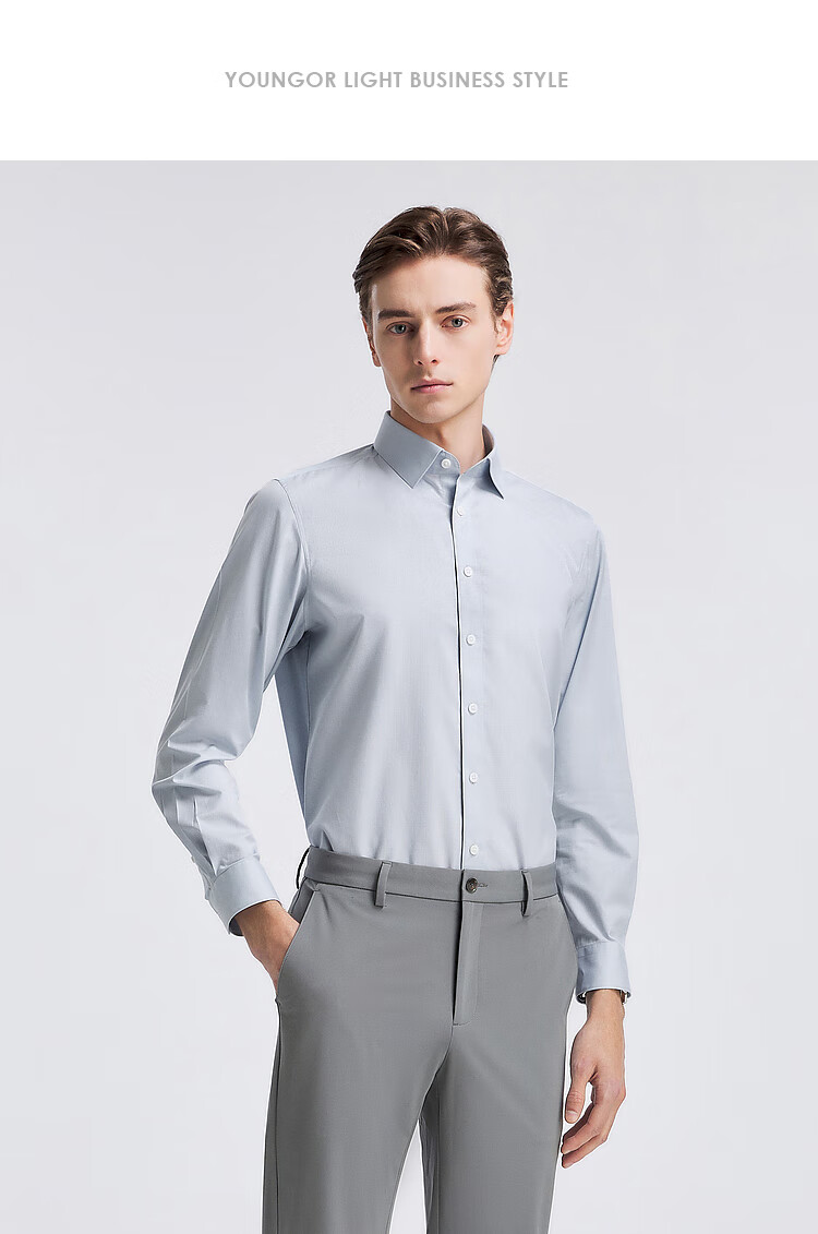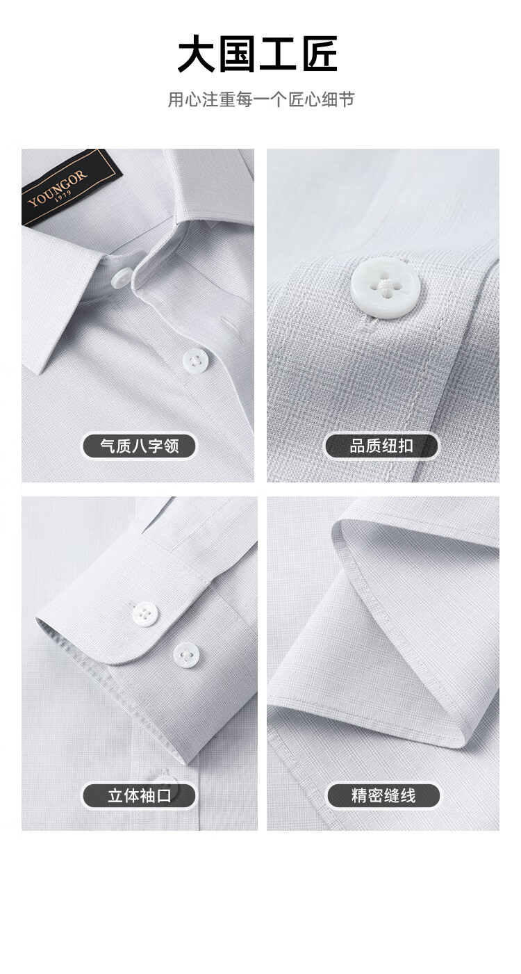 YOUNGOR long-sleeved shirt for men, DP no-iron series, 100% cotton fabric, no-iron, easy to care for, anti-wrinkle, flat and stylish, bean green plaid 42