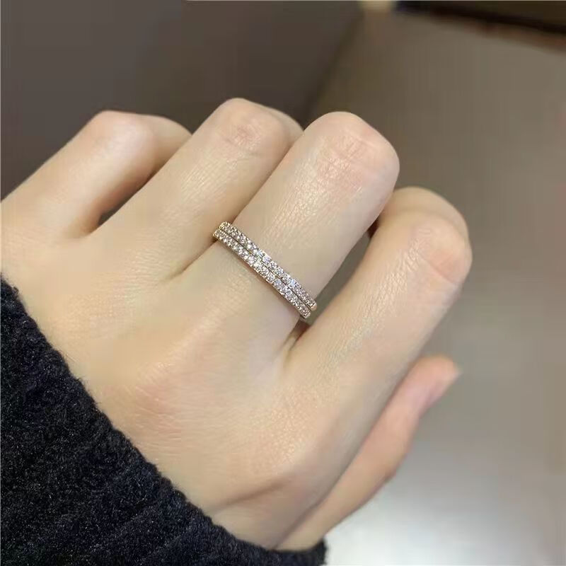 Fat Donglai's same style rose gold ring with row of diamonds for women 18k gold plated design niche fashion personalized color gold rose gold US size 9