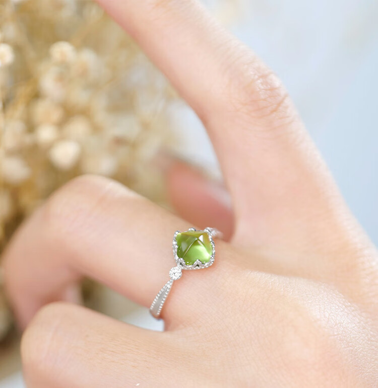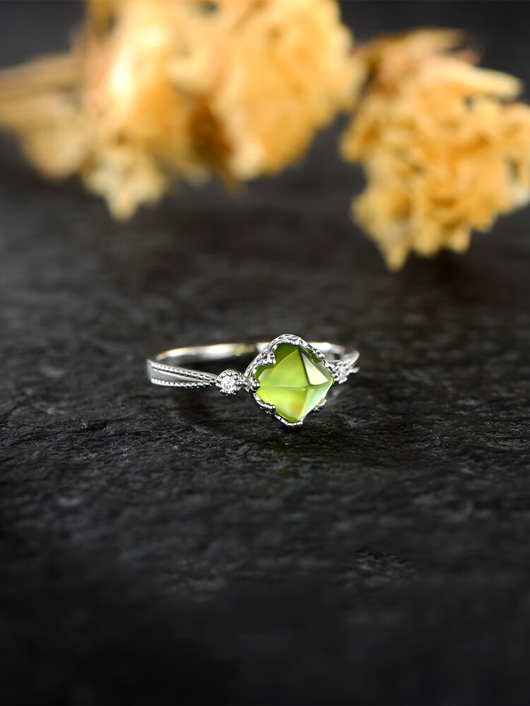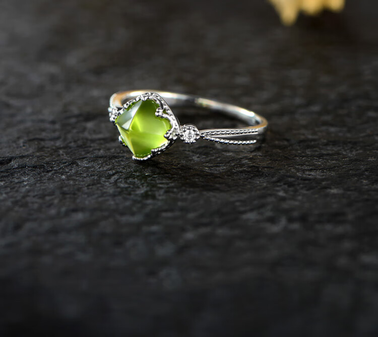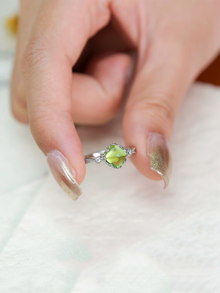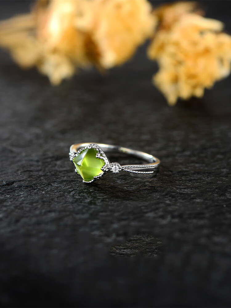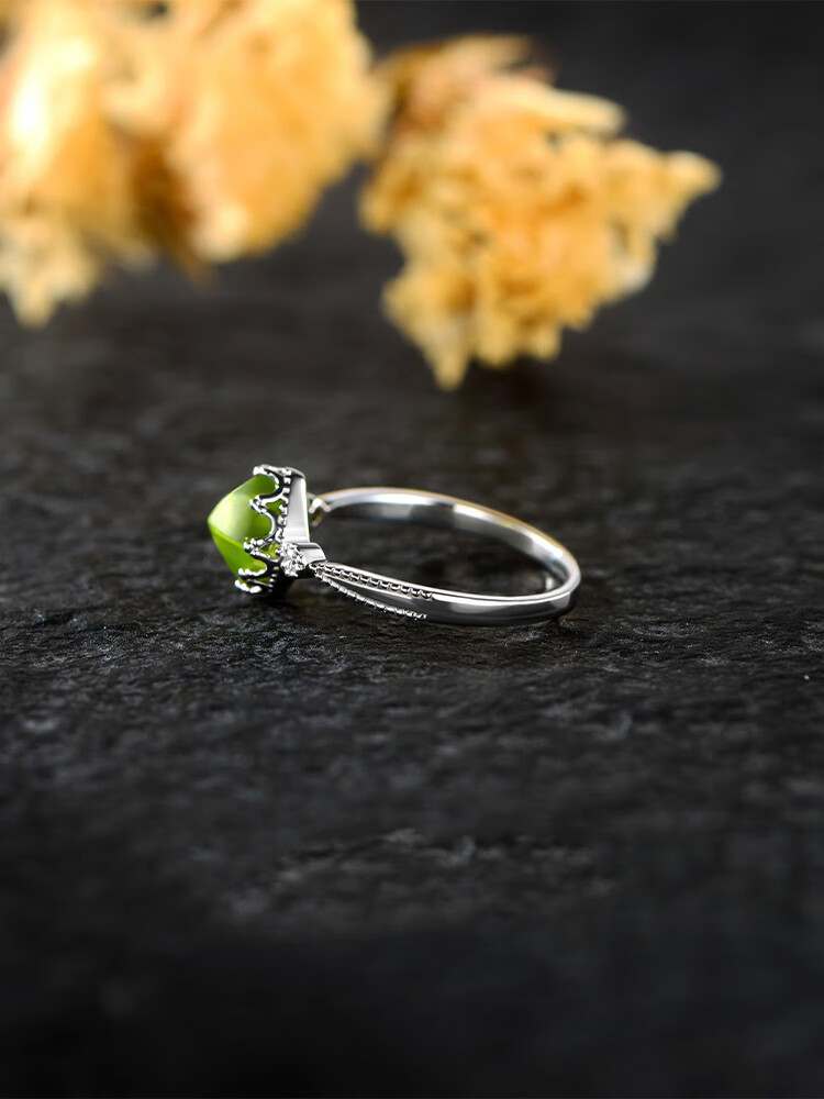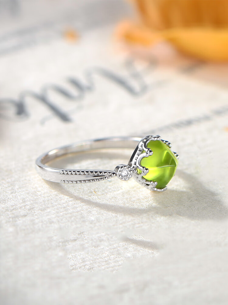 Nevistine Peridot Ring 925 Silver Inlaid with Green Gem Crystal Women's Ring Best Friend 520 Gift for Women Circle No. 12#