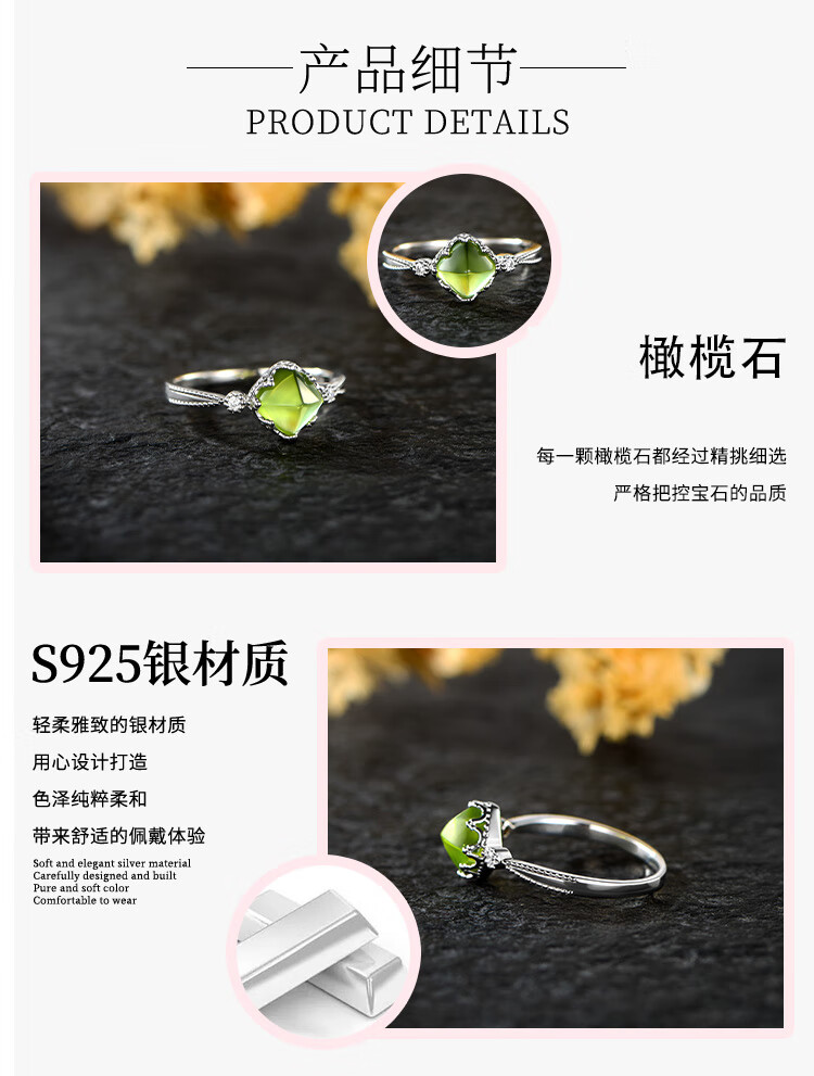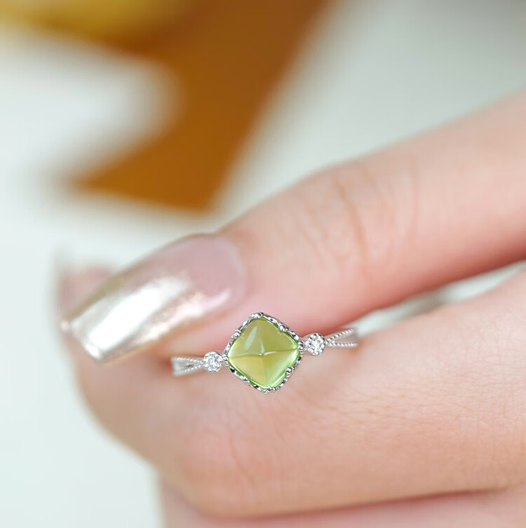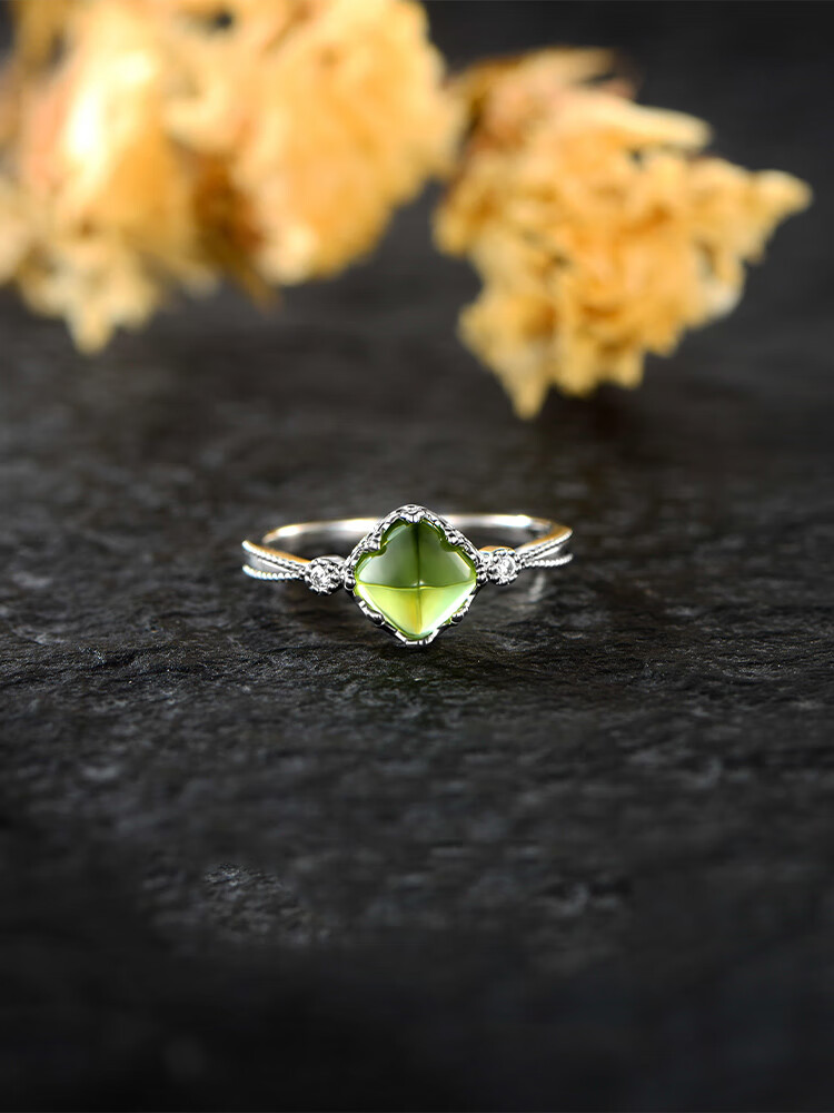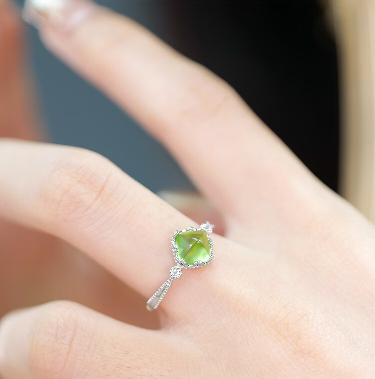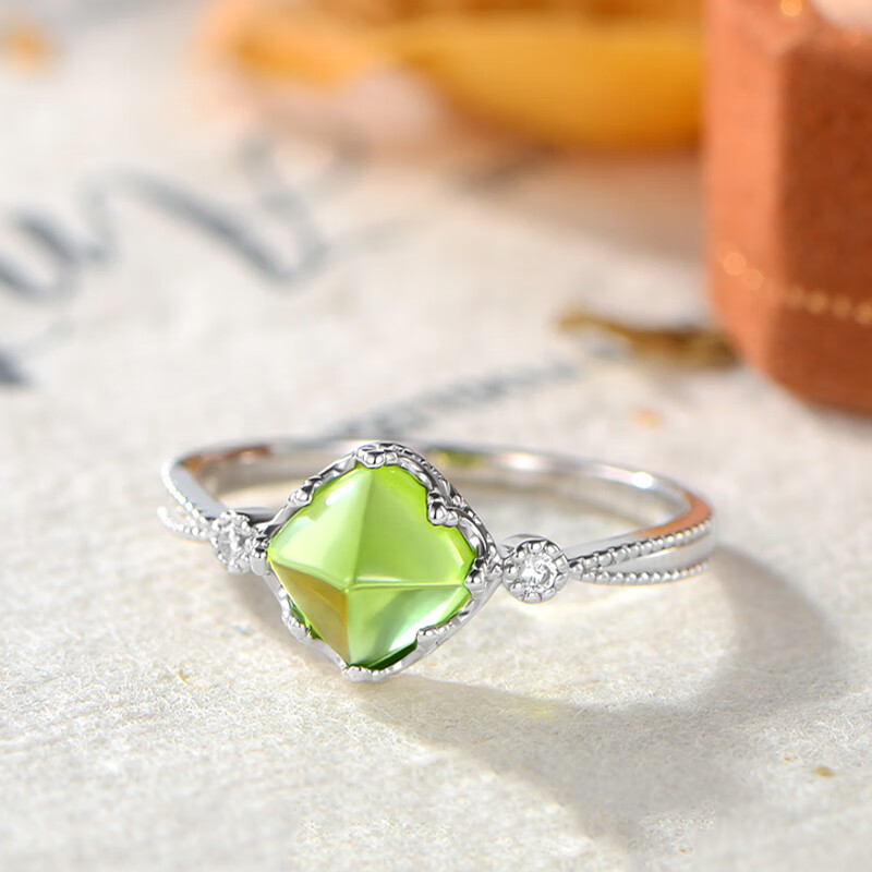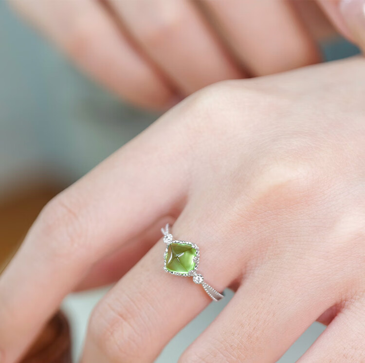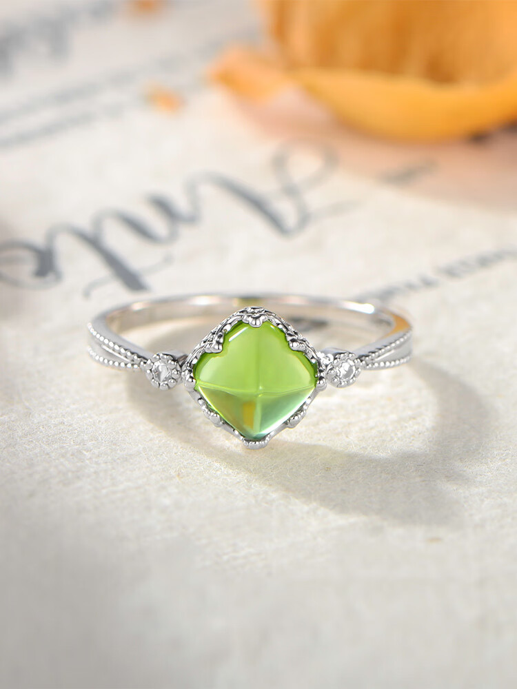 Nevistine Peridot Ring 925 Silver Inlaid with Green Gem Crystal Women's Ring Best Friend 520 Gift for Women Circle No. 12#
