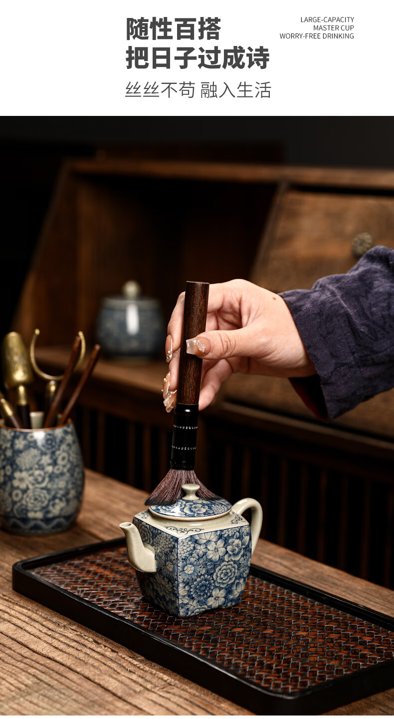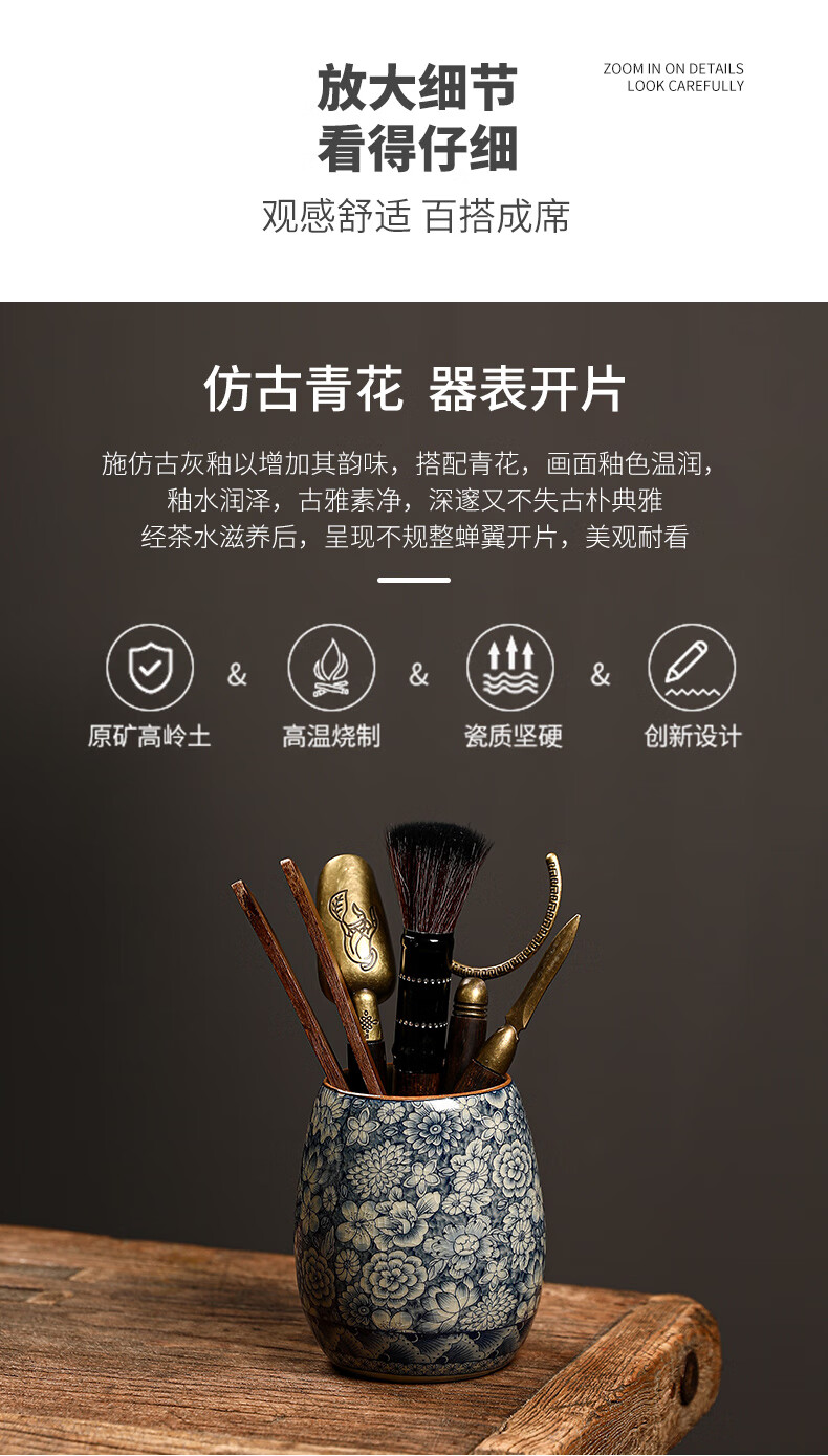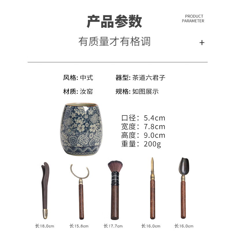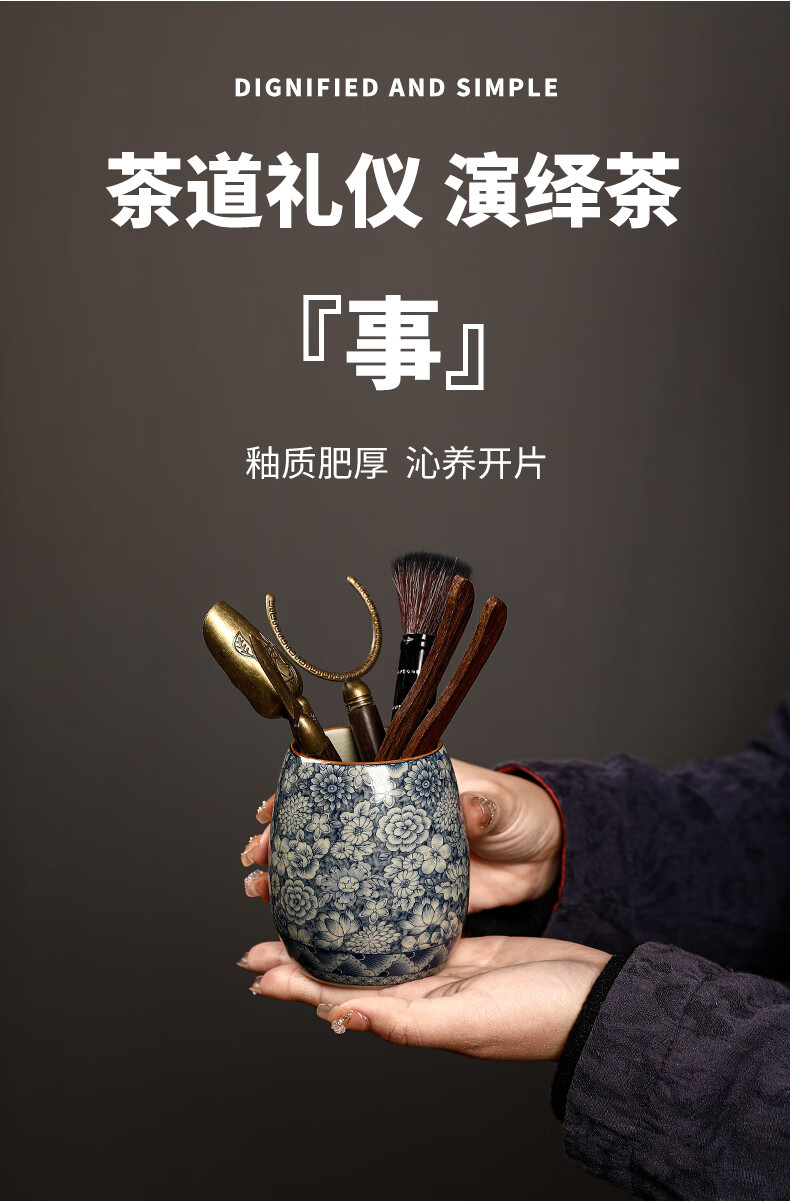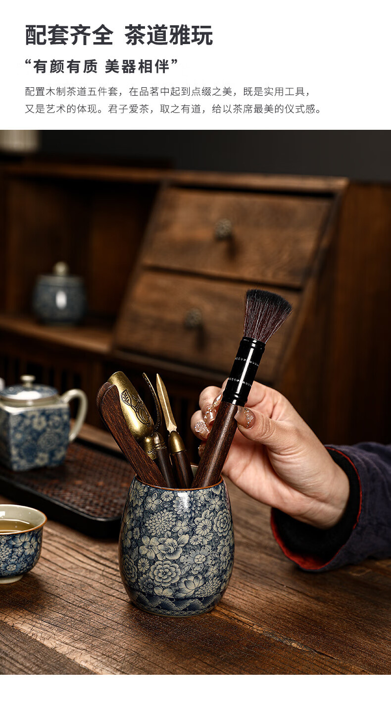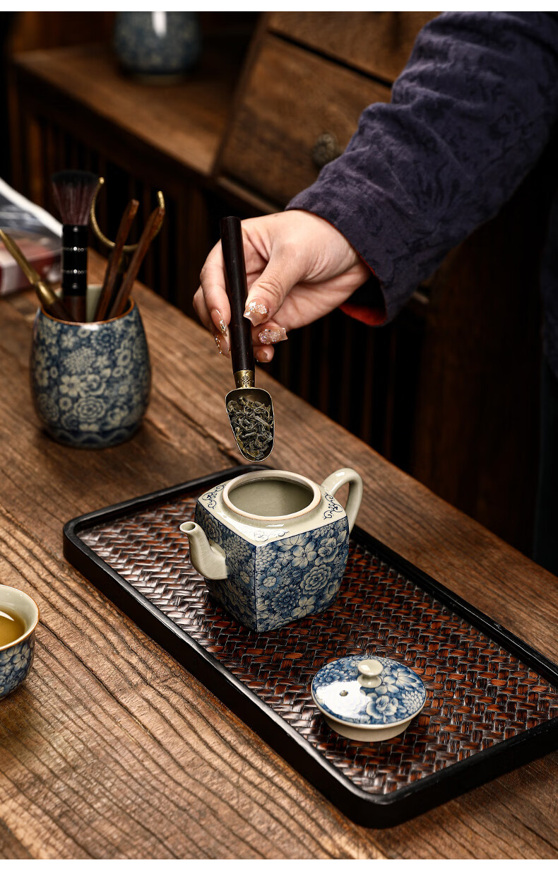The Six Gentlemen of the Tea Ceremony in the Preface of the Craftsman, Ru Kiln Blue and White Tea Cylinder, Tea Spoon, Tea Clip, Tea Needle, Pot Keeper, and Pen, Household Tea Accessories Set, Clay Blue and White - The Six Gentlemen of the Tea Ceremony