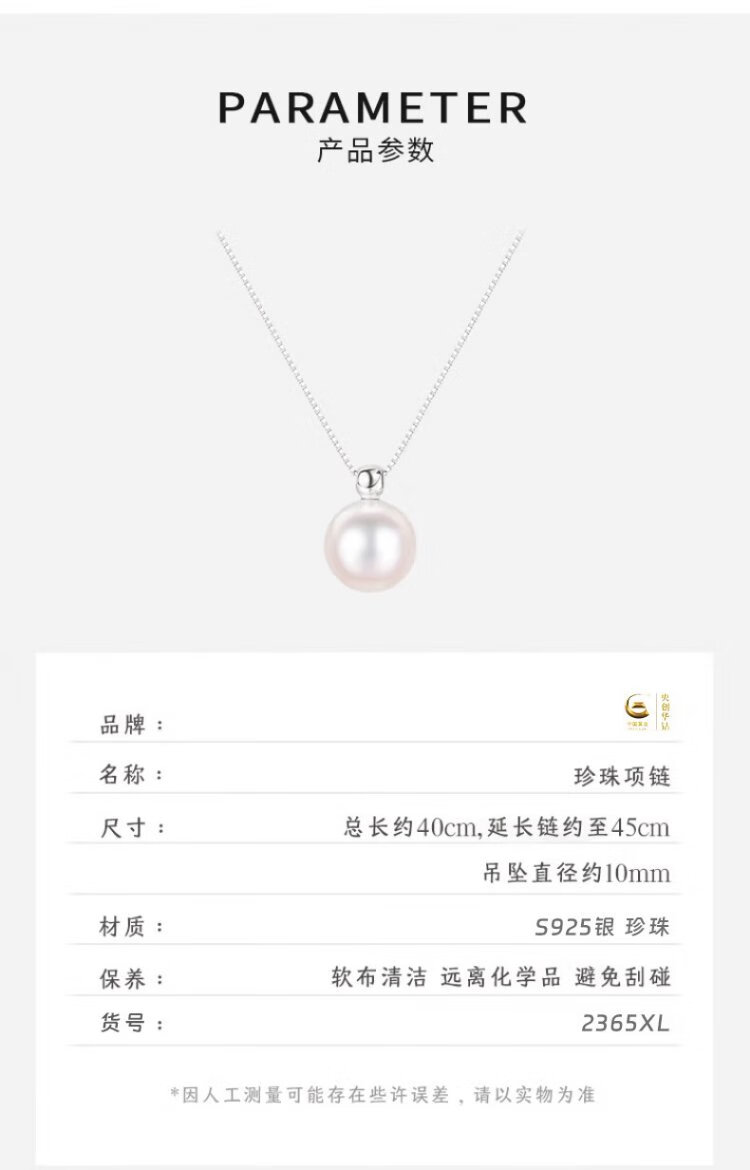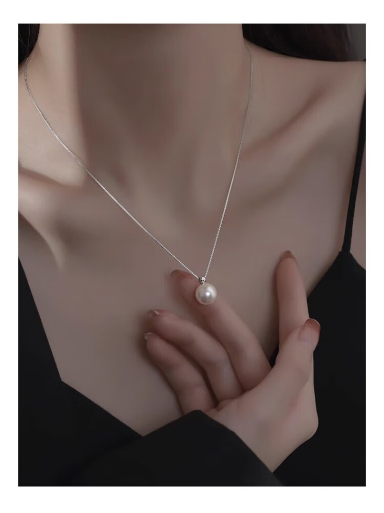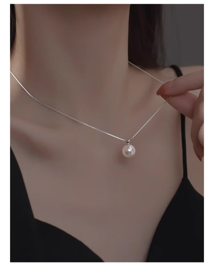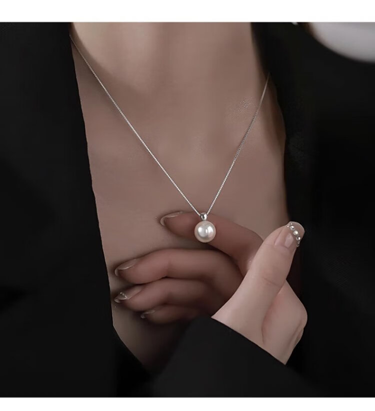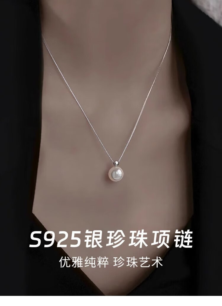 Zhou Baifu 1000+ store 925 silver necklace women's pendant imitation pearl pendant birthday Chinese Valentine's Day gift for girlfriend Silver necklace 8 warehouse delivery - fast delivery Anniversary birthday gift for best friend and wife
