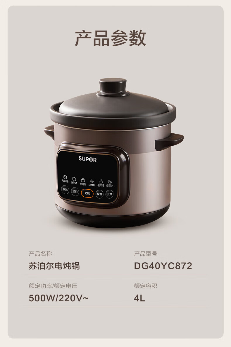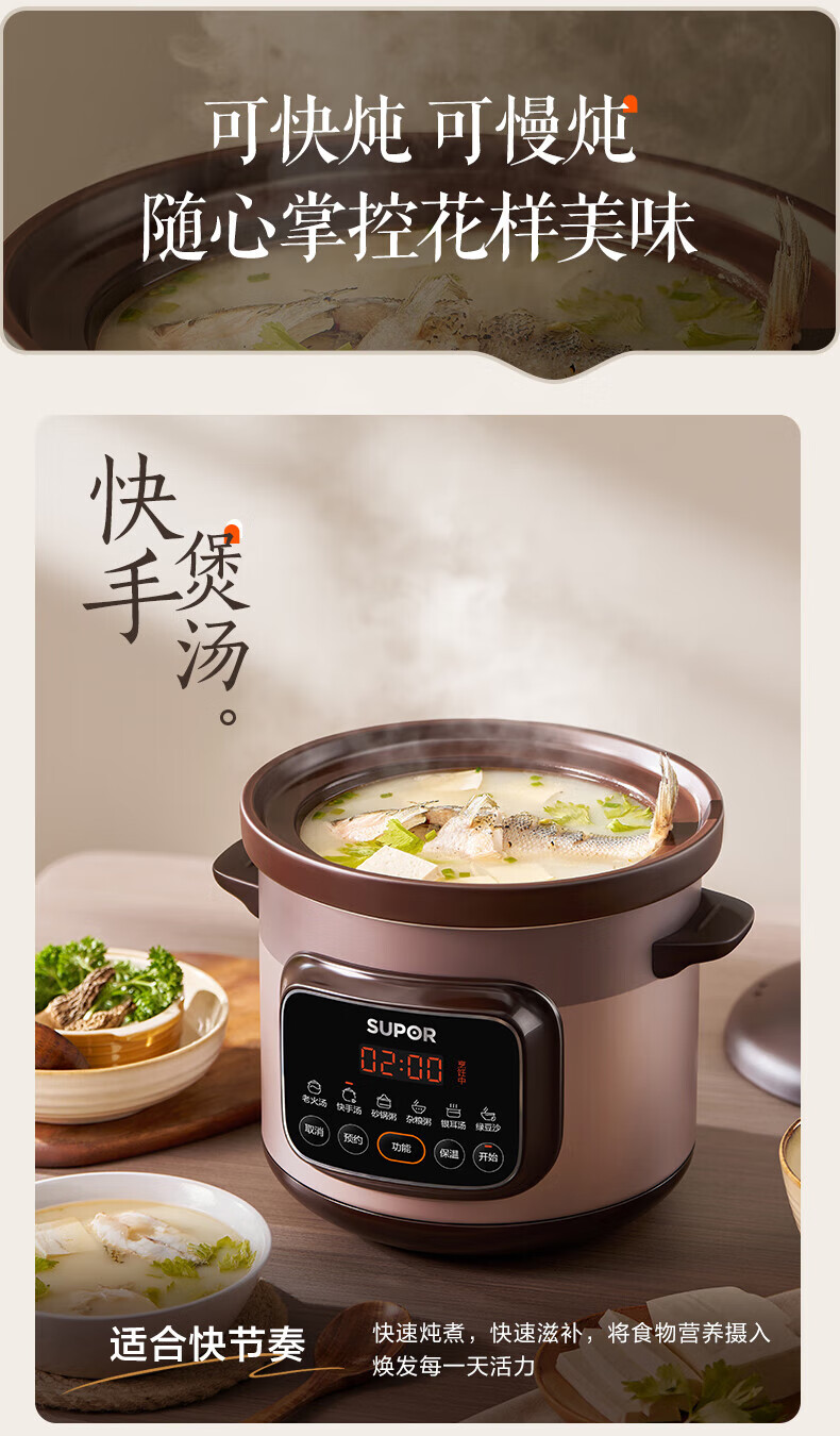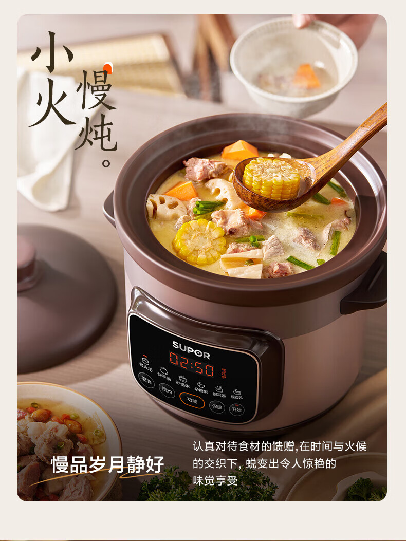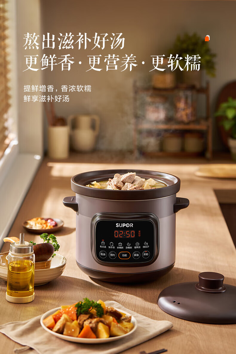 SUPOR electric stew pot, soup pot, electric casserole, purple sand ceramic stew soup, porridge, household electric stew pot, smart reservation, multi-function, baby porridge, household baby food supplement electric stew casserole 5L DG50YC872 for 4-6 people