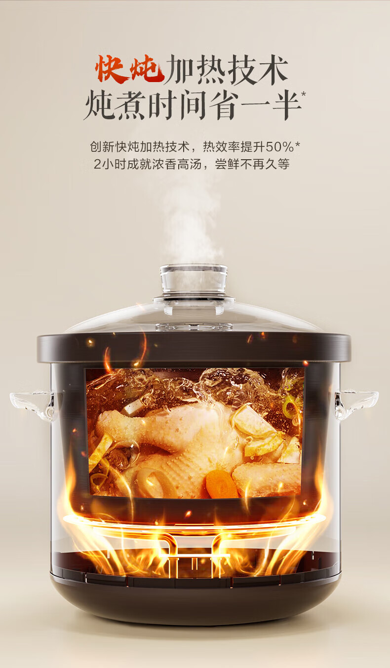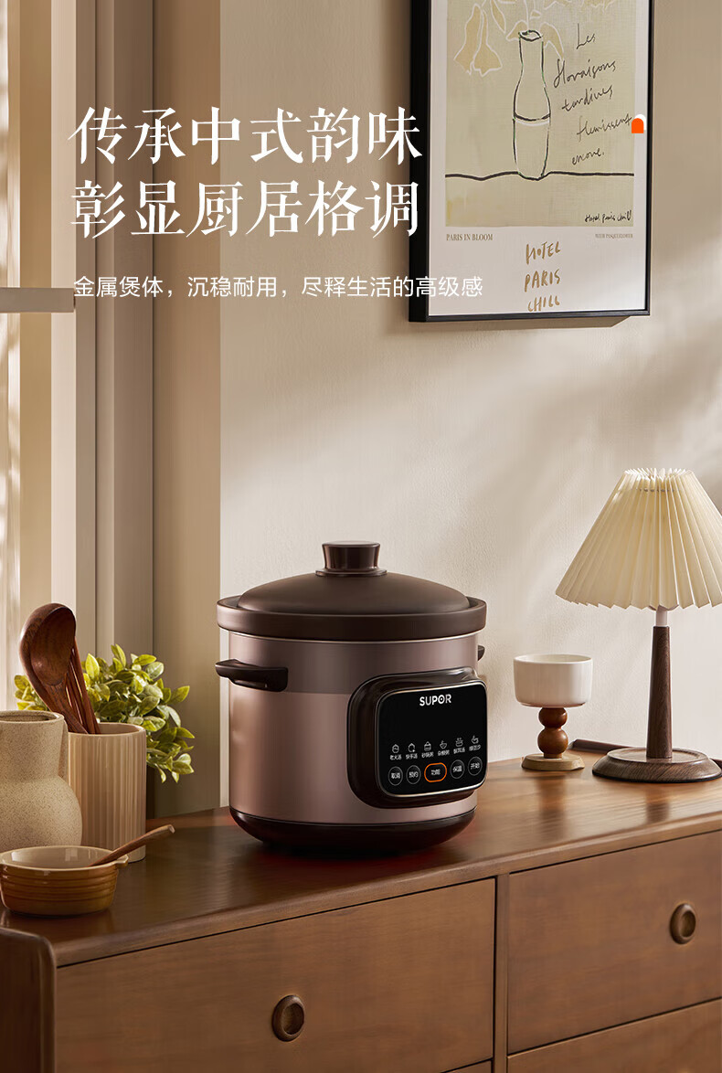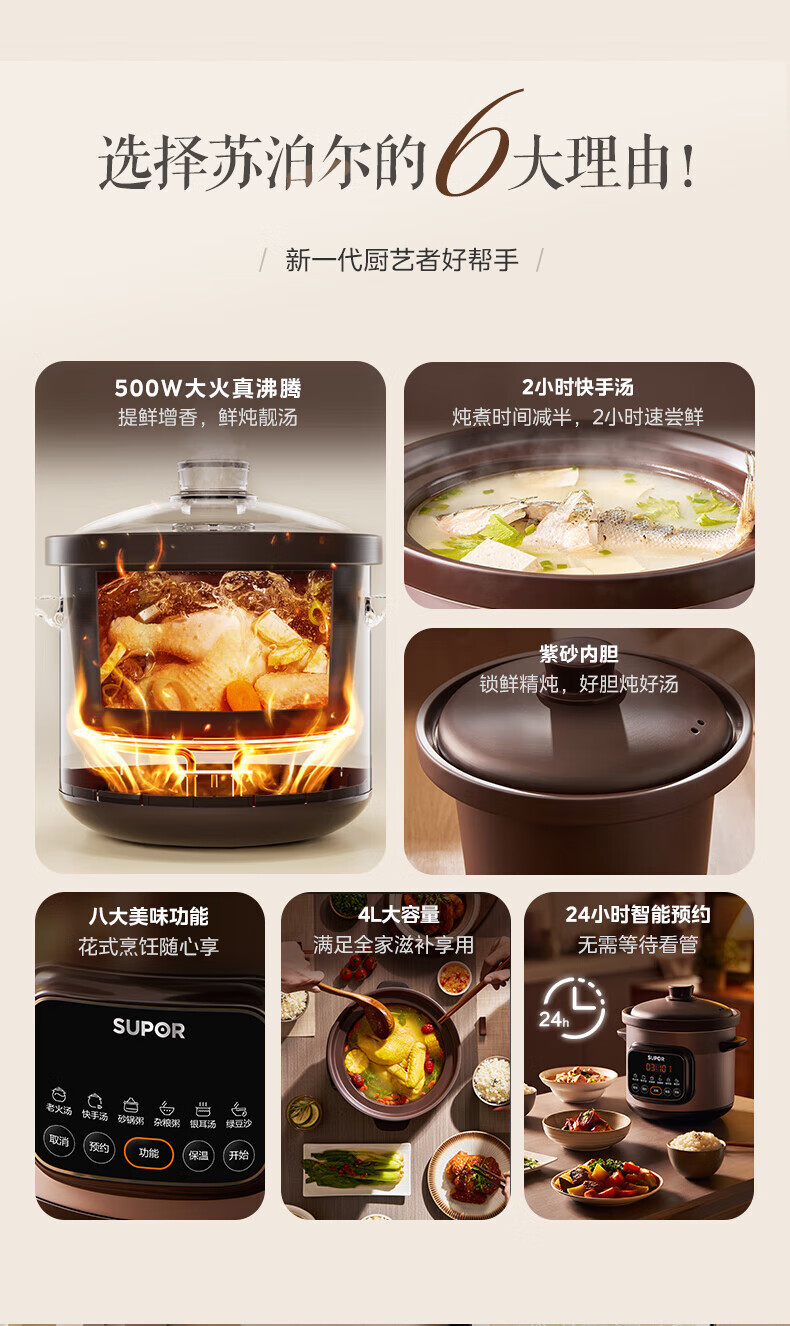 SUPOR electric stew pot, soup pot, electric casserole, purple sand ceramic stew soup, porridge, household electric stew pot, smart reservation, multi-function, baby porridge, household baby food supplement electric stew casserole 5L DG50YC872 for 4-6 people