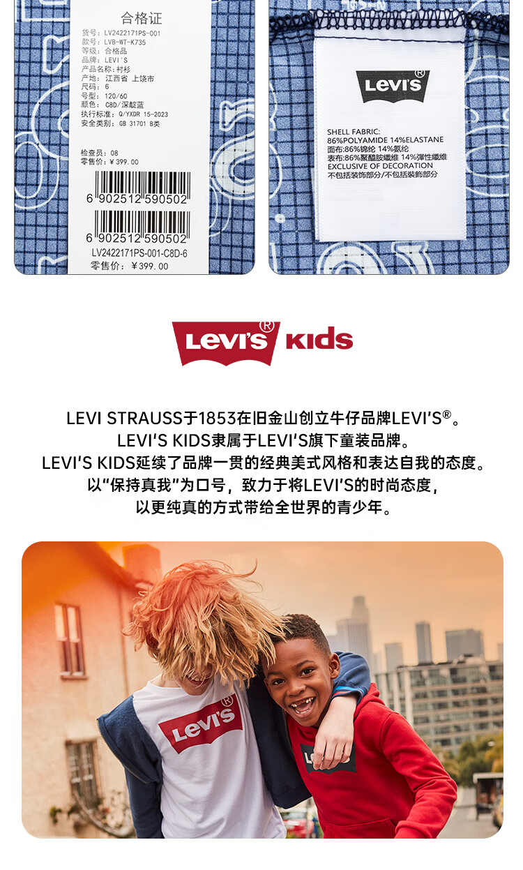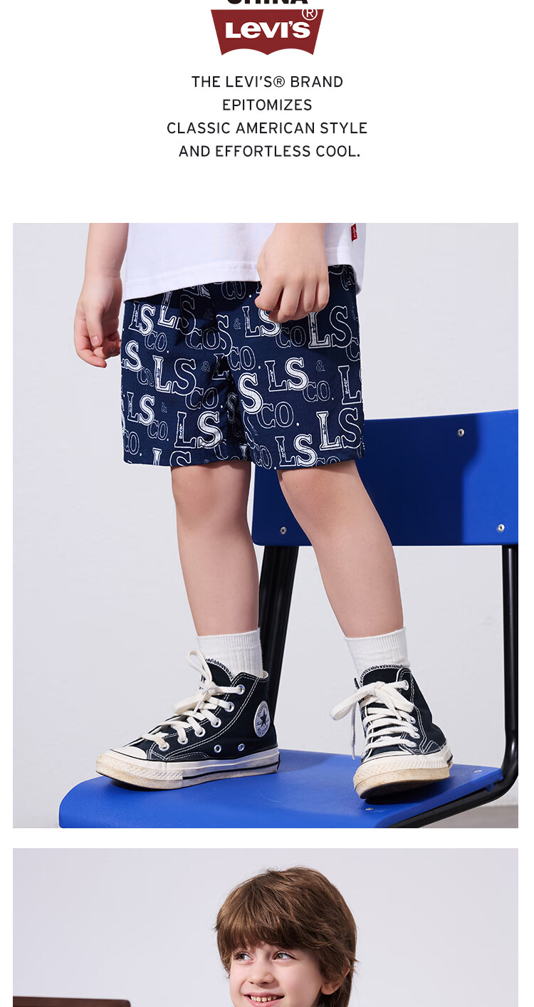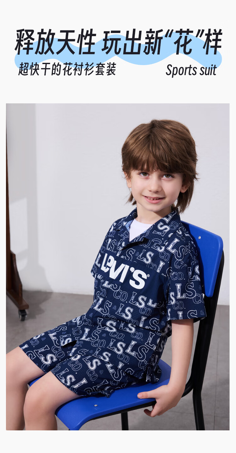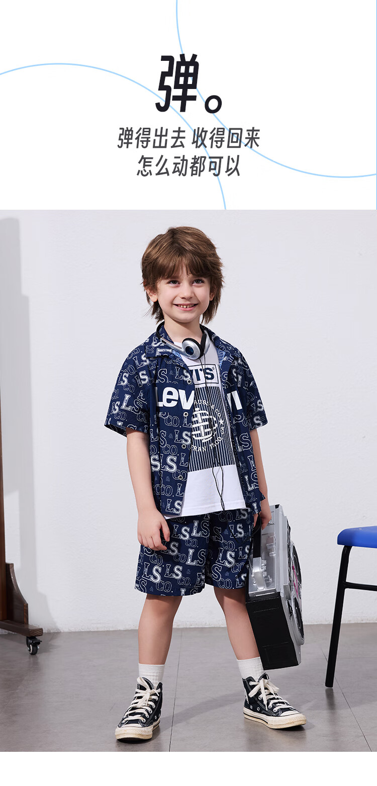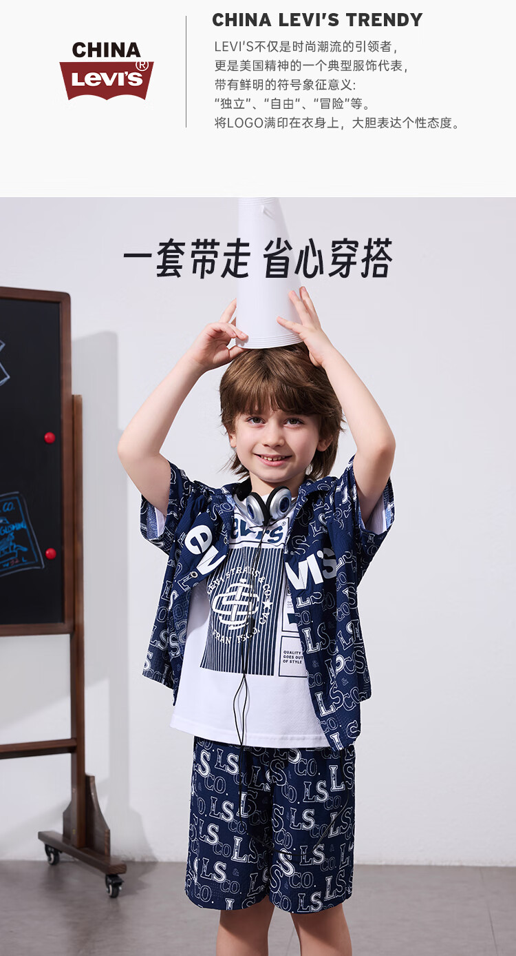 Levi's Levi's children's clothing, the same style as the mall, new summer style boys' full-print logo shirt, woven short-sleeved top, dark indigo 120/60, recommended height 110-116cm