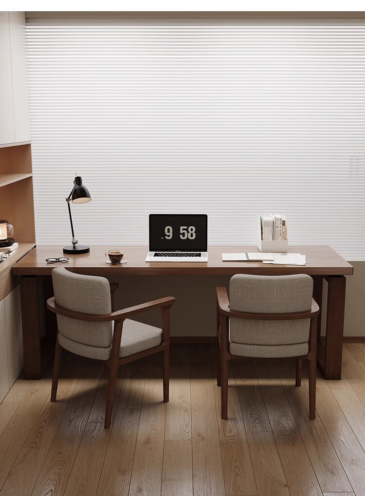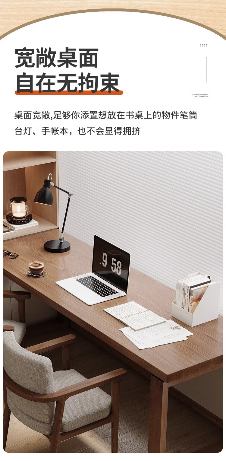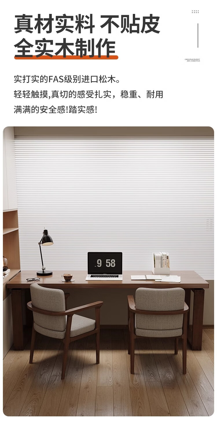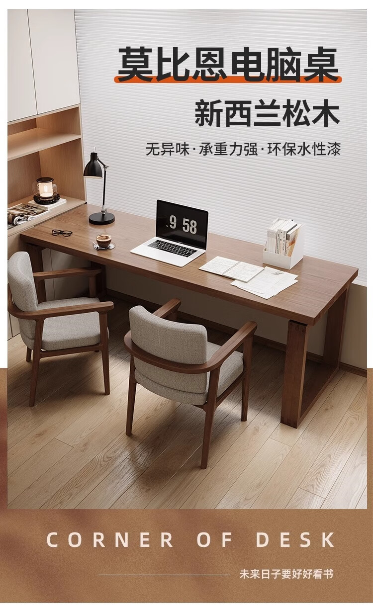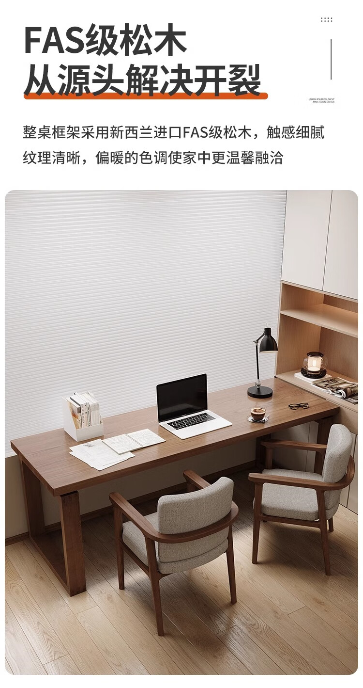 Mori round wood square home desktop computer desk bedroom solid wood long desk double student writing desk simple office workbench standard version 140*60*75 (desktop thickness 5cm)