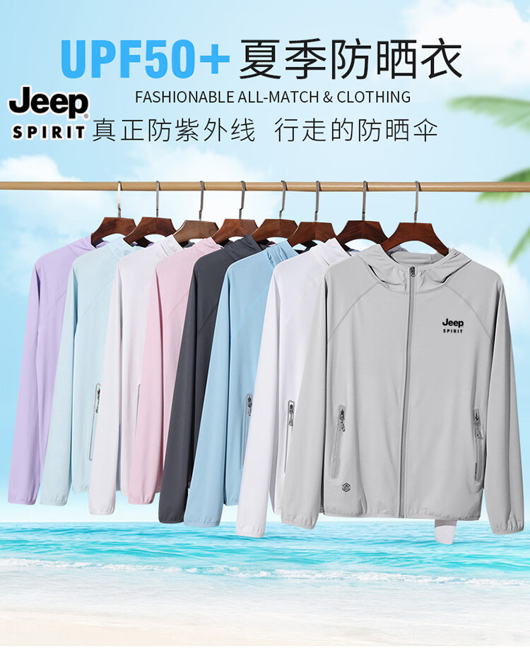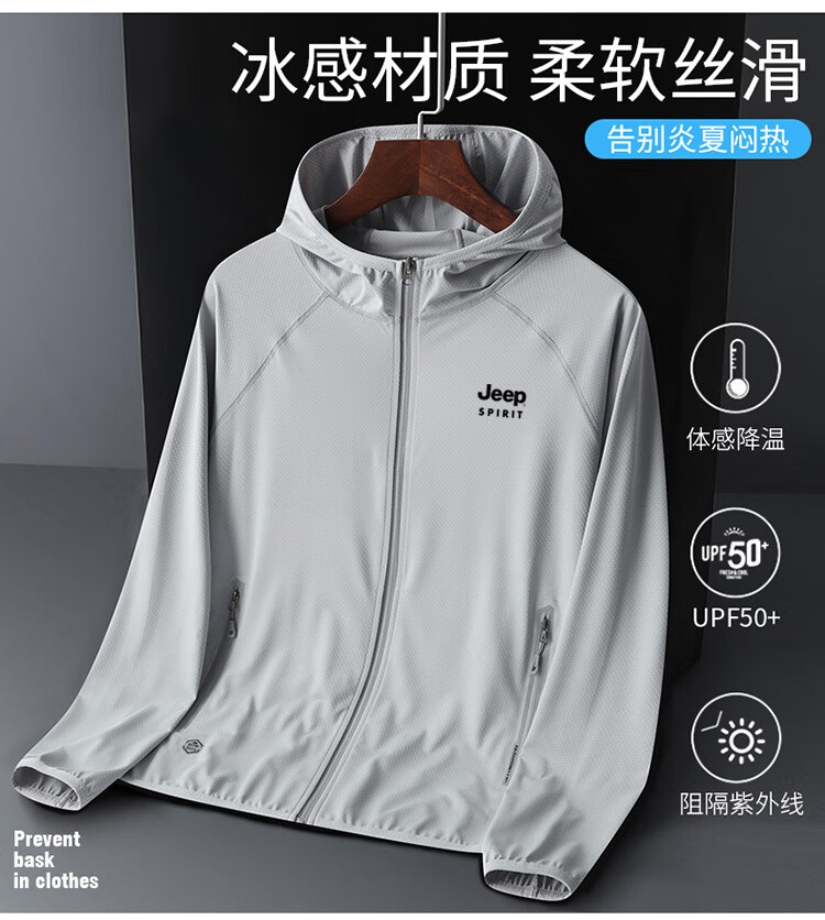 JEEP SPIRIT sun protection clothing for men and women in summer quick-drying breathable outdoor travel fishing ice silk men's customized corporate team building JEEP568 light gray 2XL (recommended 135-155 Jin Jin equals 0.5 kg)