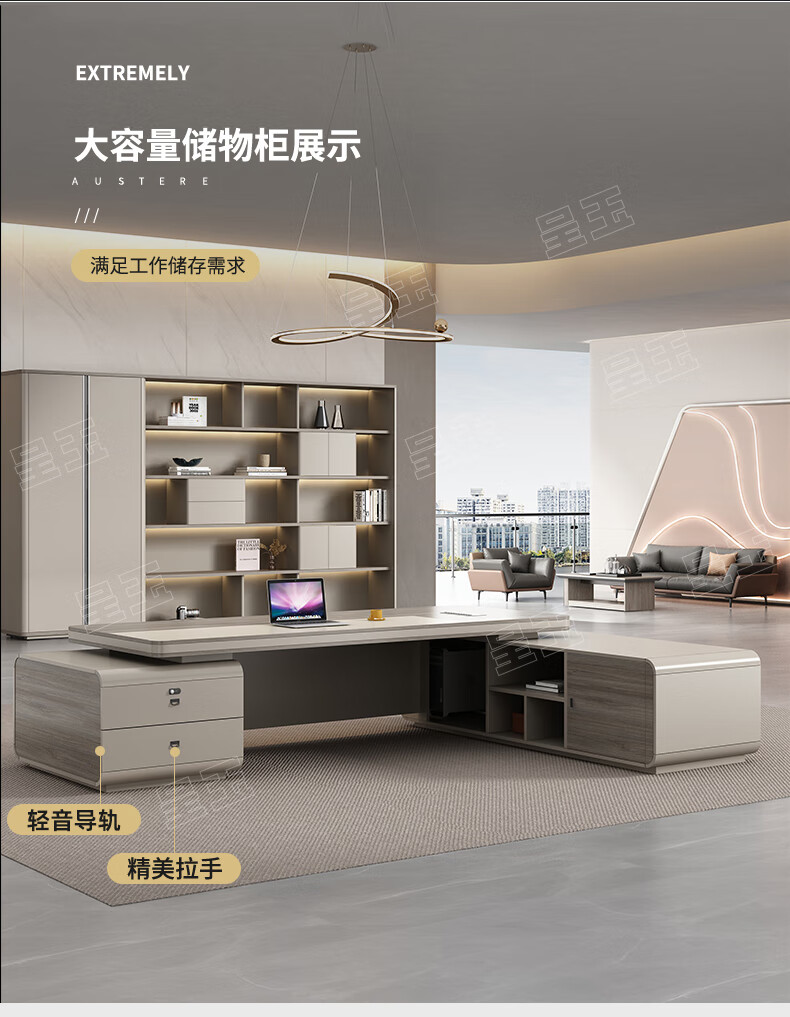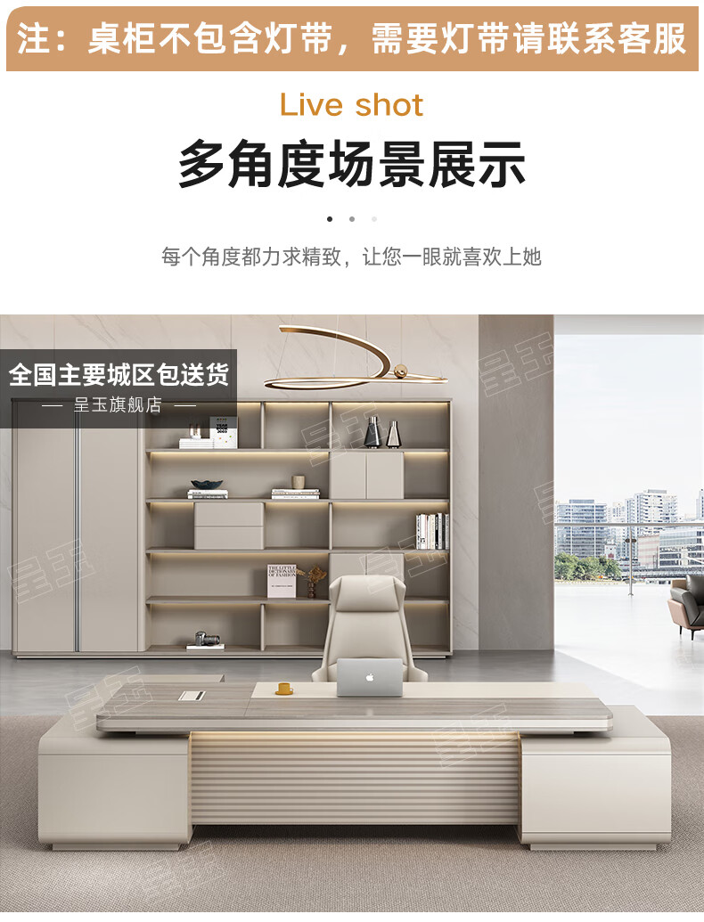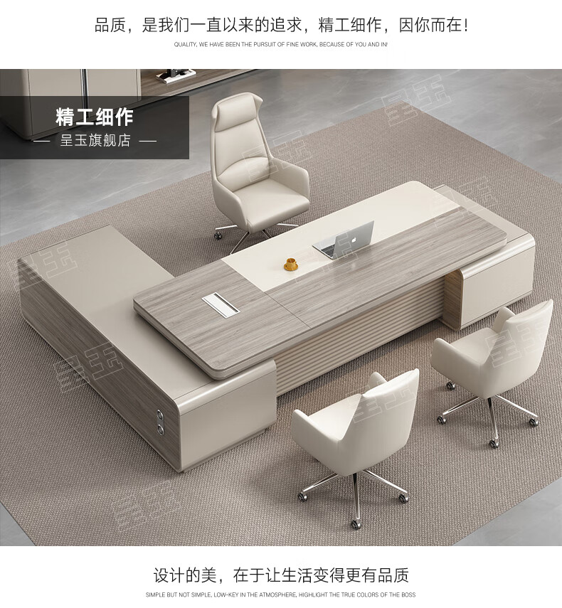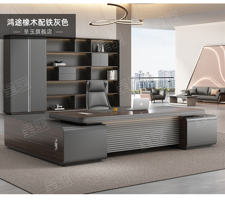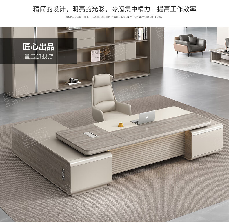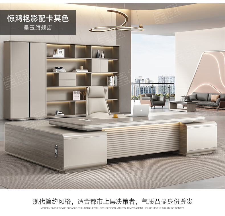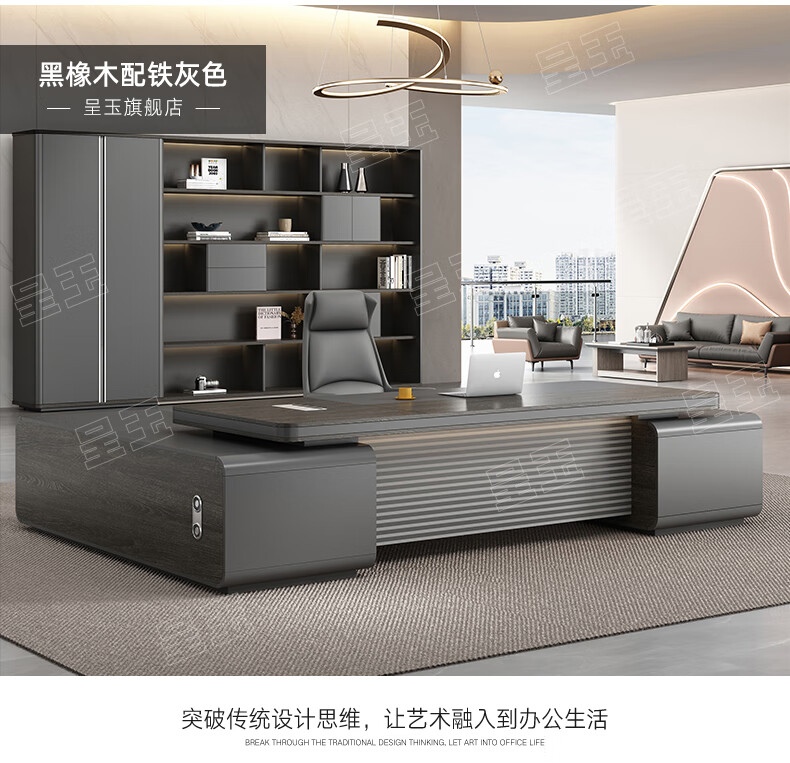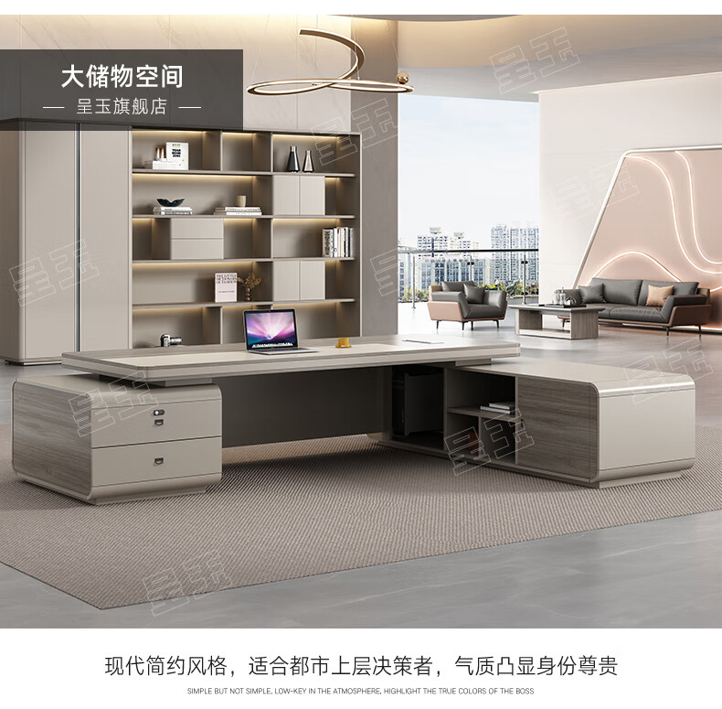 Chengyu boss desk office desk simple modern light luxury leadership office desk and chair combination president executive desk 2.2m double side cabinet + 2.4m background cabinet + boss chair