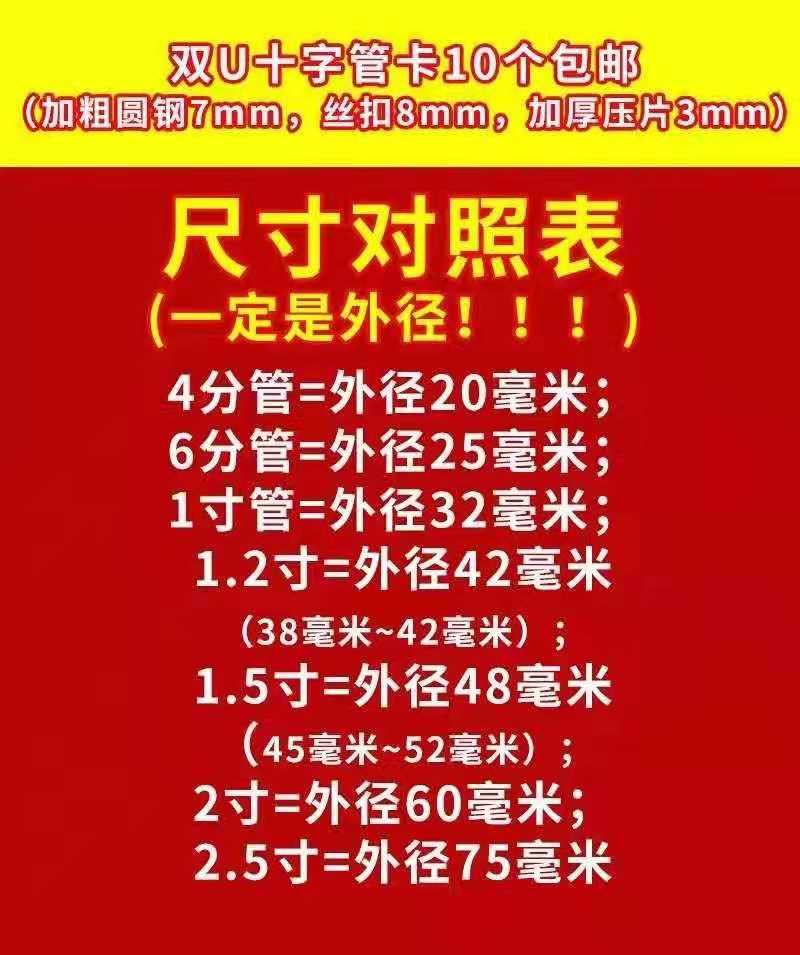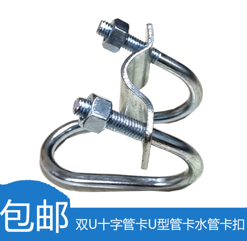 Taslon double U-shaped hoop galvanized U-bolt double U cross pipe clamp cross fixed pipe clamp water pipe fixed cross card 4 points card 4 points (pack of 10) pipe outer diameter 2