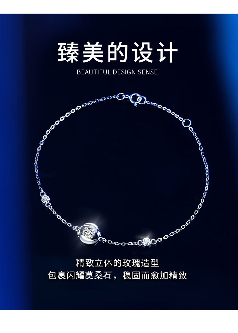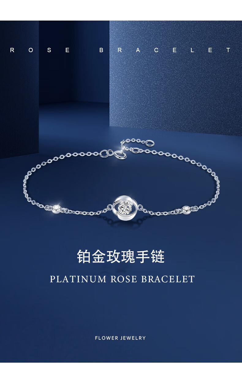 Grace GirlPT950 platinum rose bracelet for women, light luxury and high-end moissanite hand jewelry gift