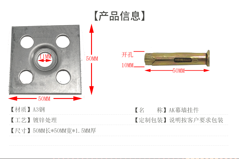 Dixin marble slate ak47 dry hanging fastener tile special pendant stainless steel pendant iron background wall dry hanging nail 50*50 hanging piece + expansion--50 set