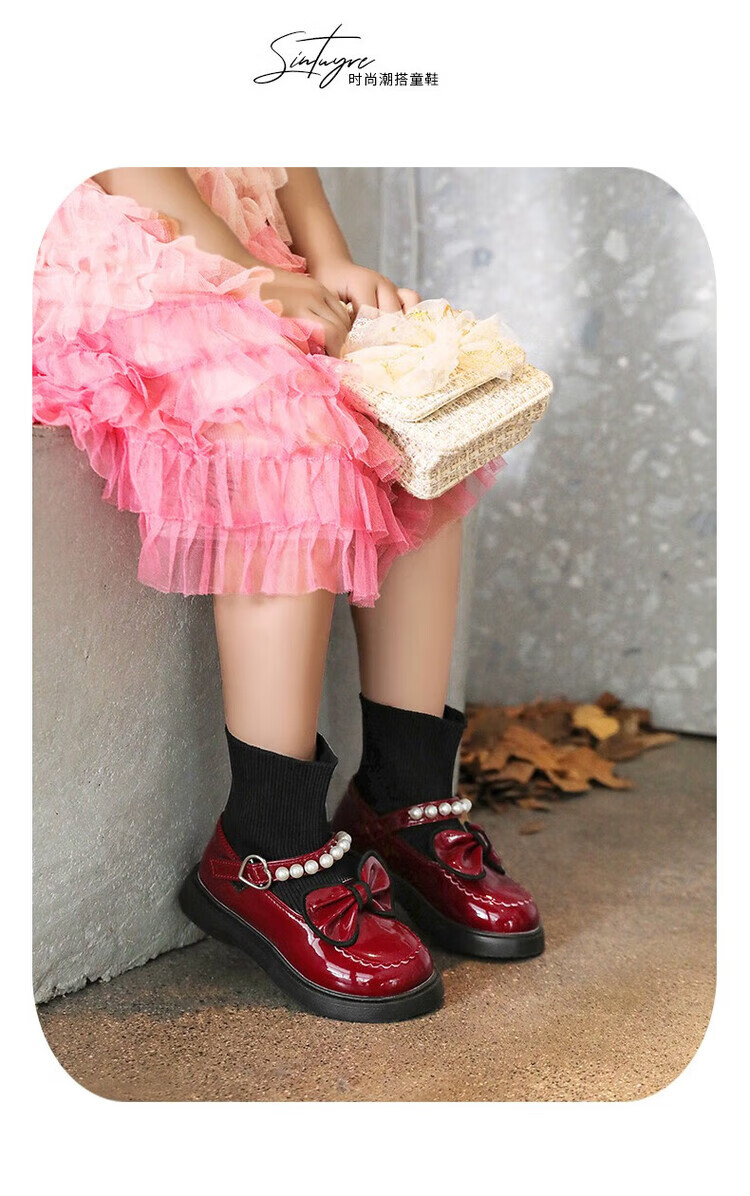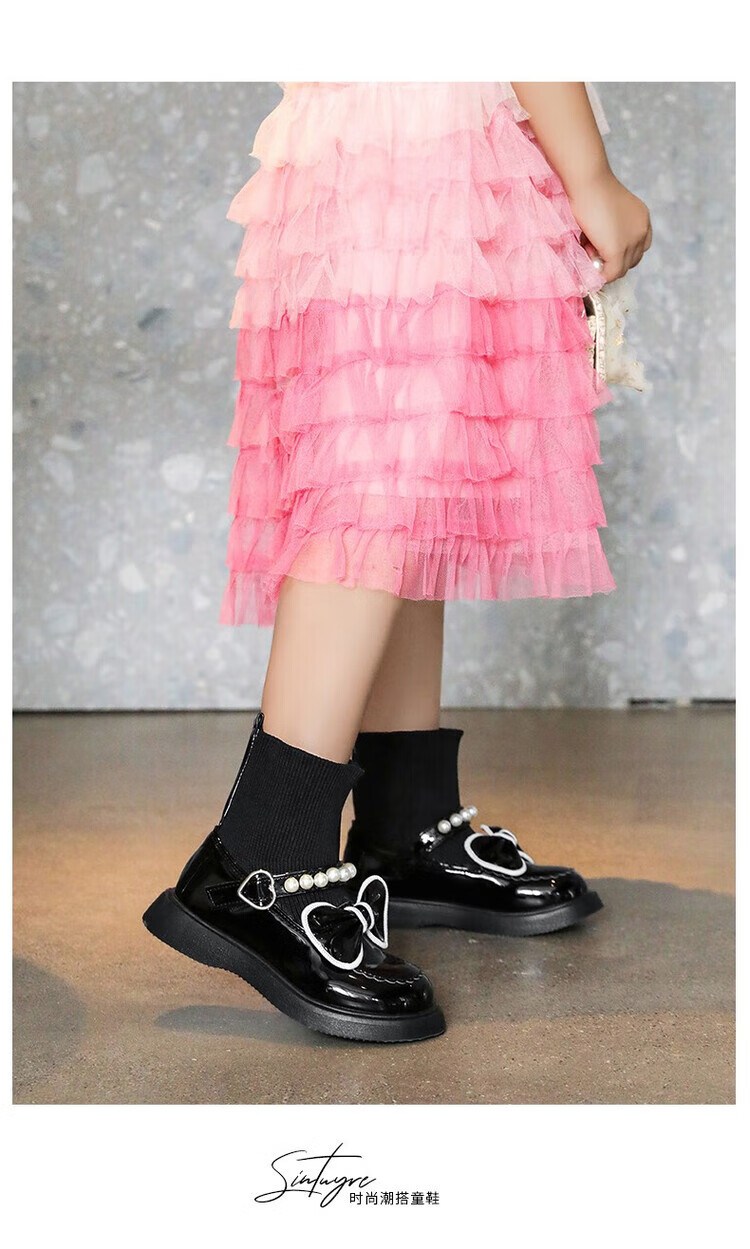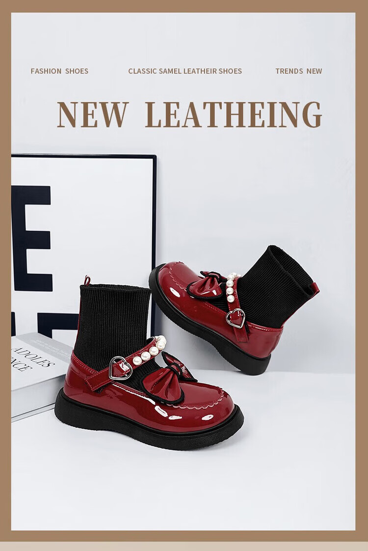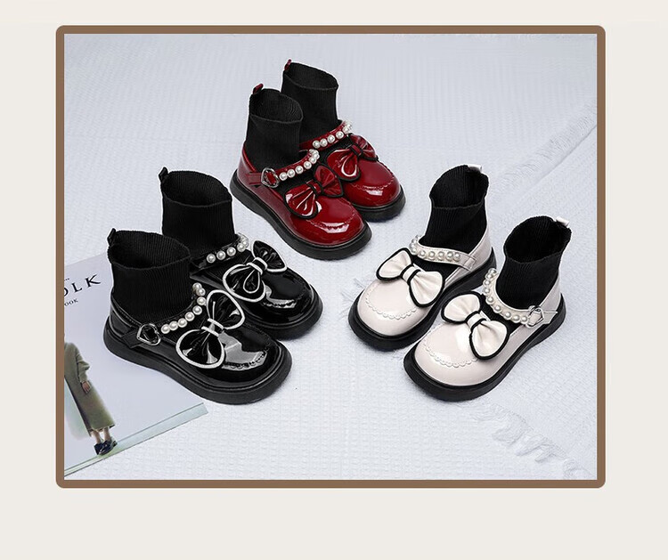 G.duck Little Yellow Duck Girls' Shoes Small Leather Shoes 2025 Children's Short Boots Princess Martin Boots Autumn and Winter Little Girls Black Boots HDL-Red 818 (Single Shoe) Size 37 Inner Length 22.9cm