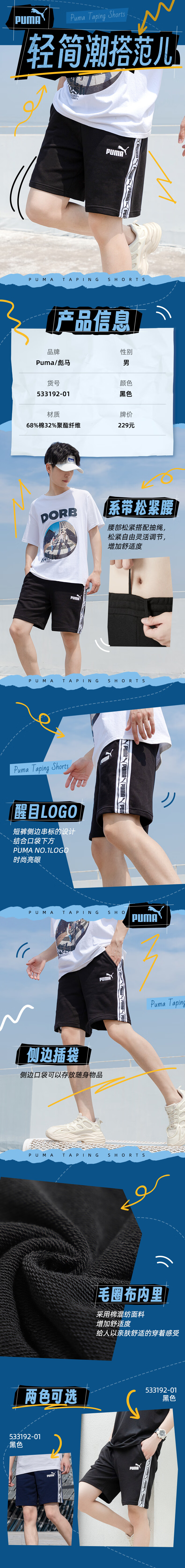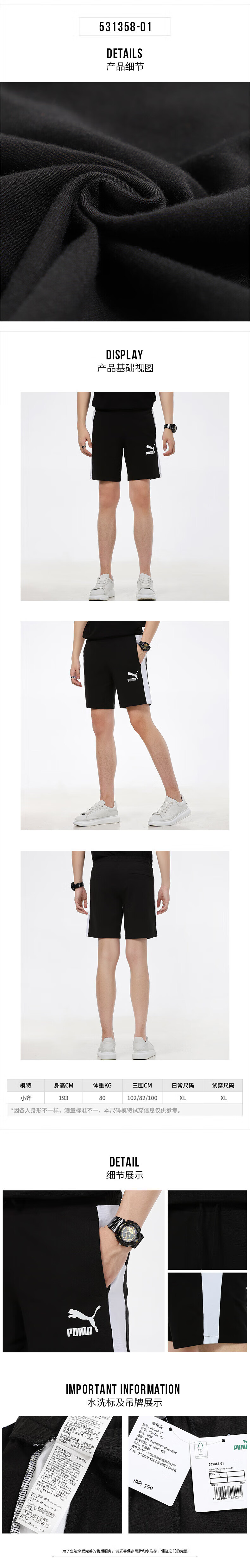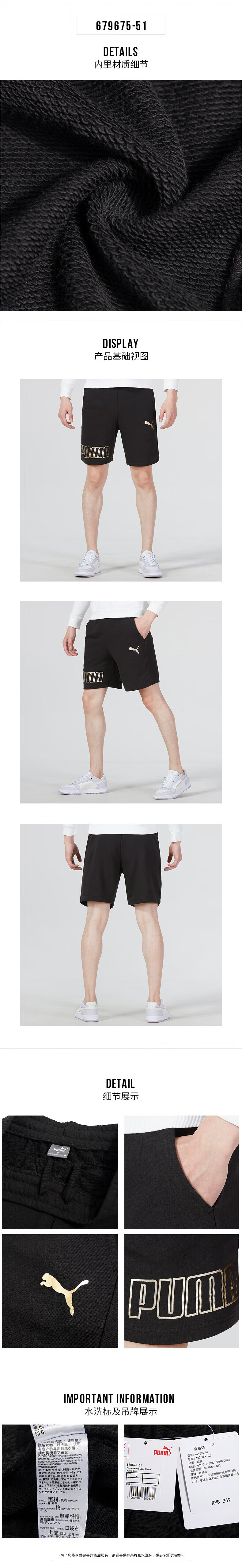 PUMA official shorts men's 2025 new breathable quick-drying sports pants casual loose running fitness pants five-quarter pants 531358-01/T7 splicing S (170/70A)