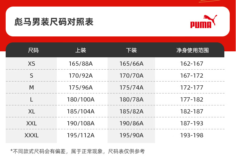China (cm) 160-165/84-86 165-170 / 88-90 167-172 / 92-96 168-173 / 98-102 170-176 / 106-110