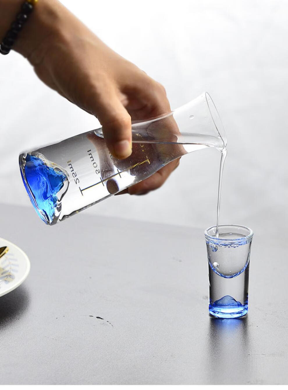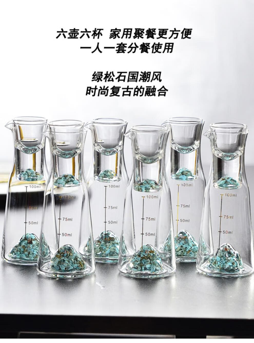 Cooper Blue Mountain crystal glass high-end white wine glass set with scale wine divider and jug set for household light luxury spirits one cup Green Pine Sky Ming 2 pots 2 cups