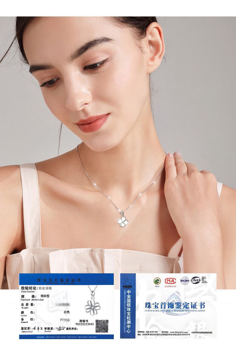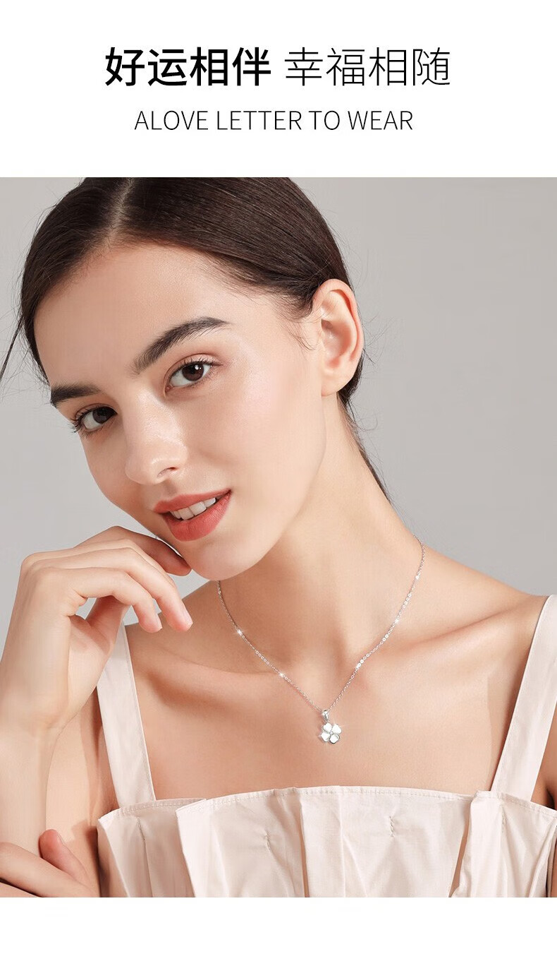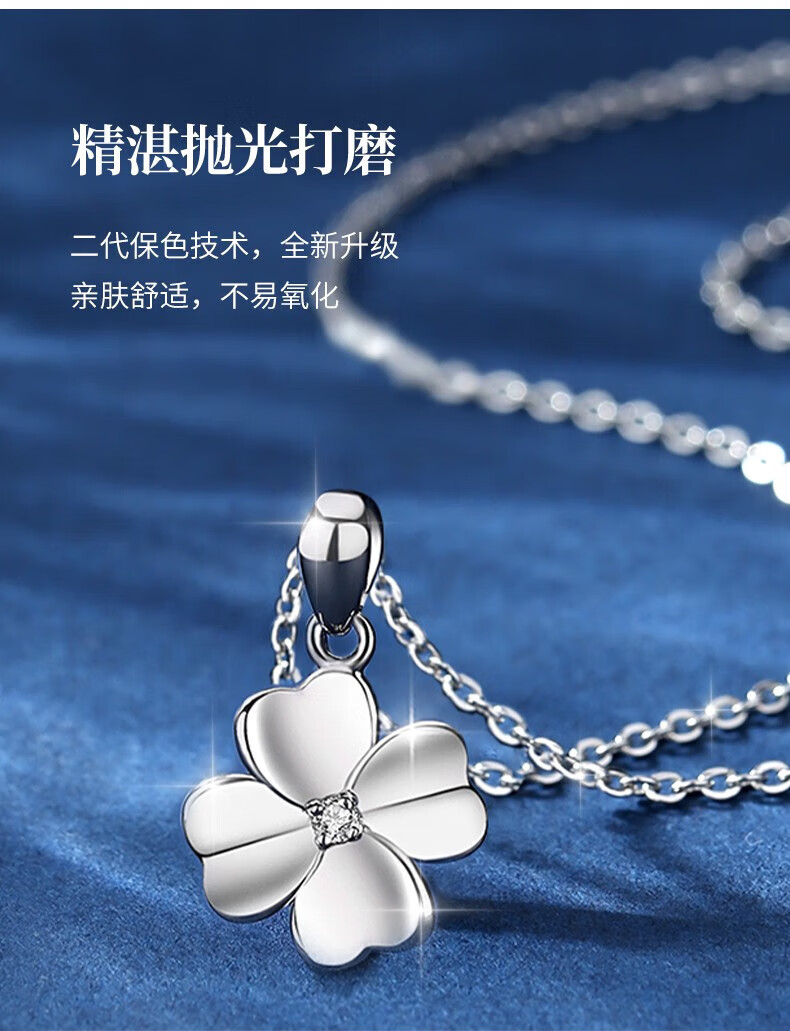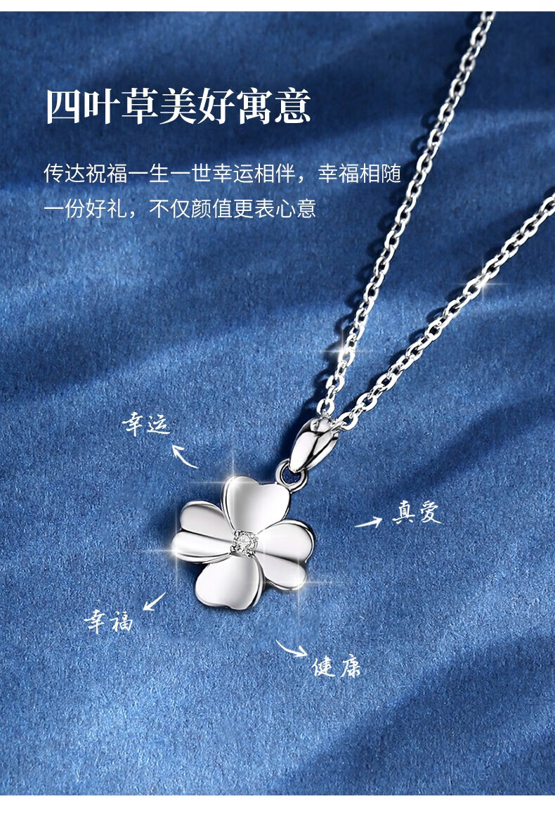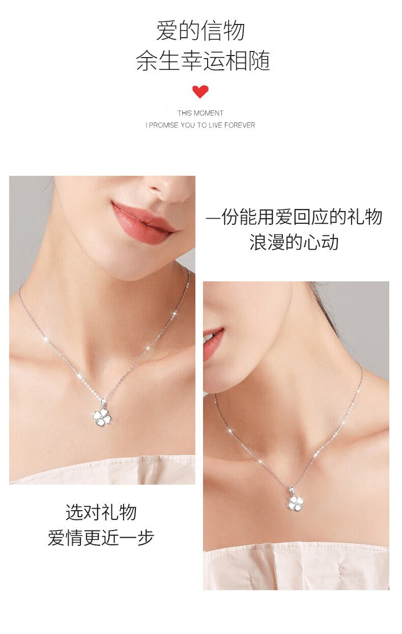 Grace Girl Diamond Platinum Lucky Four Leaf Clover Necklace Women's Fashion Pendant Clavicle Chain Birthday Lover Gift Diamond Platinum Four Leaf Clover Necklace-Local Warehouse