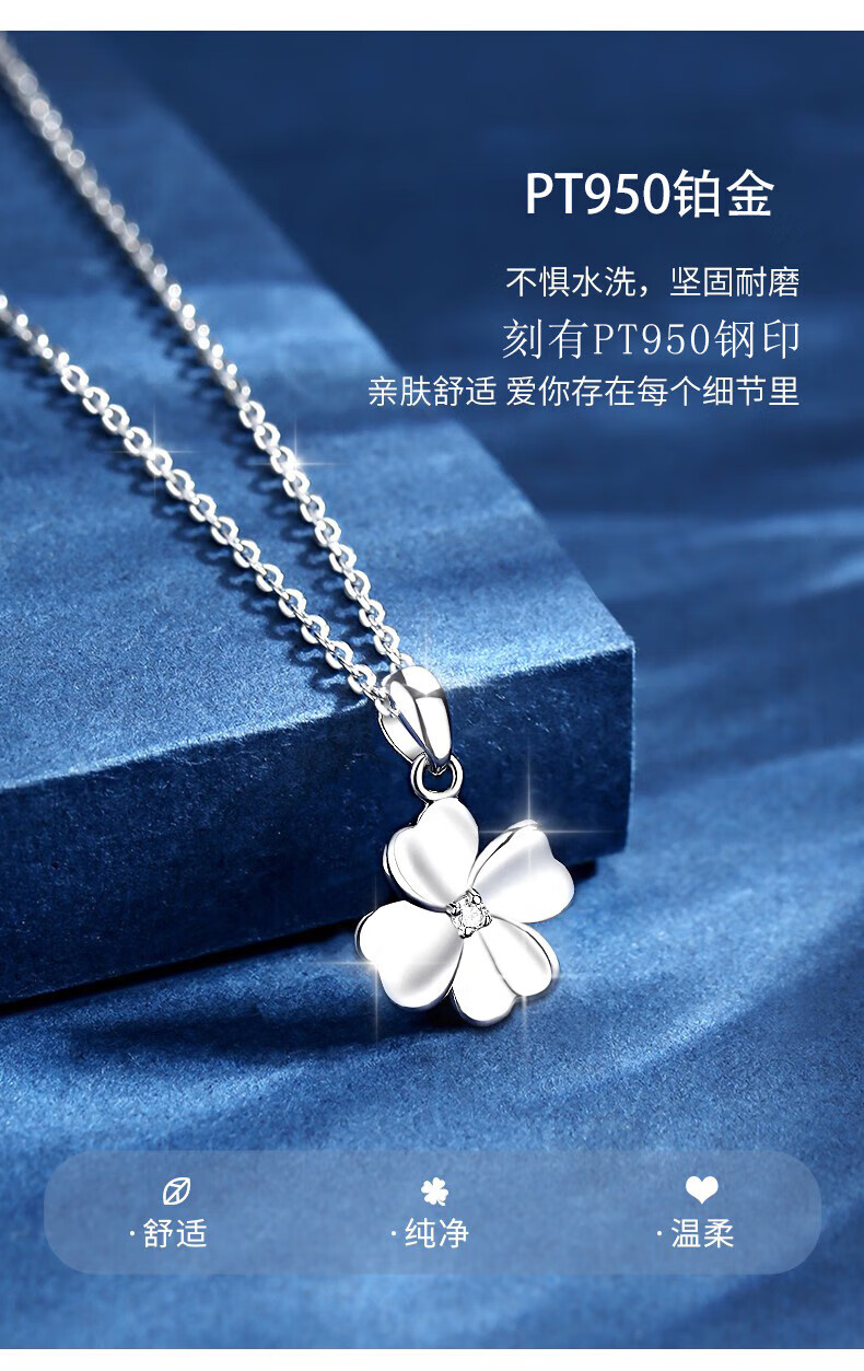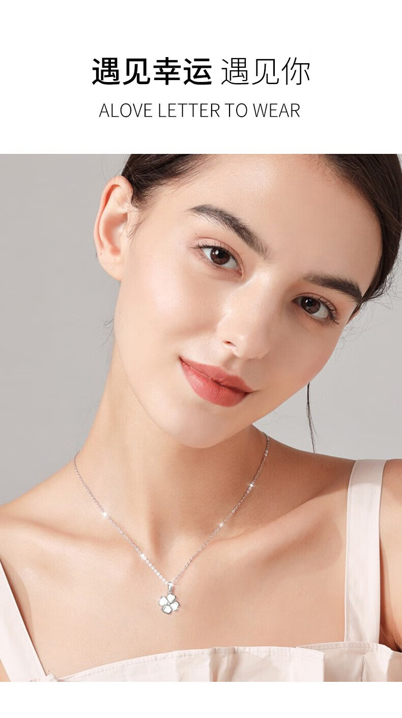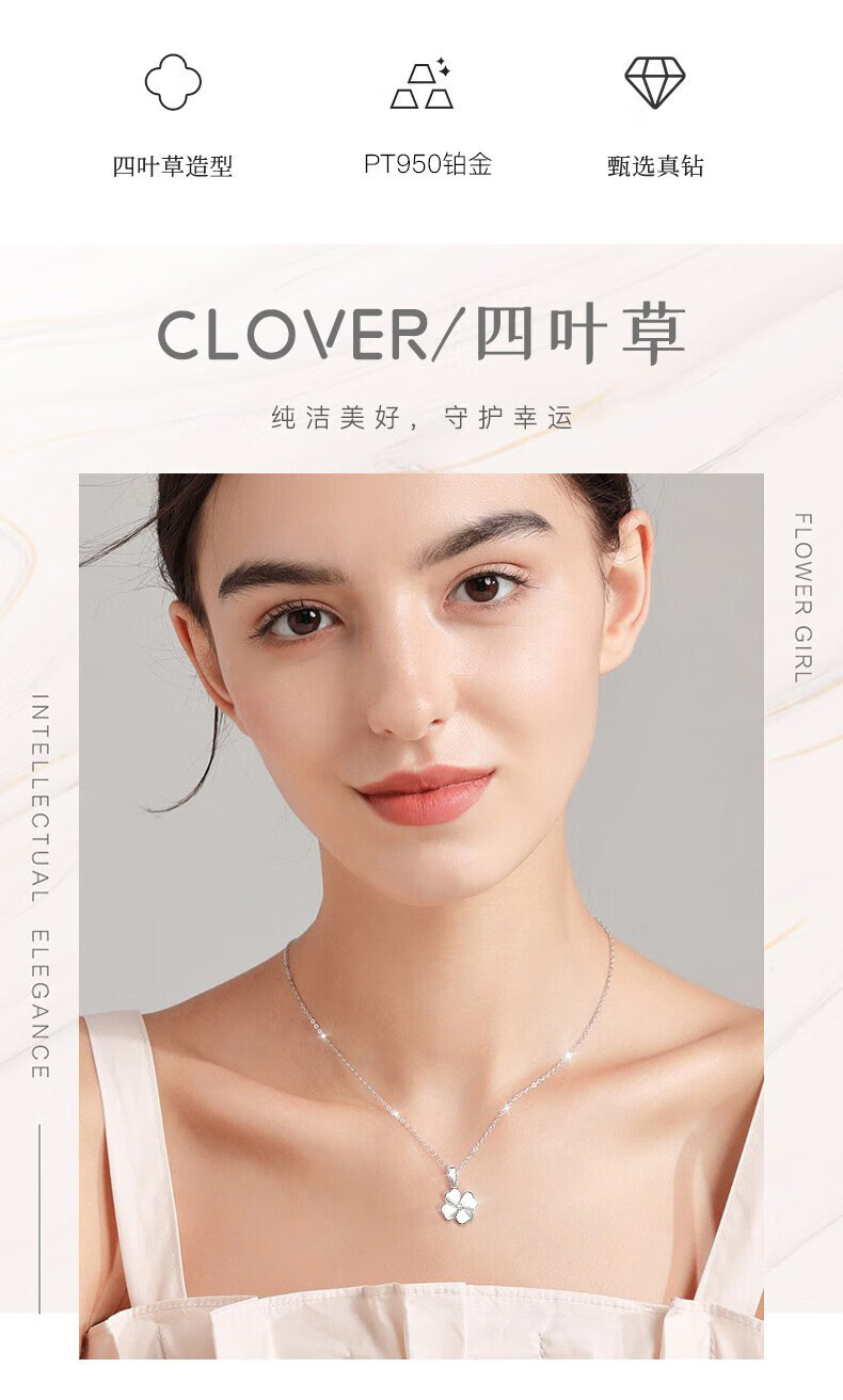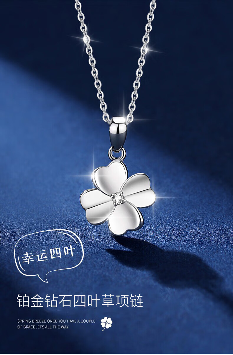 Grace Girl Diamond Platinum Lucky Four Leaf Clover Necklace Women's Fashion Pendant Clavicle Chain Birthday Lover Gift Diamond Platinum Four Leaf Clover Necklace-Local Warehouse
